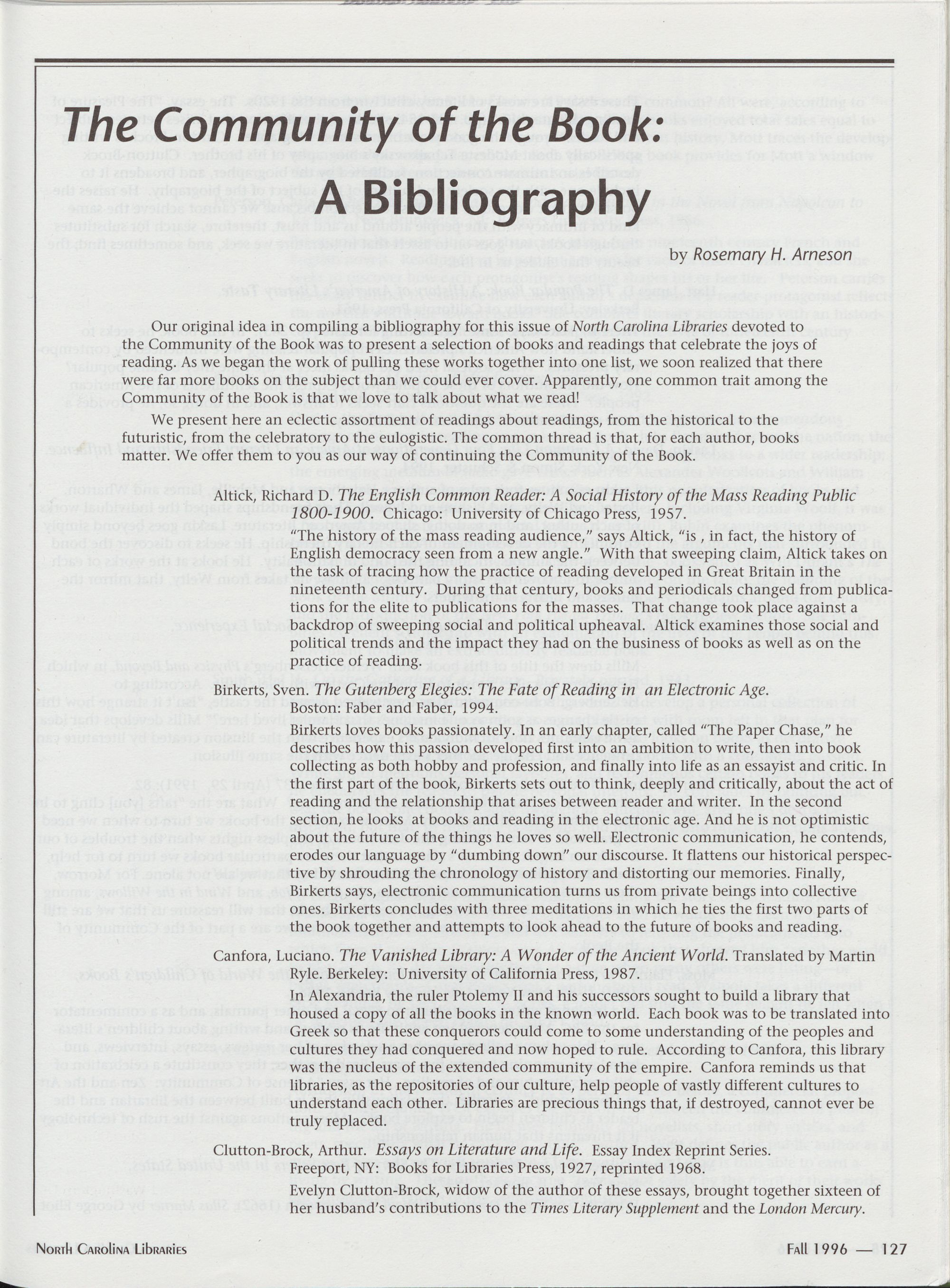 127 The Community of the Book: A Bibliography, Rosemary H. Arneson