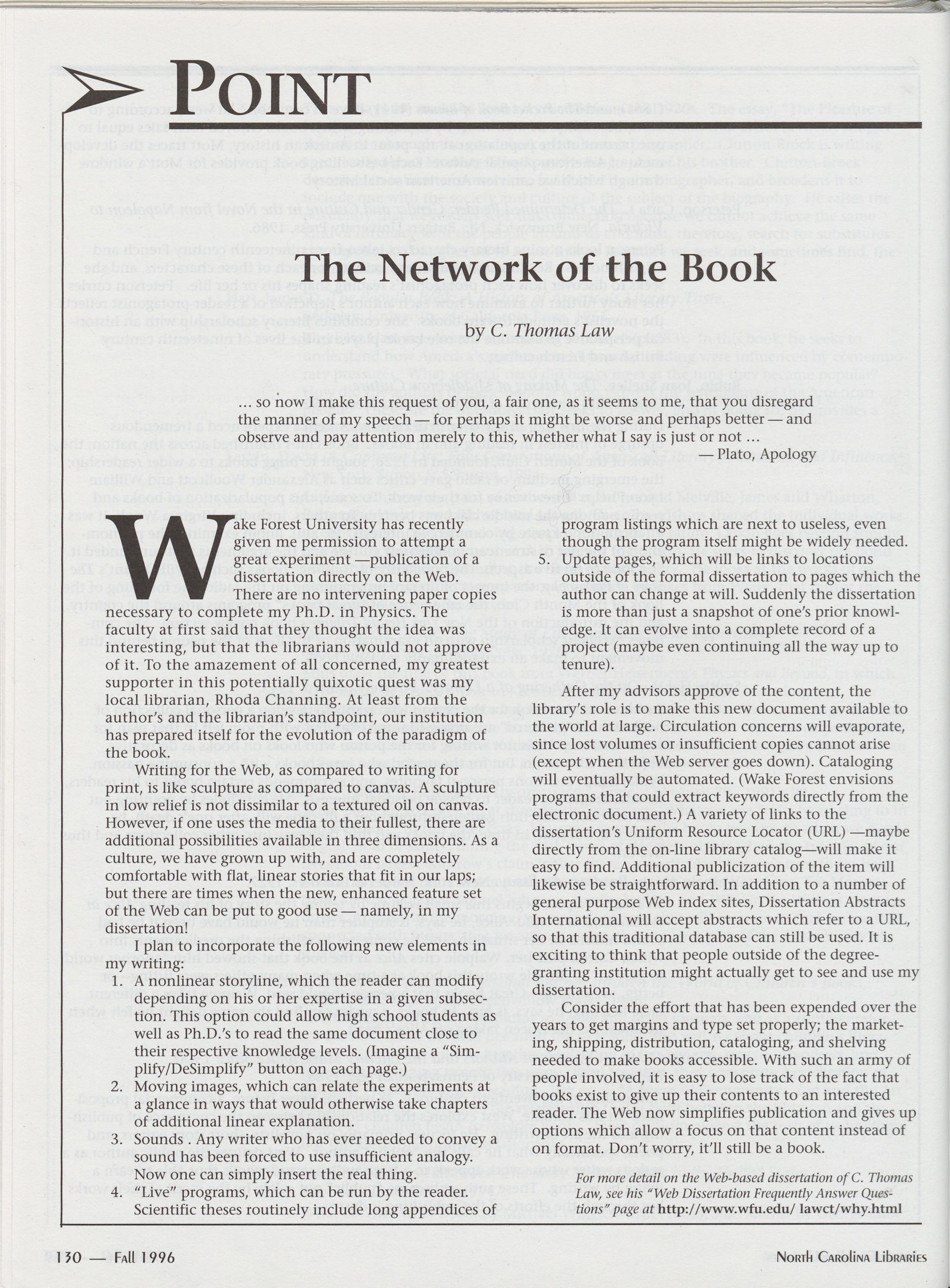 130 Point: The Network of the Book, C. Thomas Law
