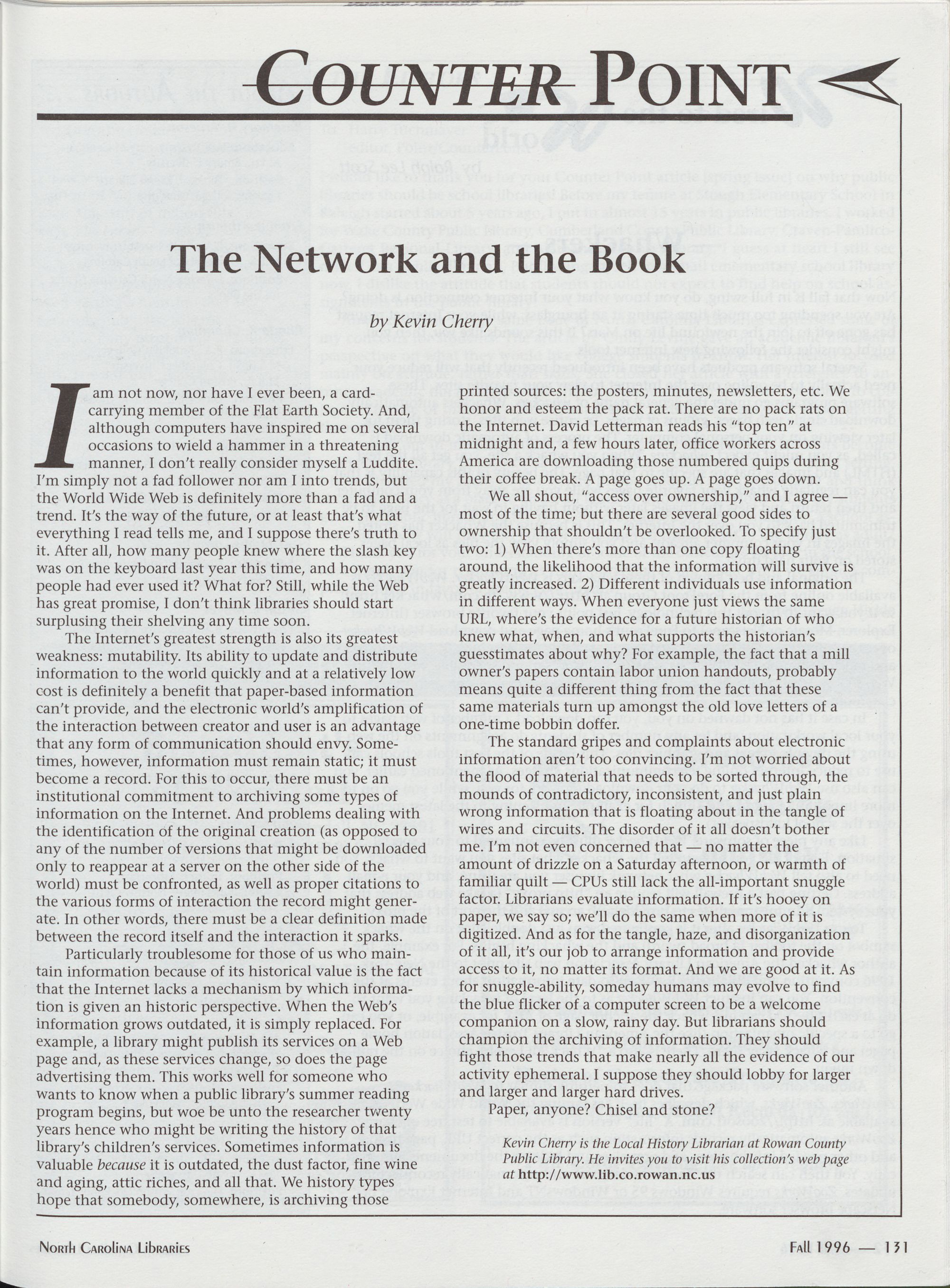 131 Counter Point: The Network and the Book, Kevin Cherry