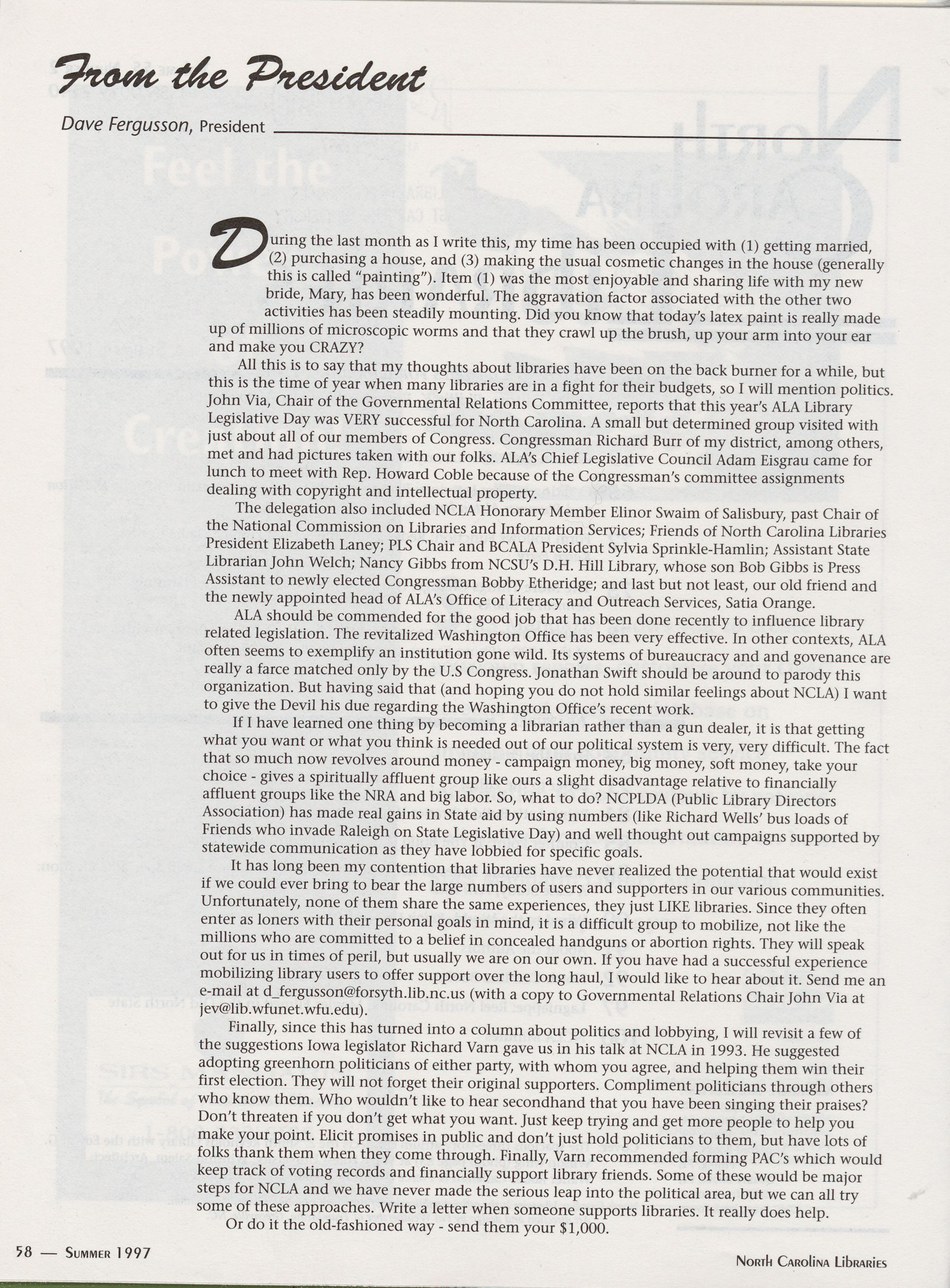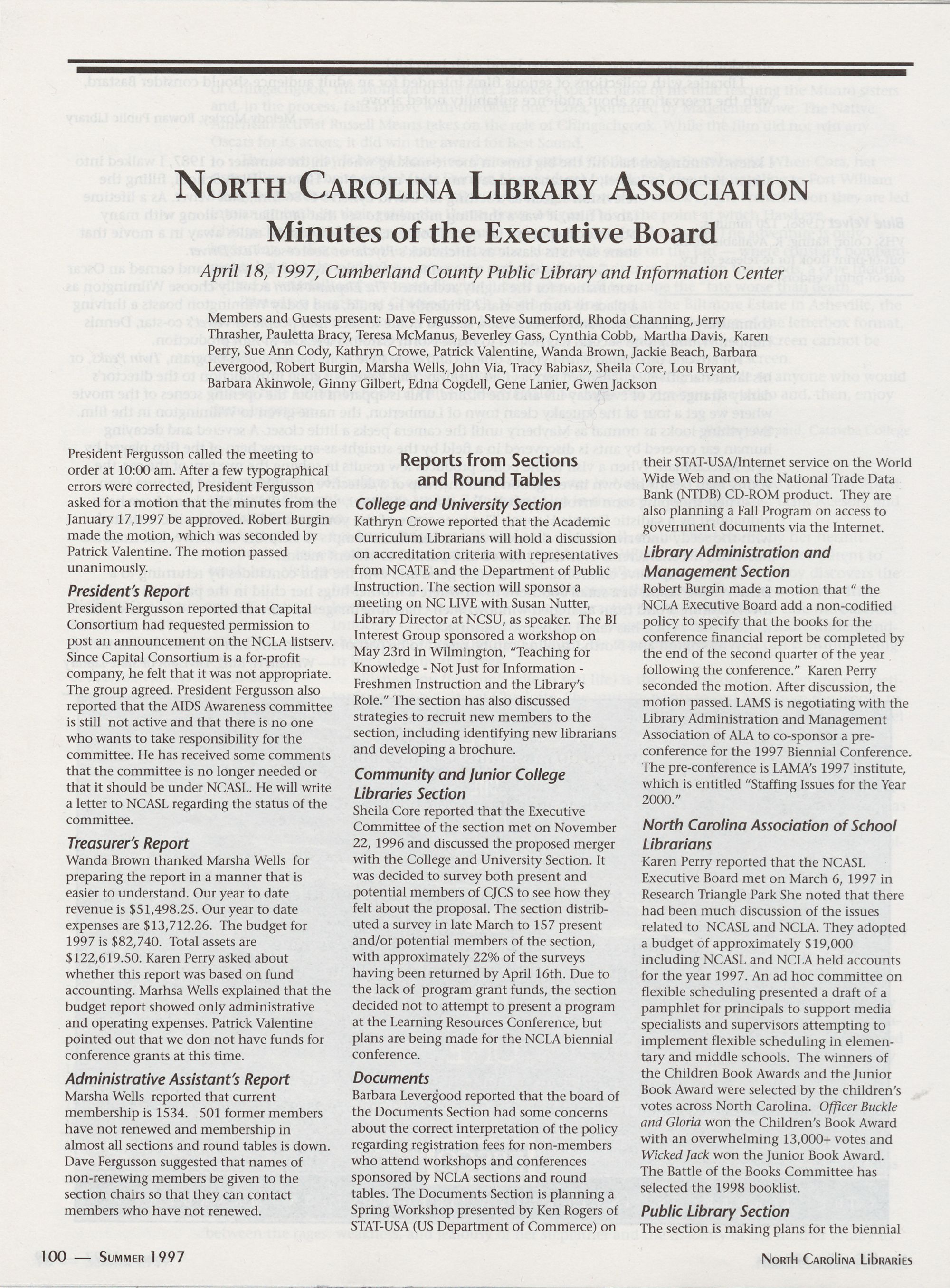 Spring 1998 North Carolina Library Innovators: