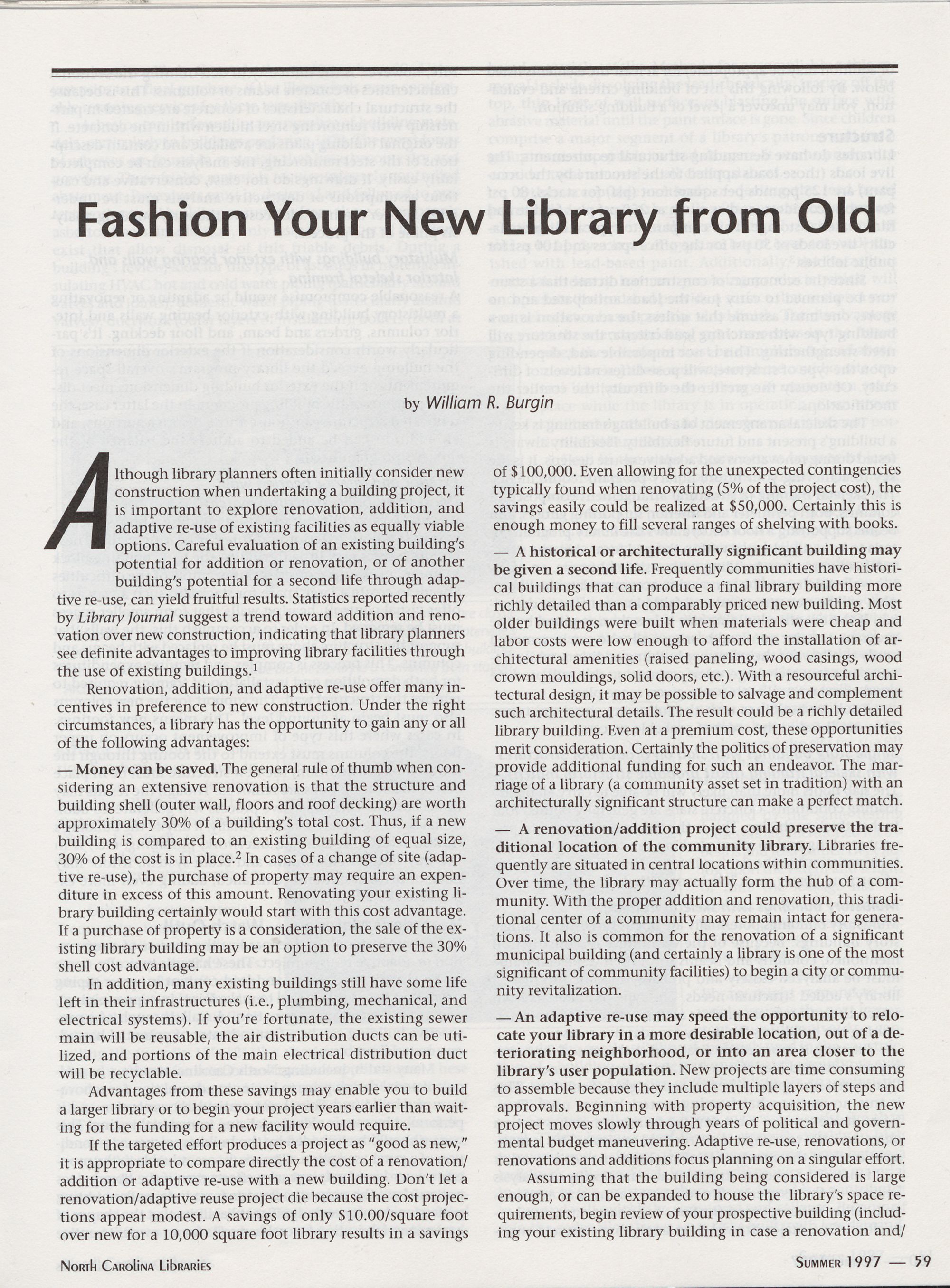 Fashion Your New Library from Old, William R. Burgin