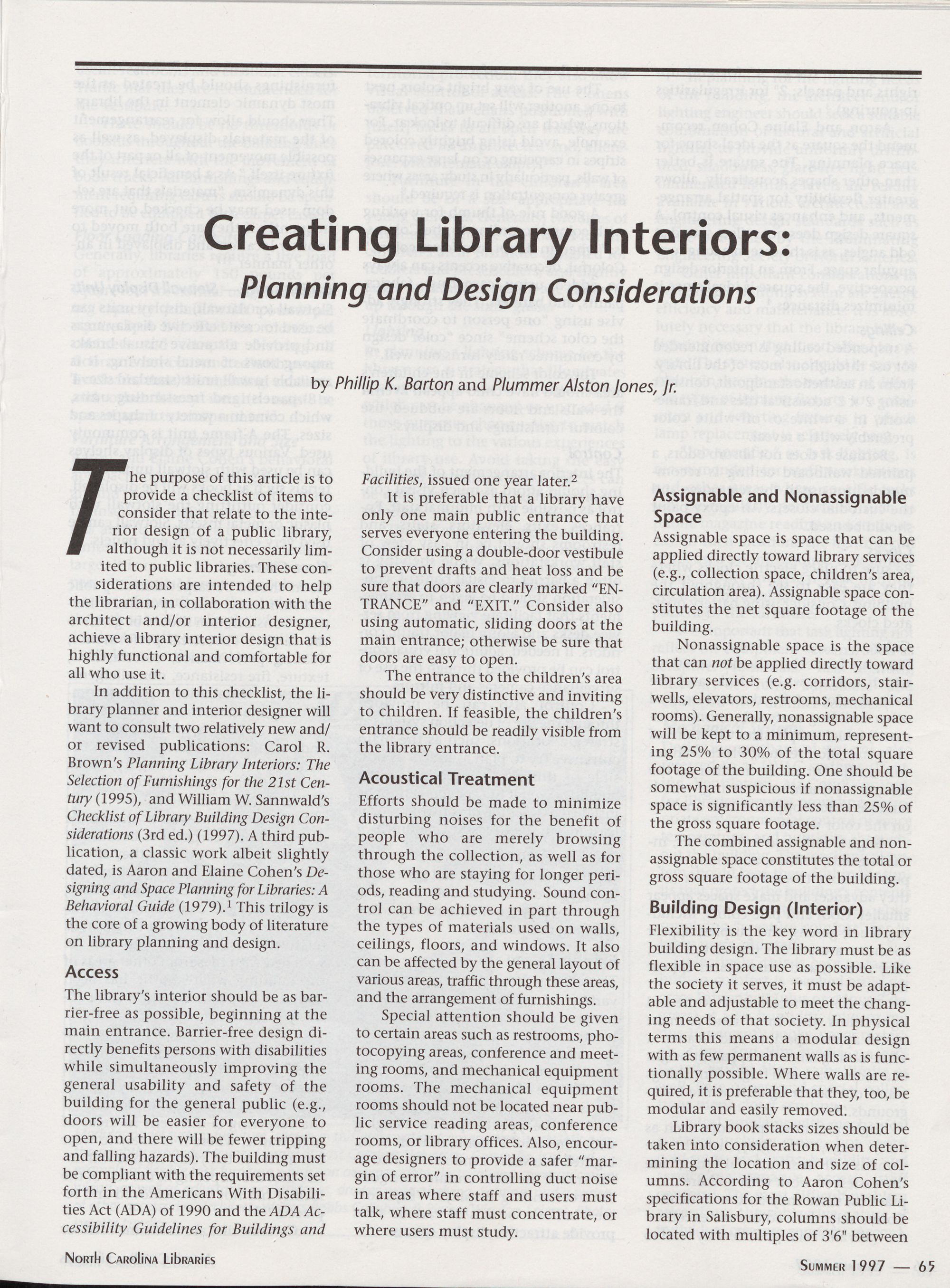 Creating Library Interiors: Planning and Design Considerations, Phillip K. Barton