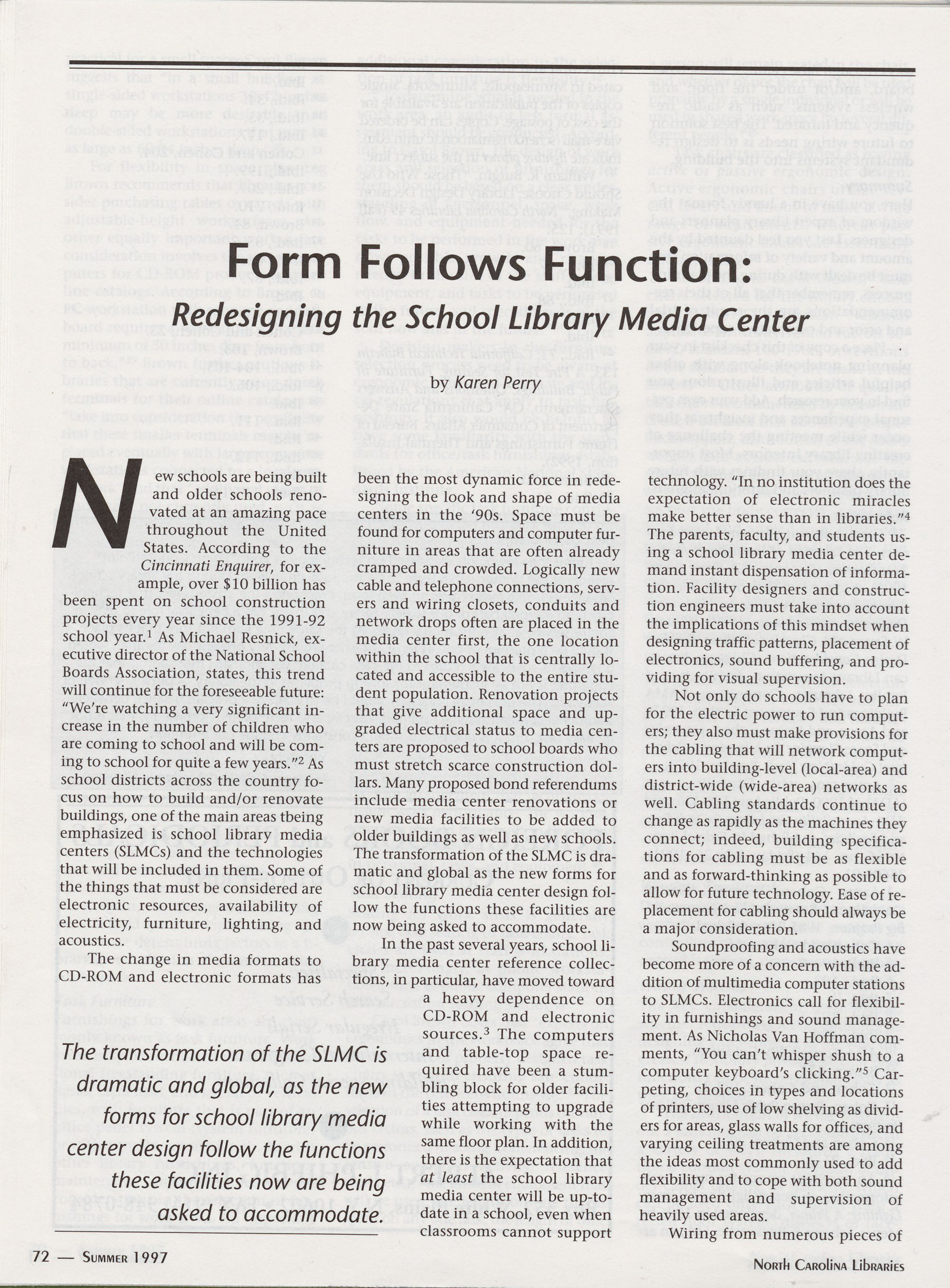 Form Follows Function: Redesigning the School Library Media Center,