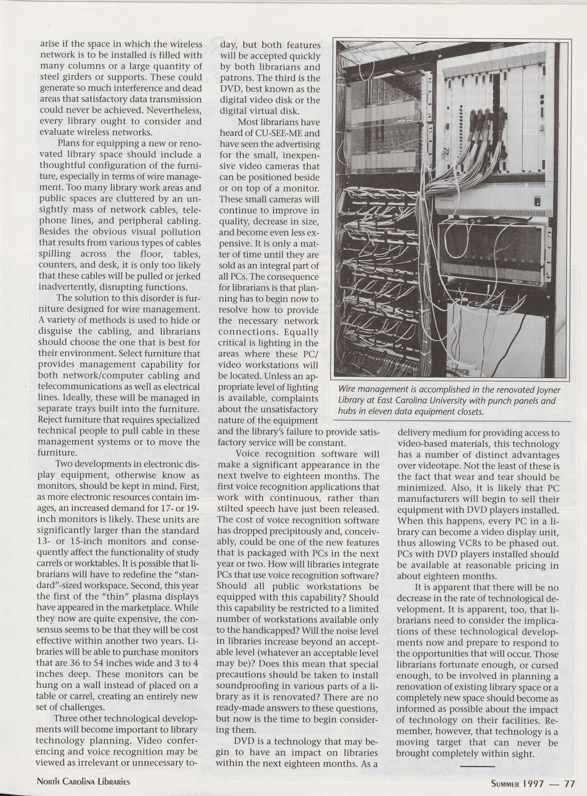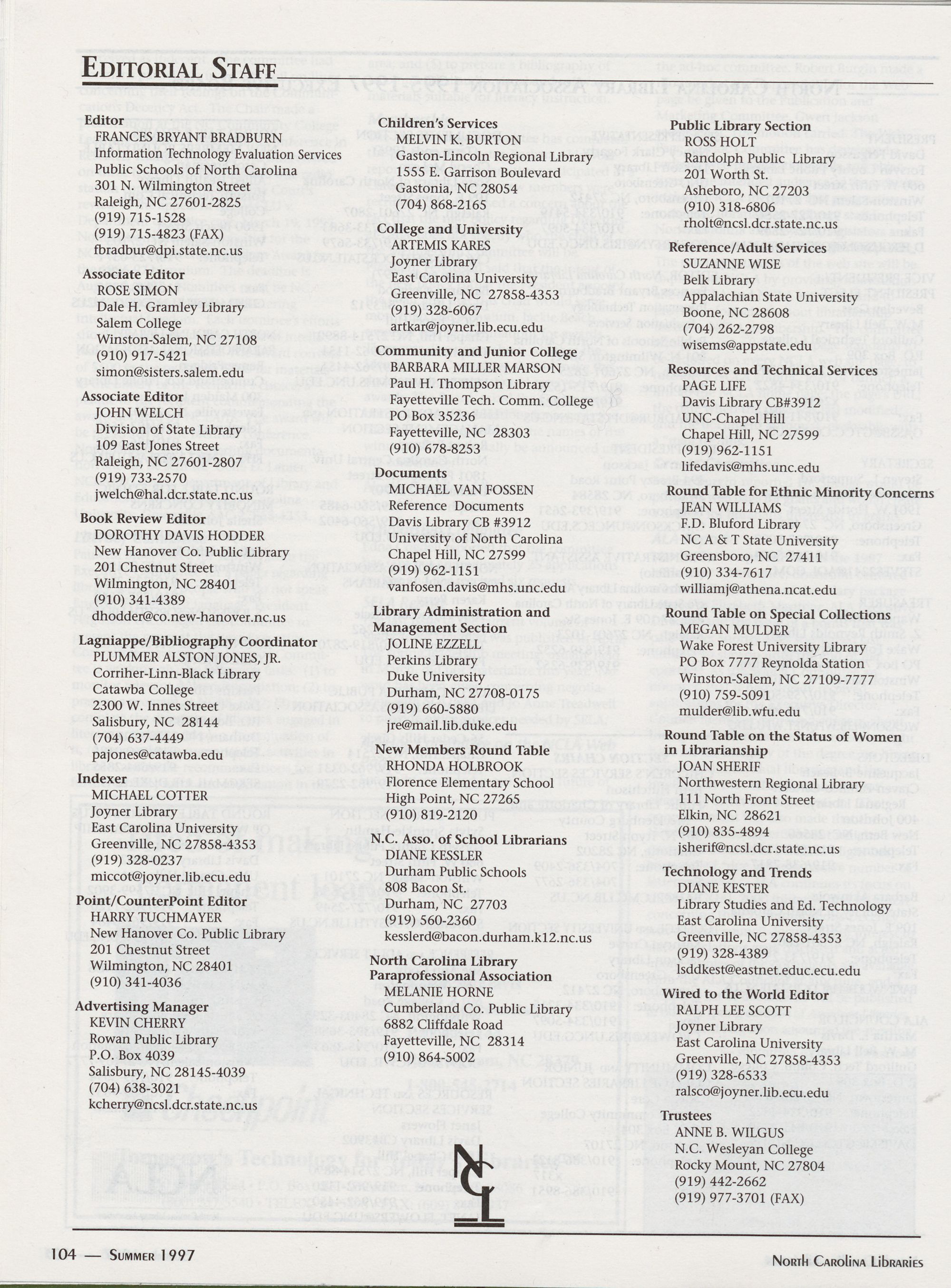 North Carolina Libraries, published four times a year, is the official publication of the North