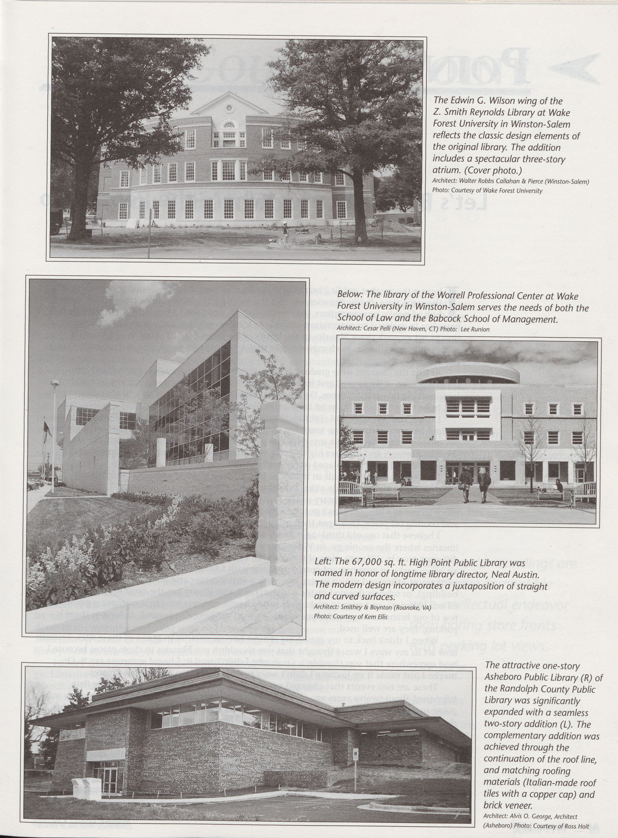 Wilson wing (photo page 83) at Wake Forest University, Winston-Salem. Architect: