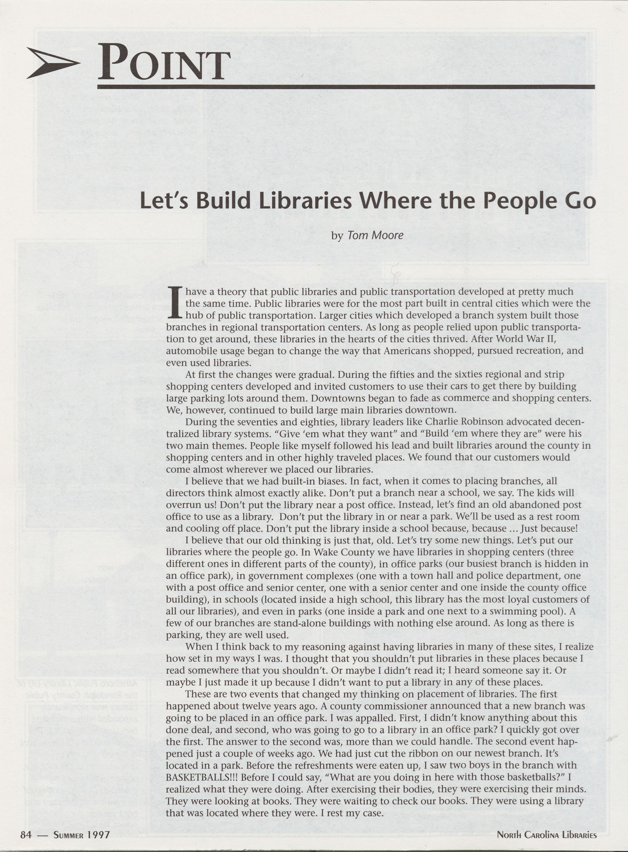 Point: LetTs Build Libraries Where the People Go, Tom Moore