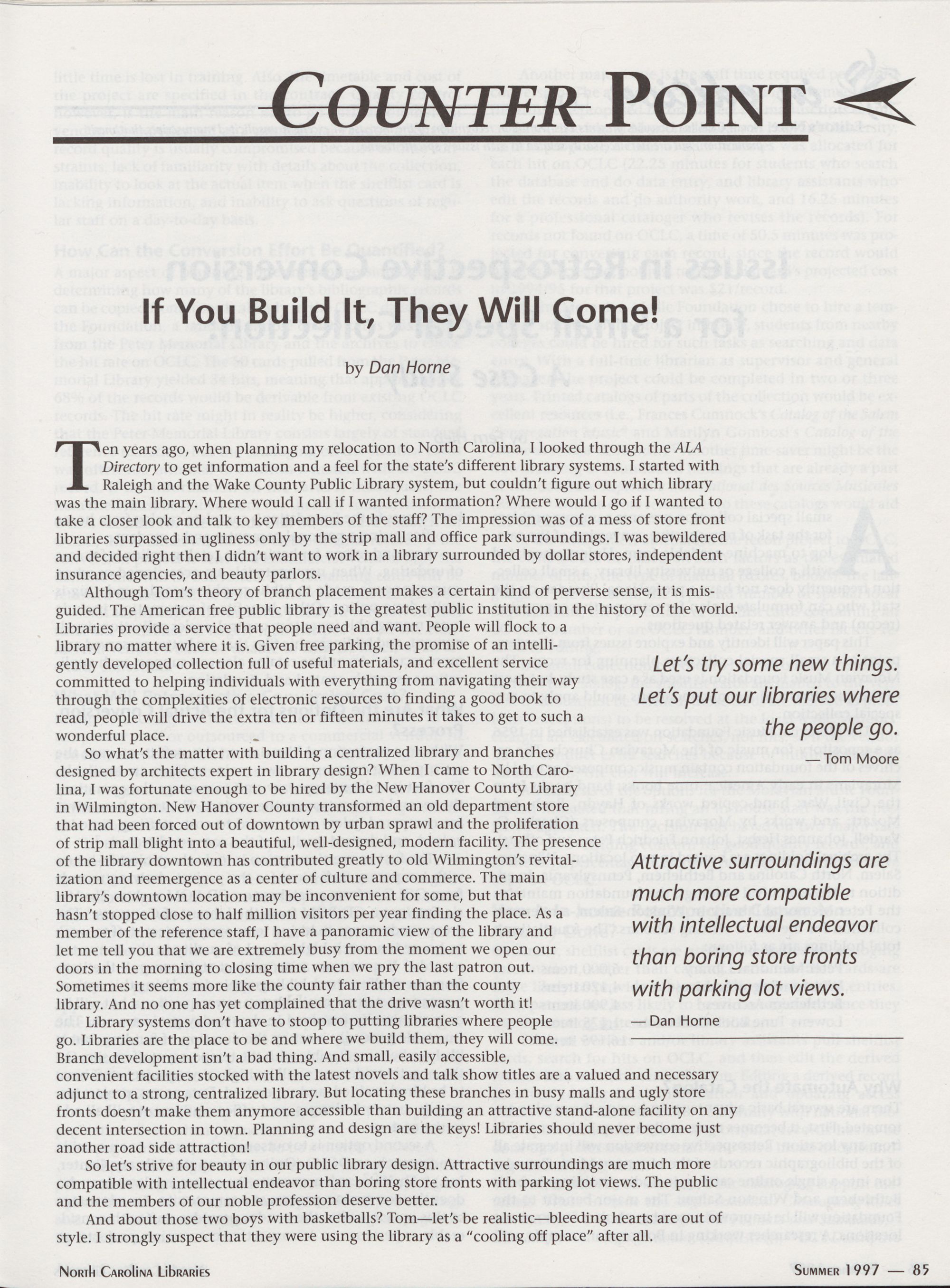 Counter Point: If You Build It, They Will Come!, Dan Horne