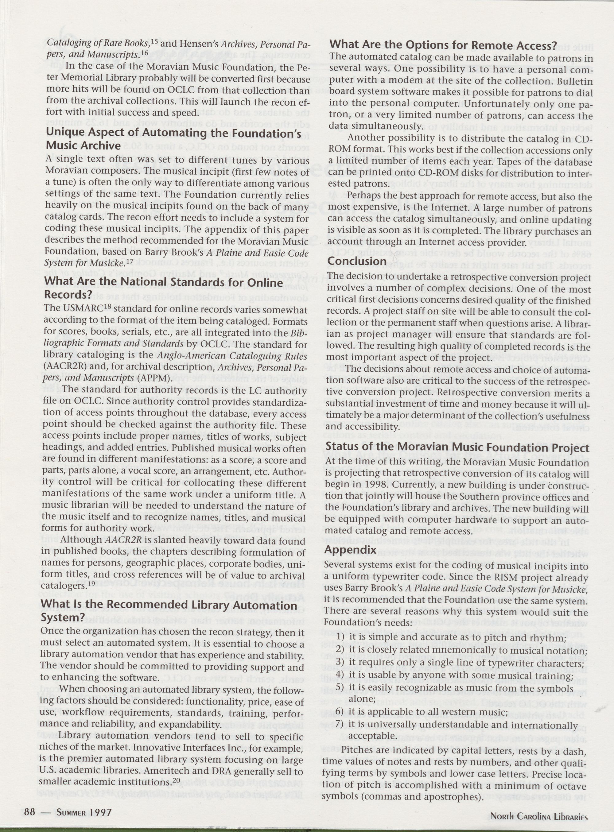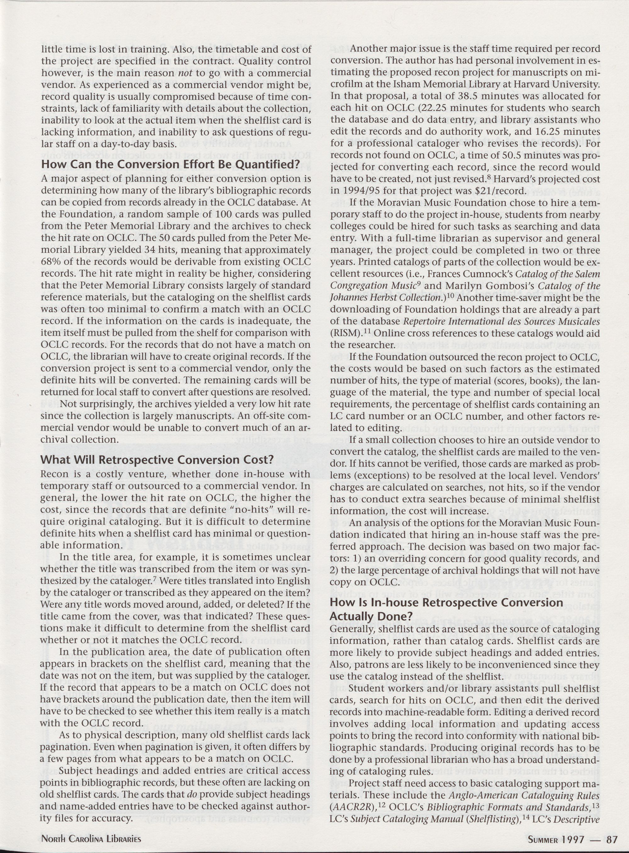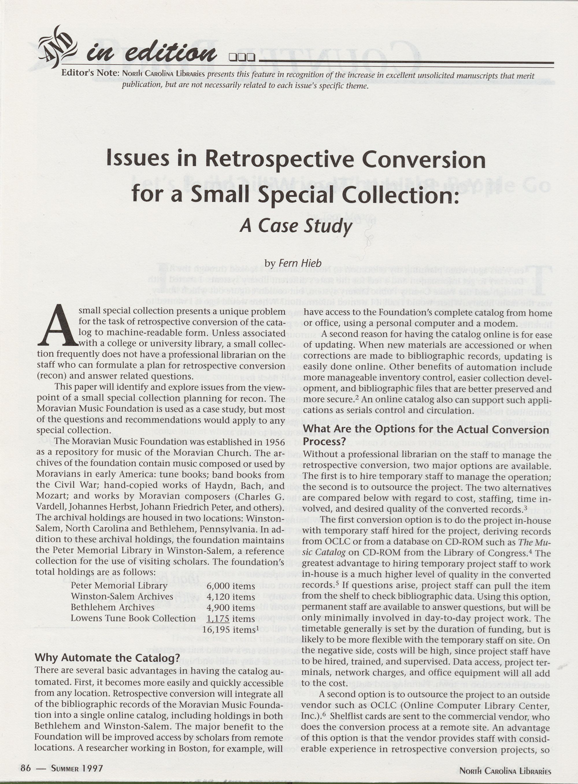 And in Edition: Issues in Retrospective Conversion for a Small Special Collection: