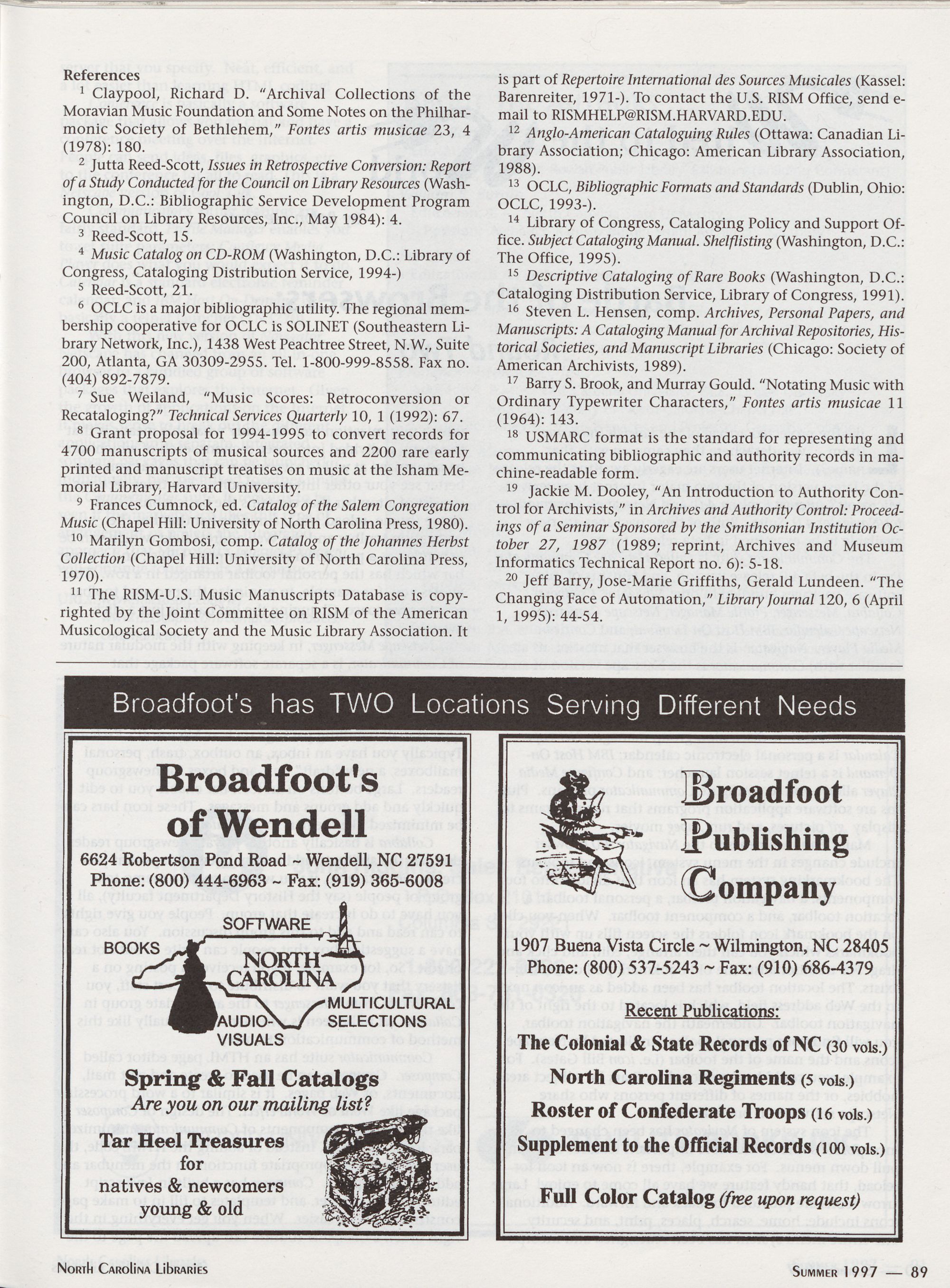 Advertisers: Broadfoot's, 89;