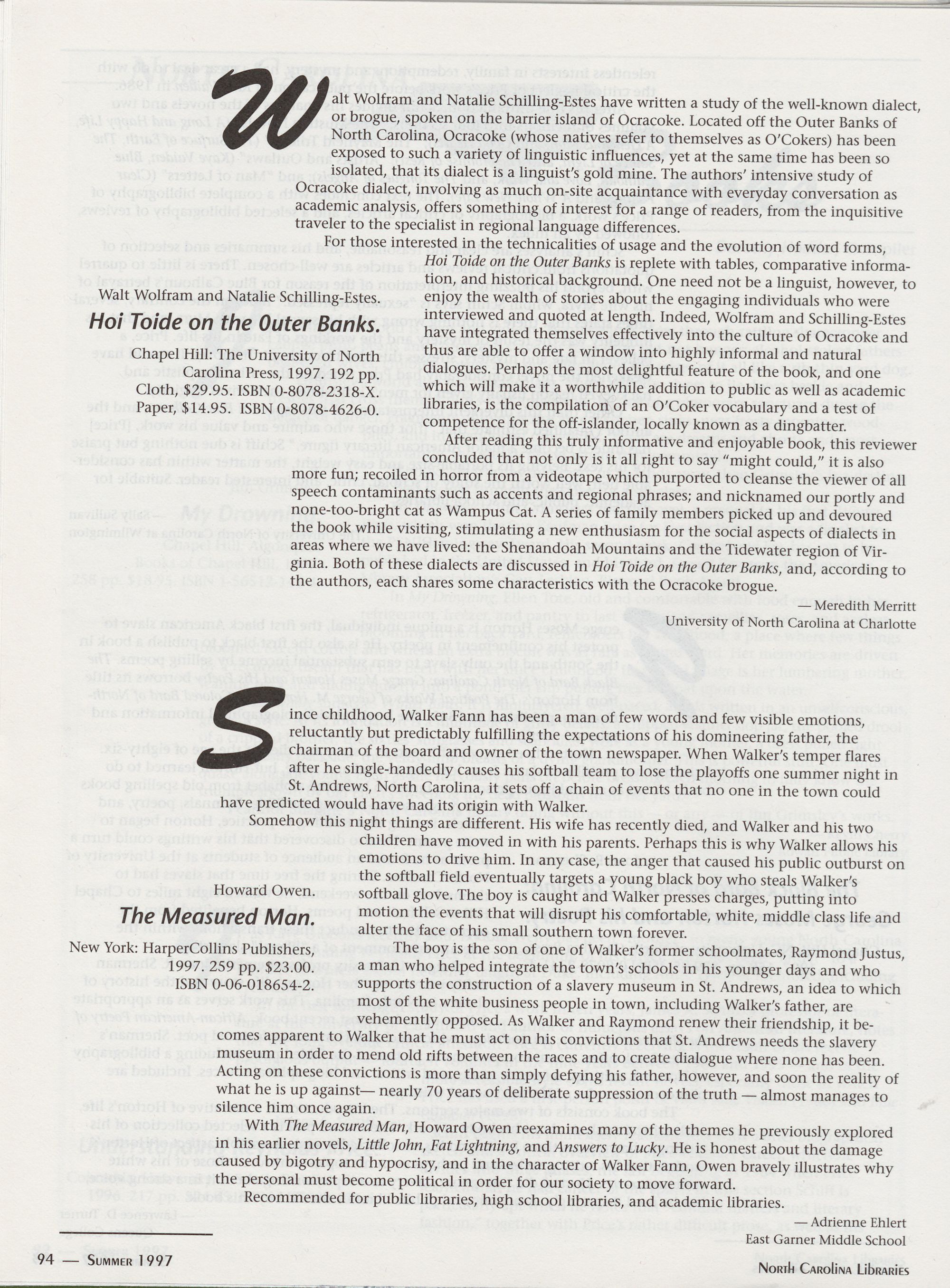 April $29.95 cl (0-8078-2341-4)