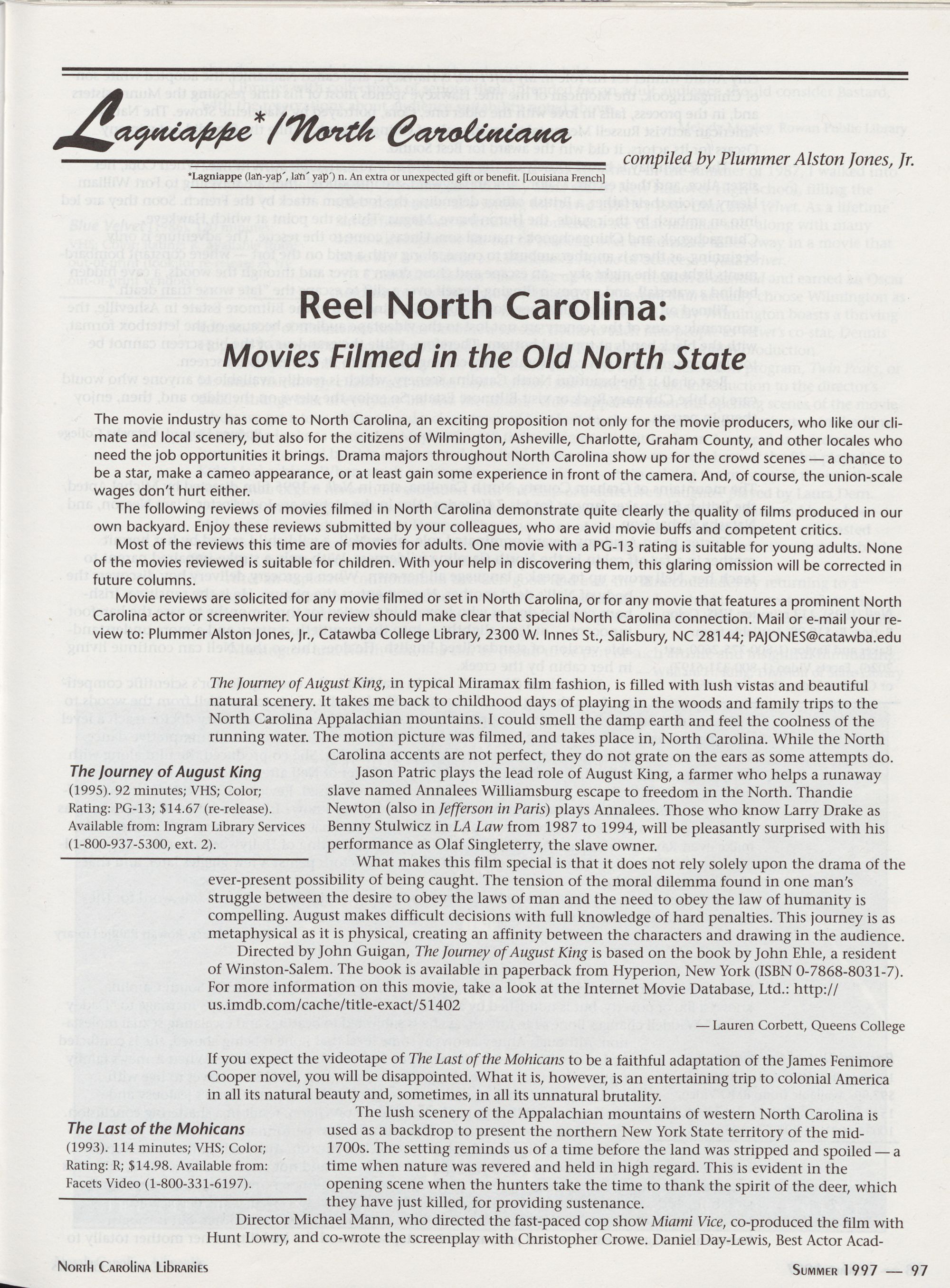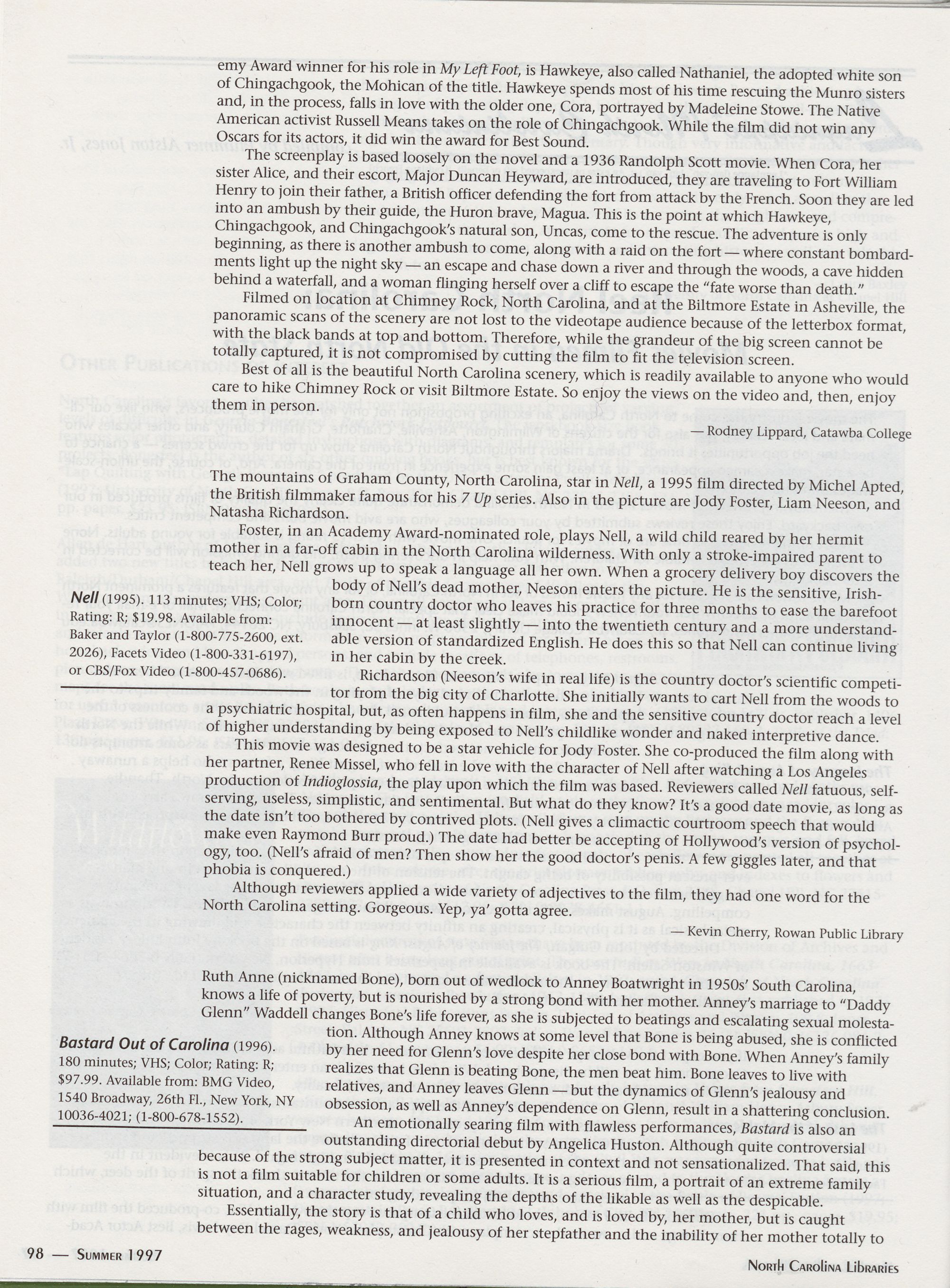 Lagniappe: Reel North Carolina: Movies Filmed in the Old North State