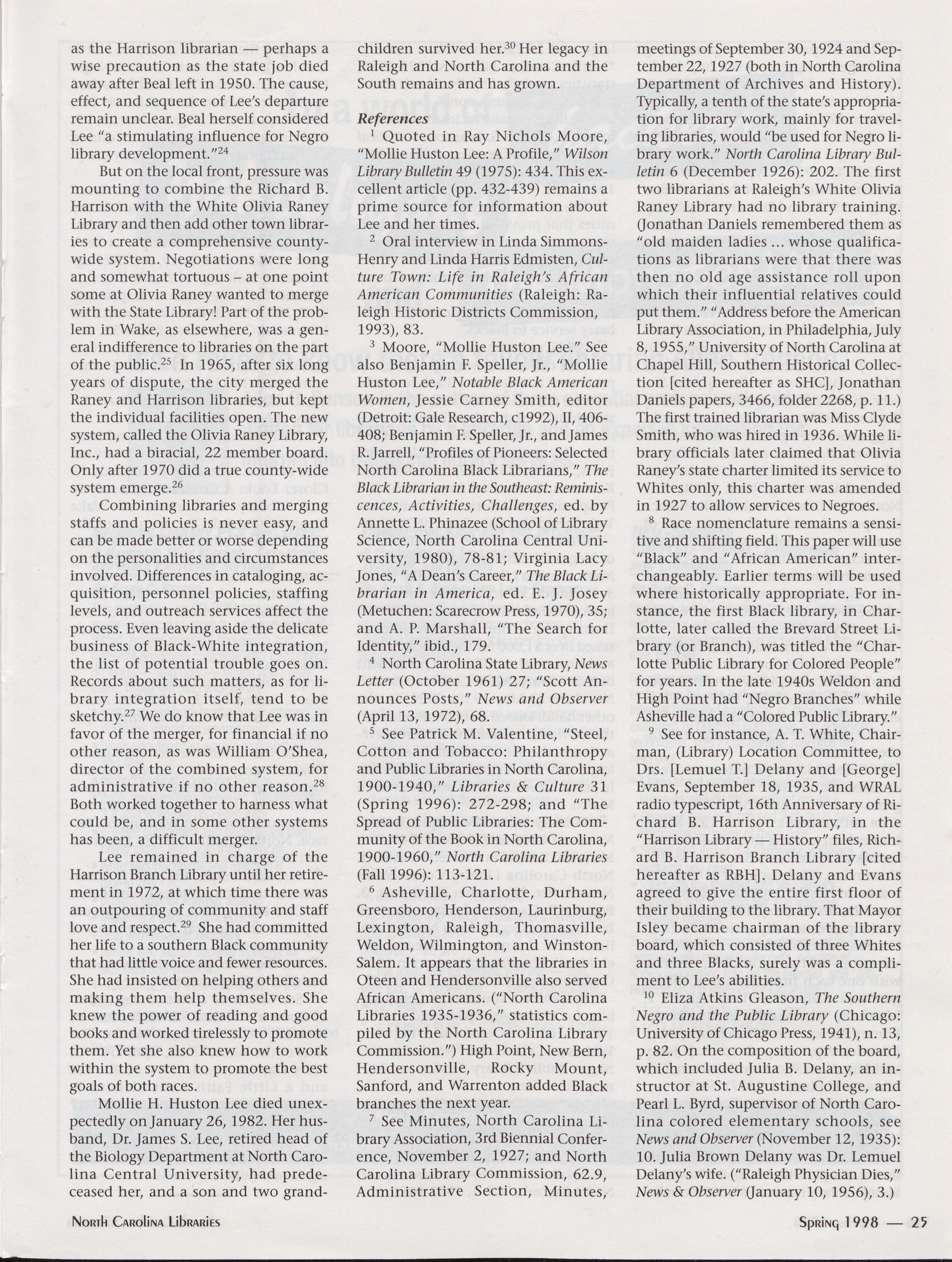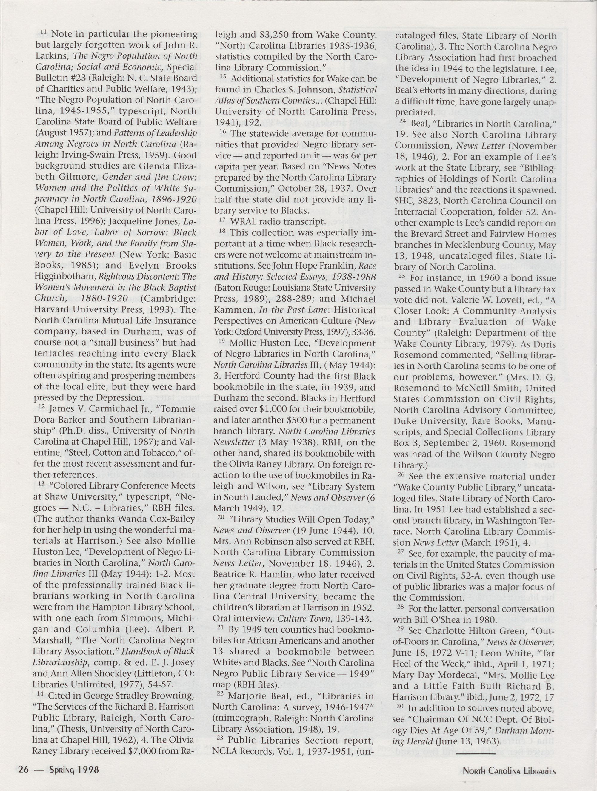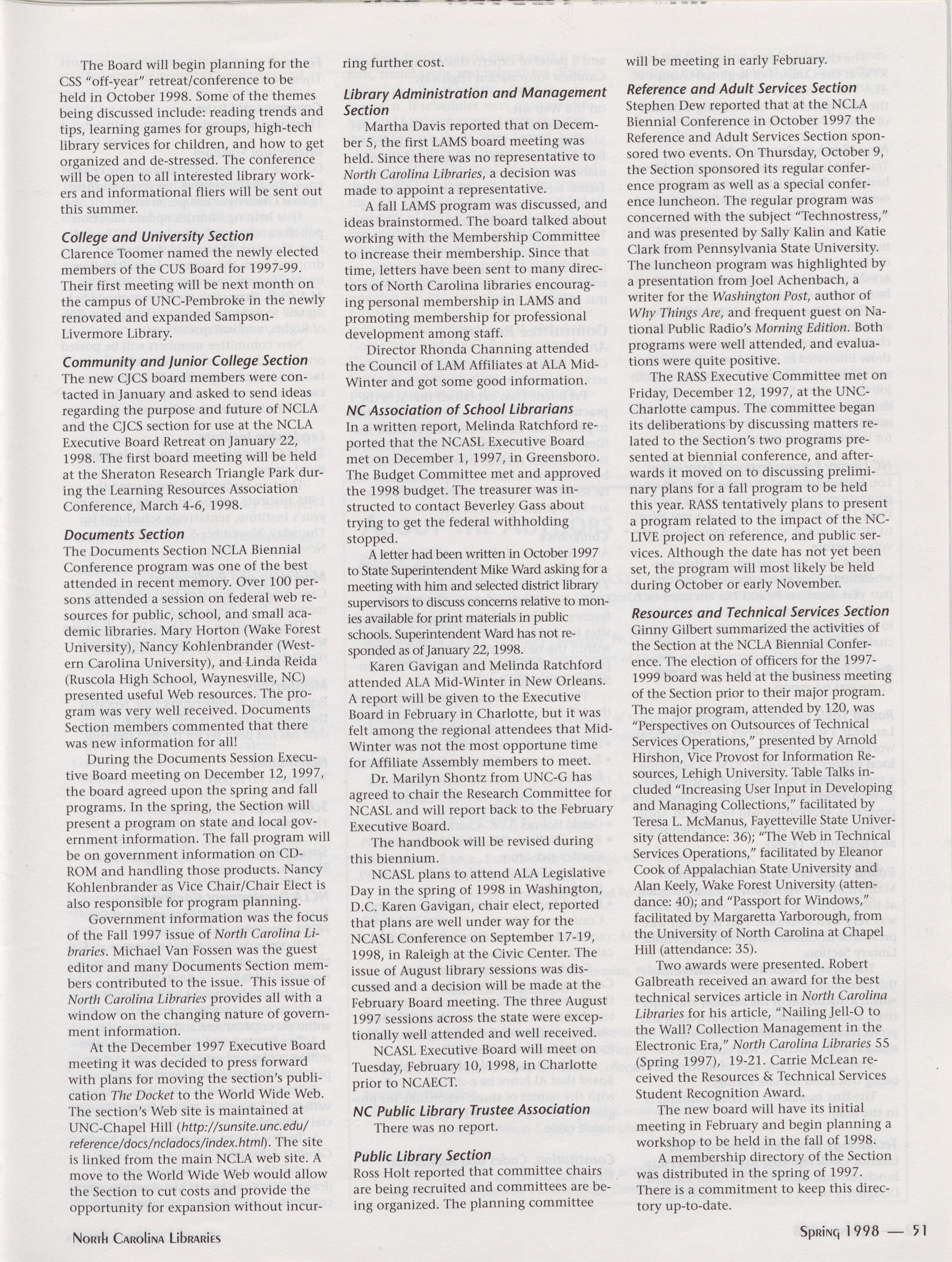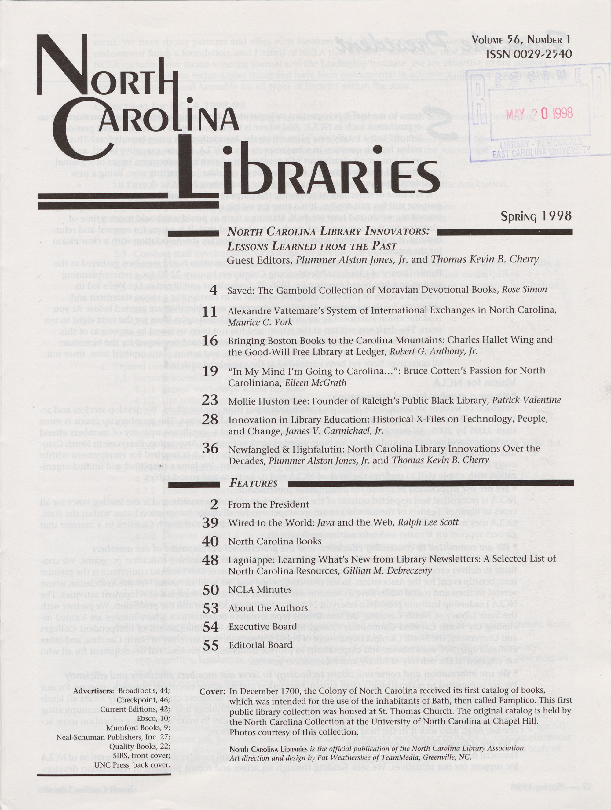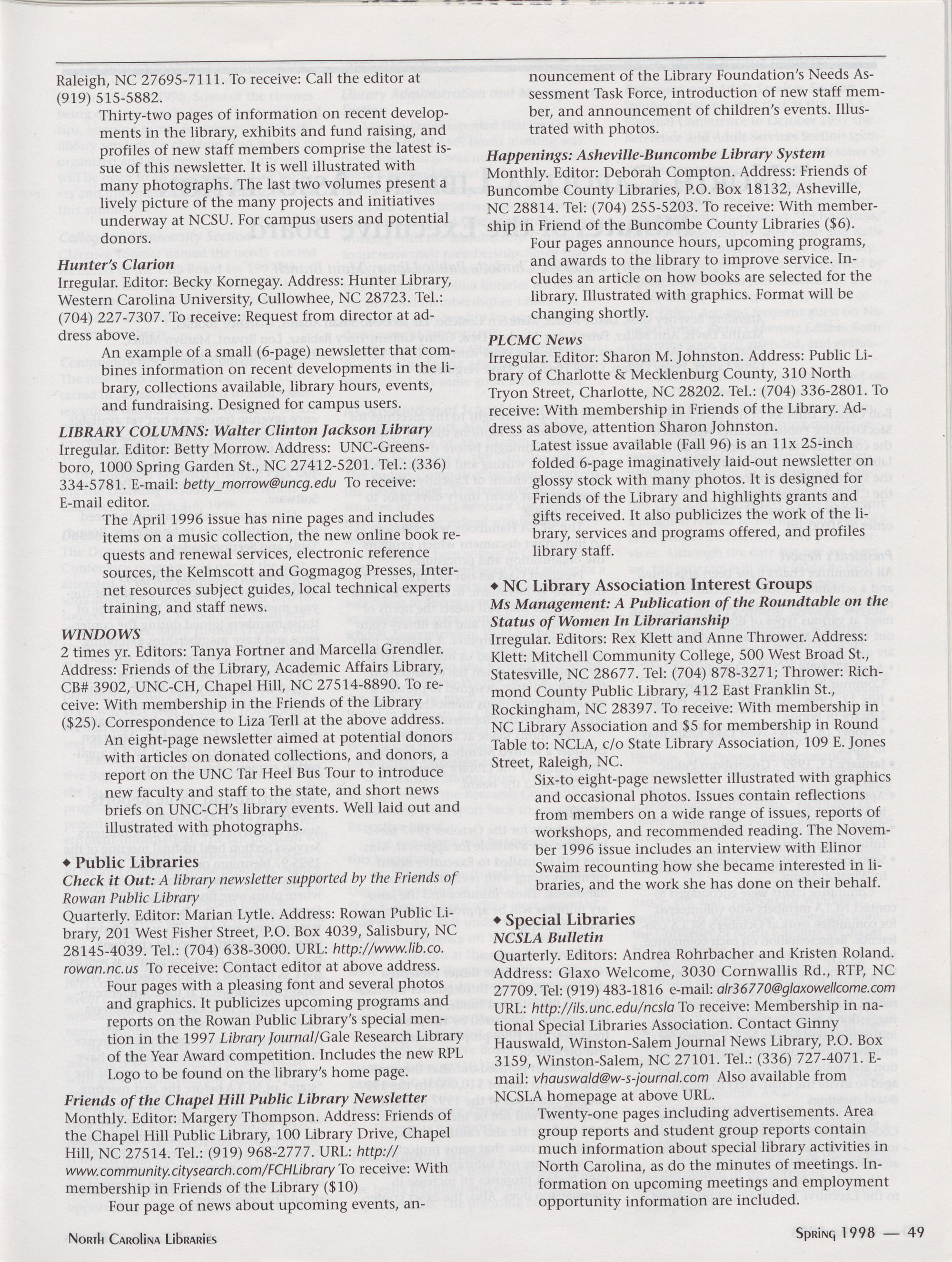 North Carolina Libraries, published four times a year, is the official publication of the North