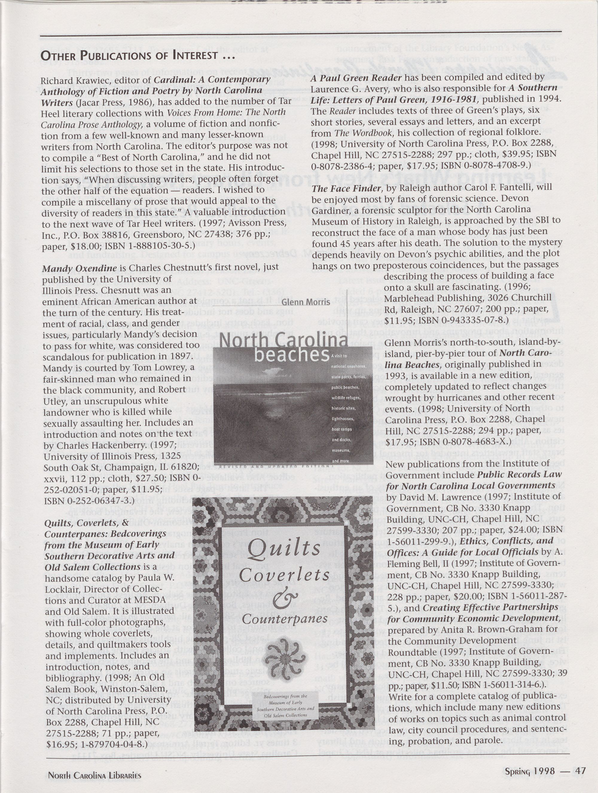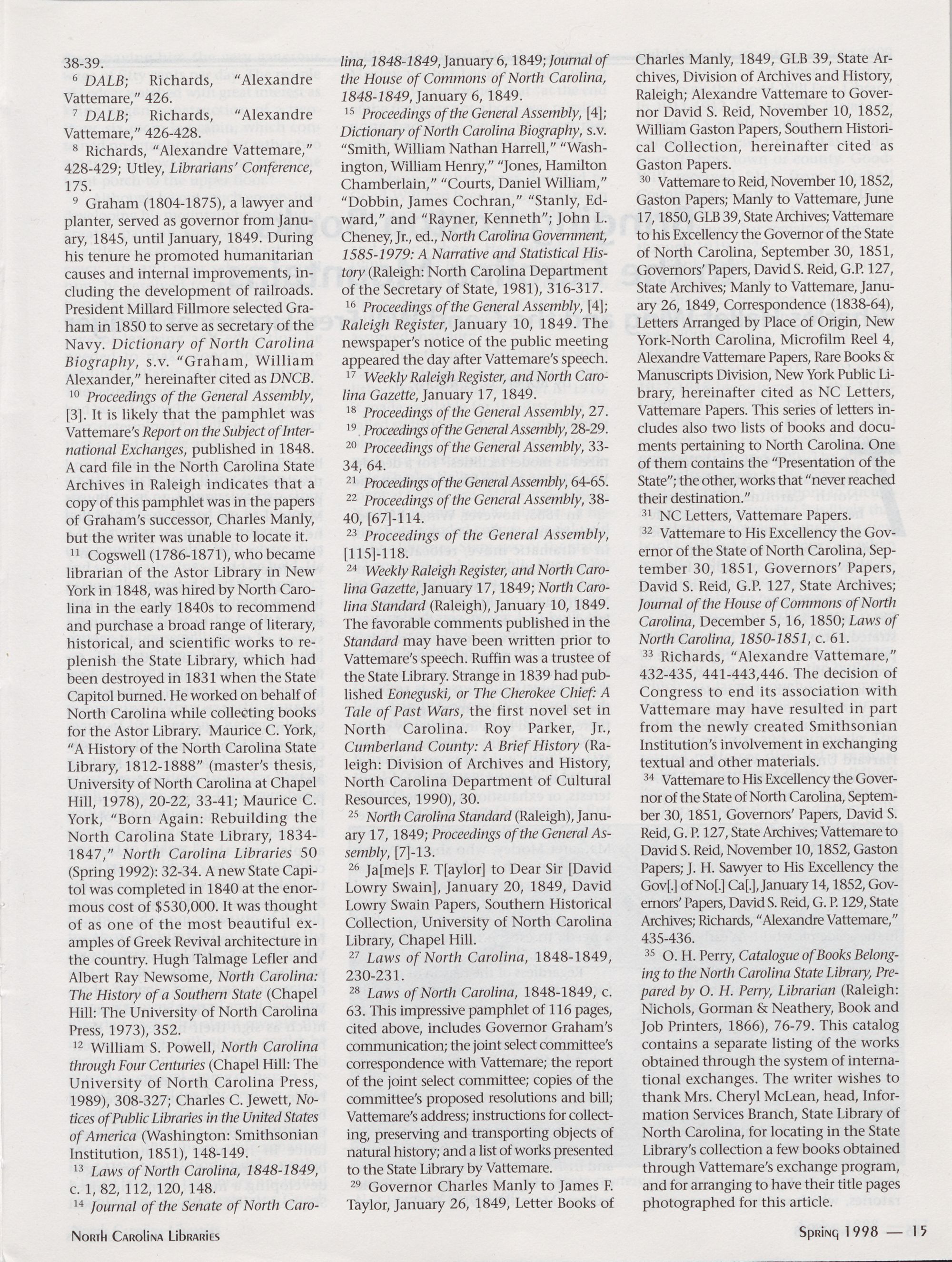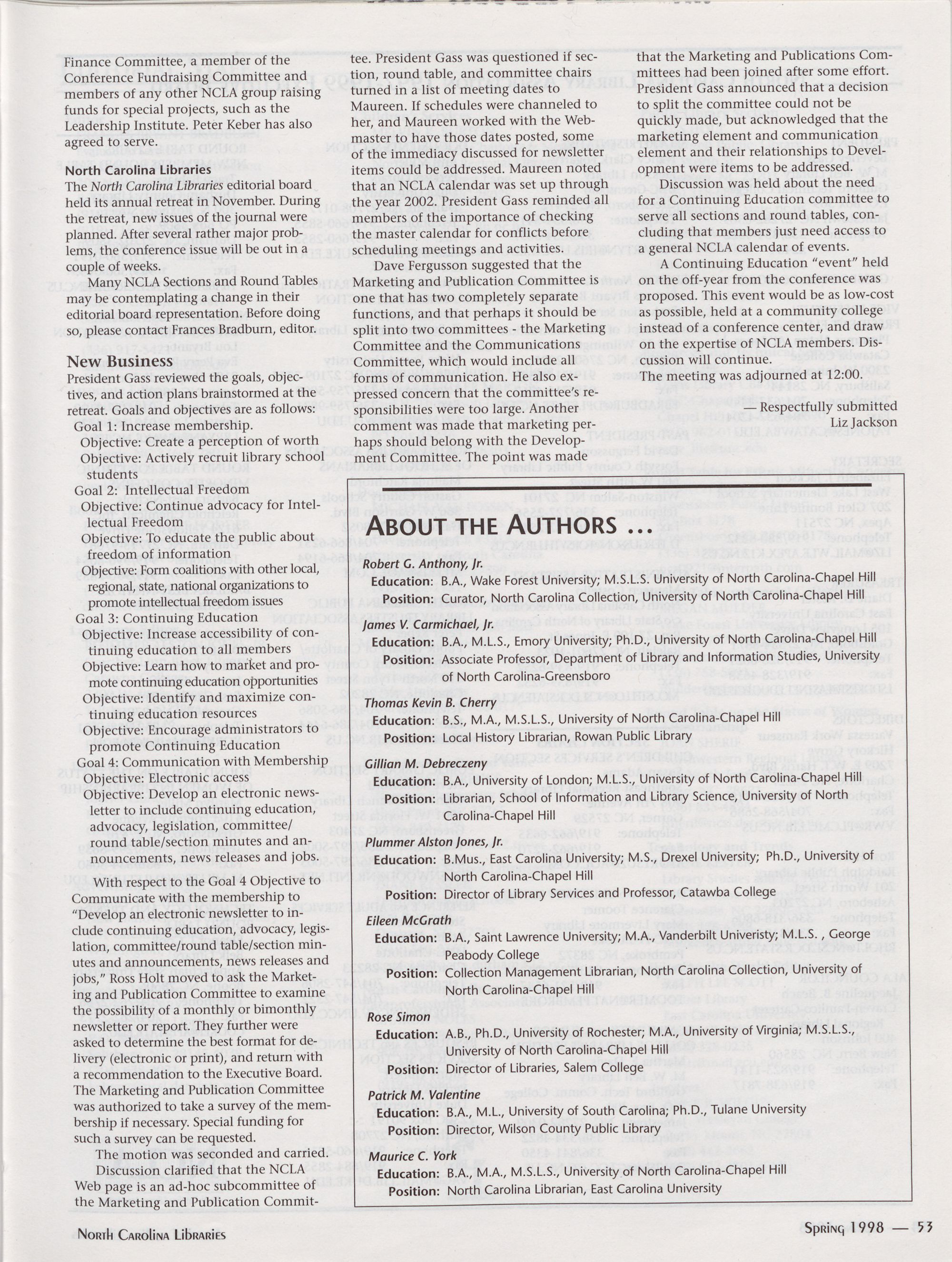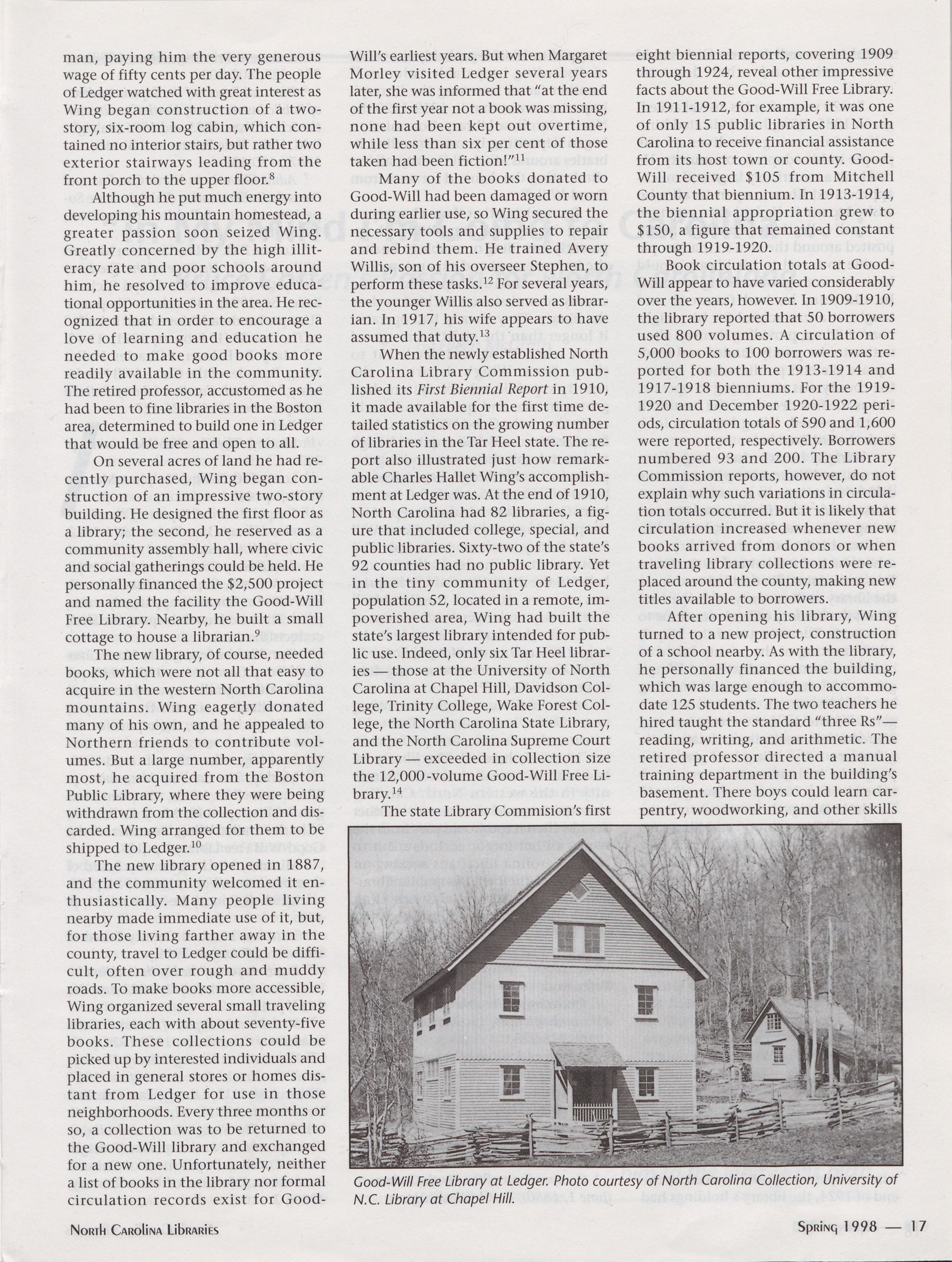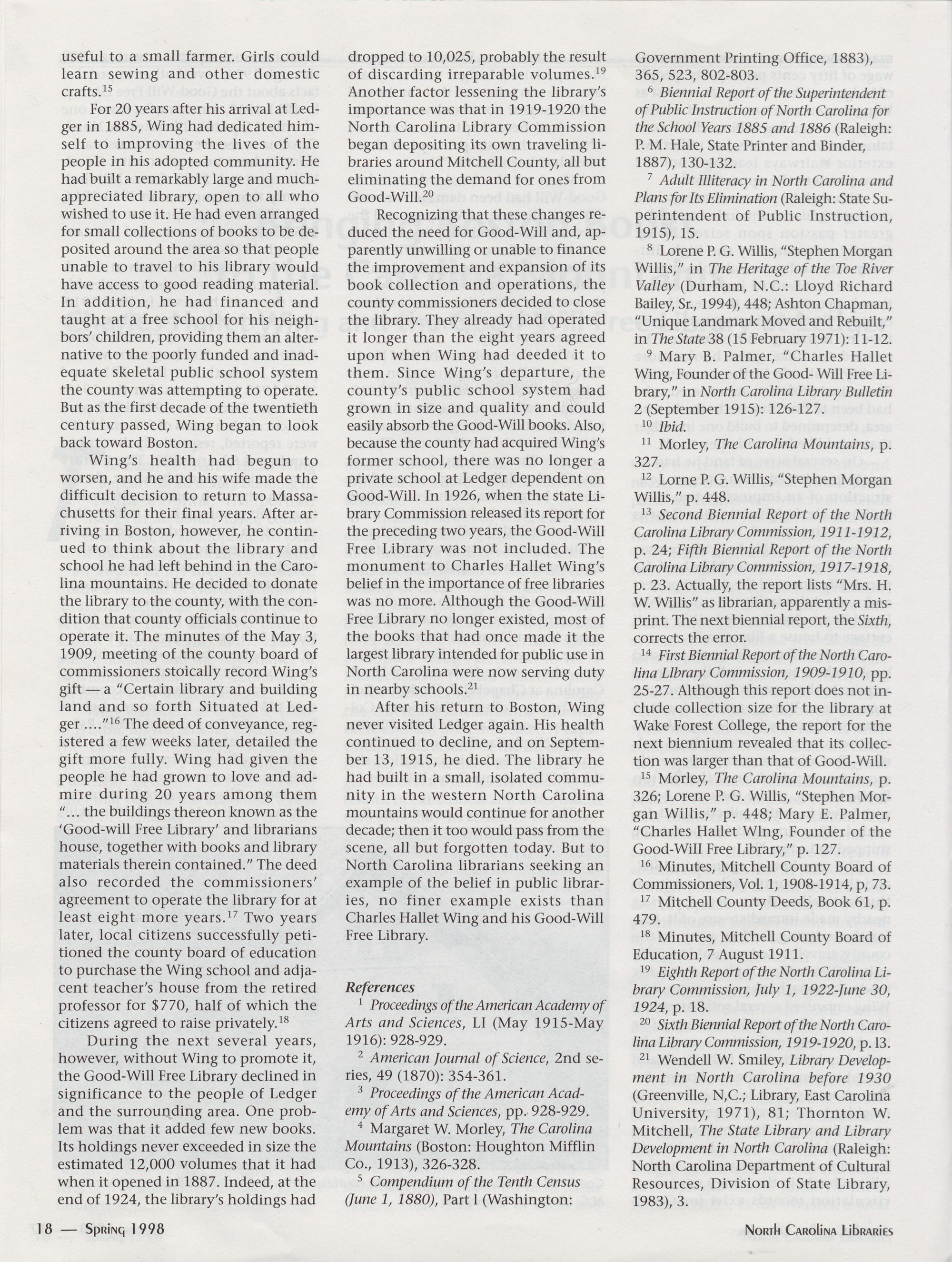 North Carolina Libraries, published four times a year, is the official publication of the North