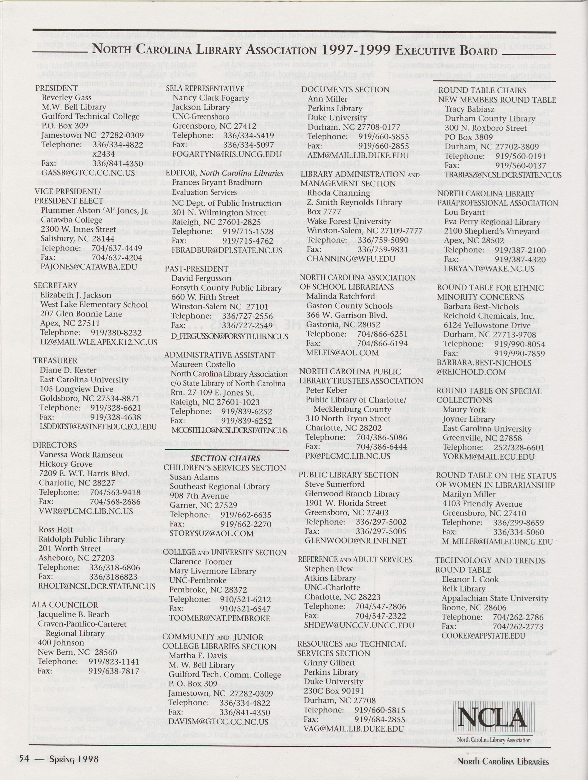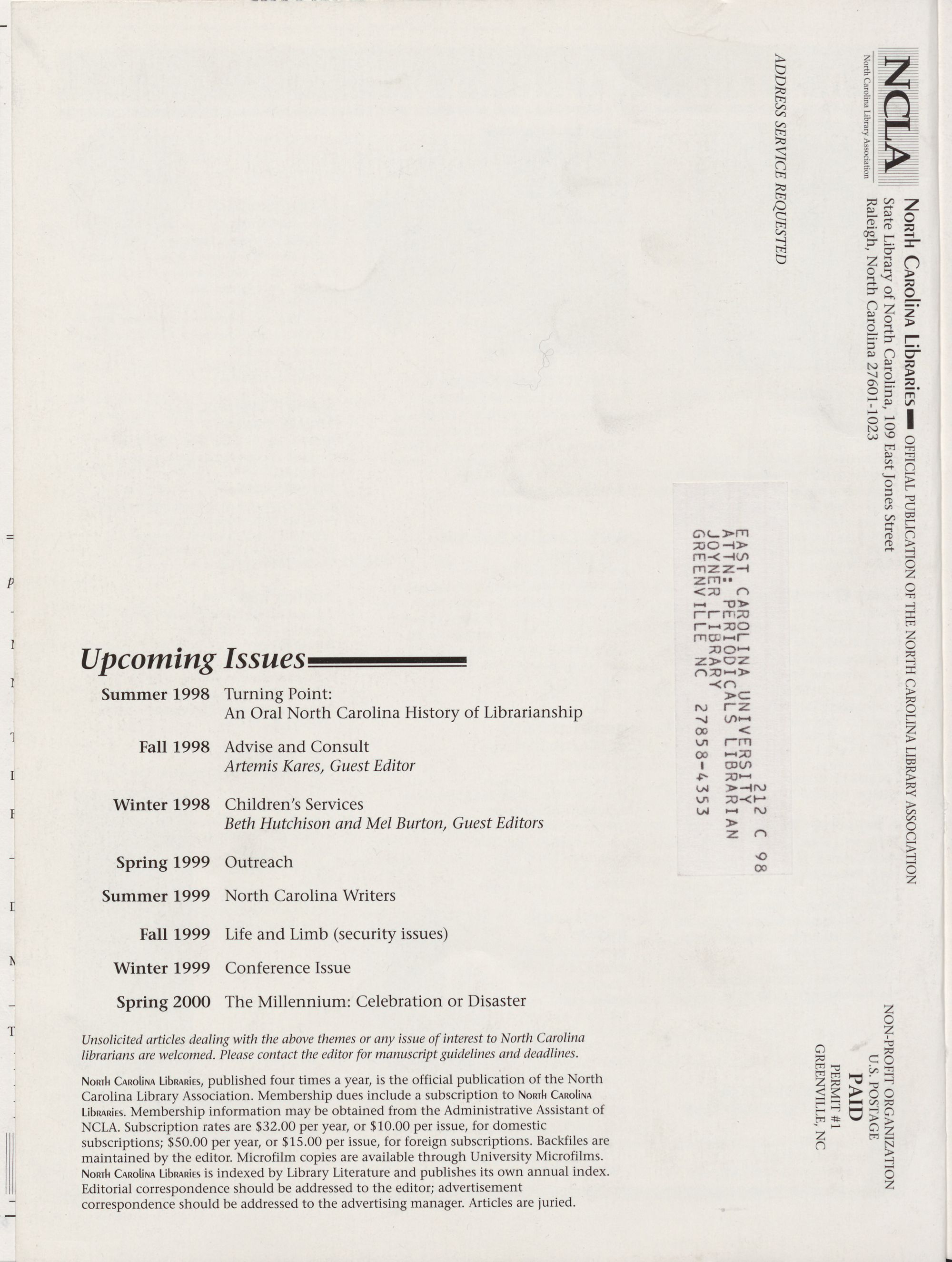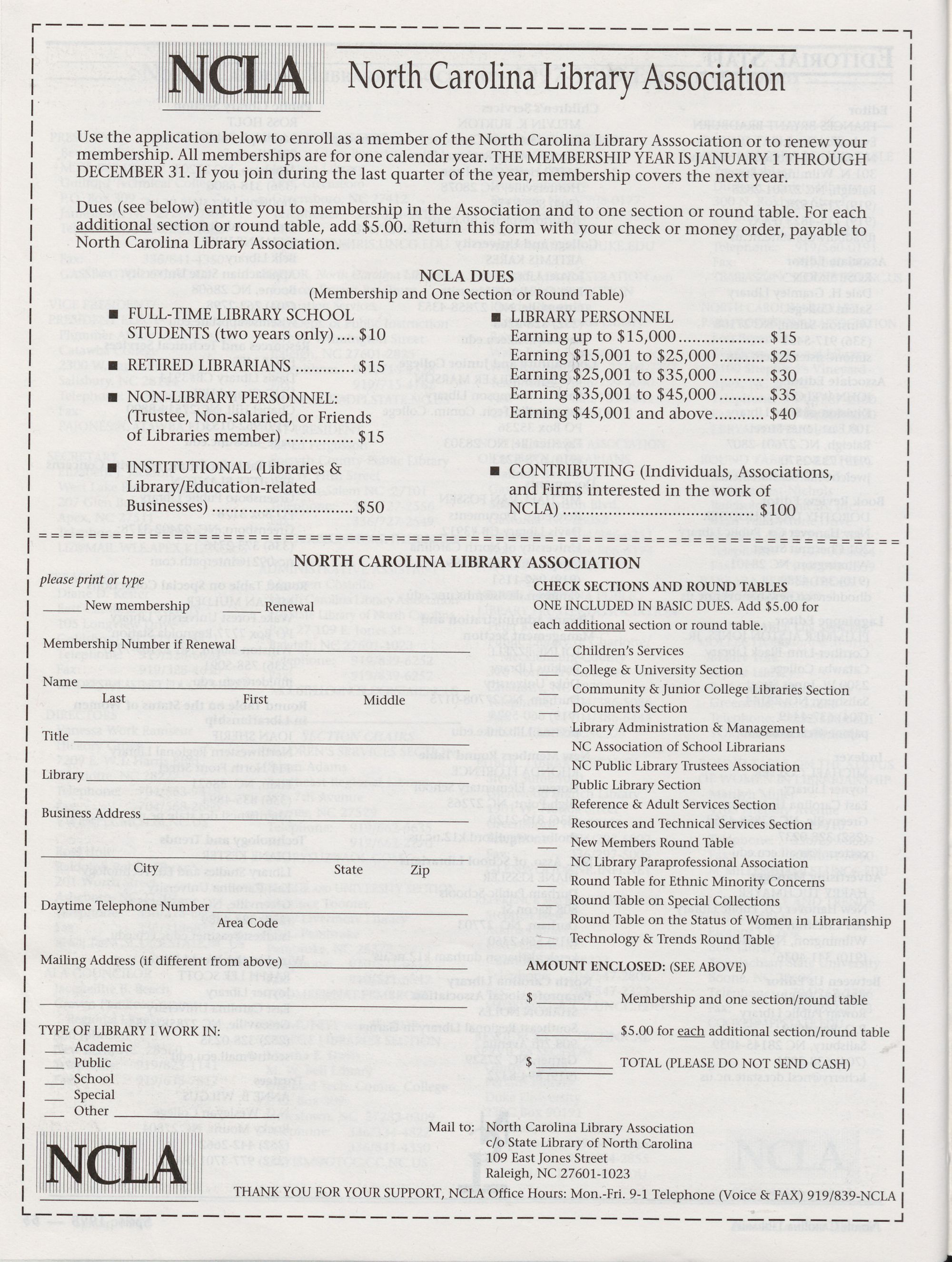 Carolina Library Association. Membership dues include a subscription to North Carolina