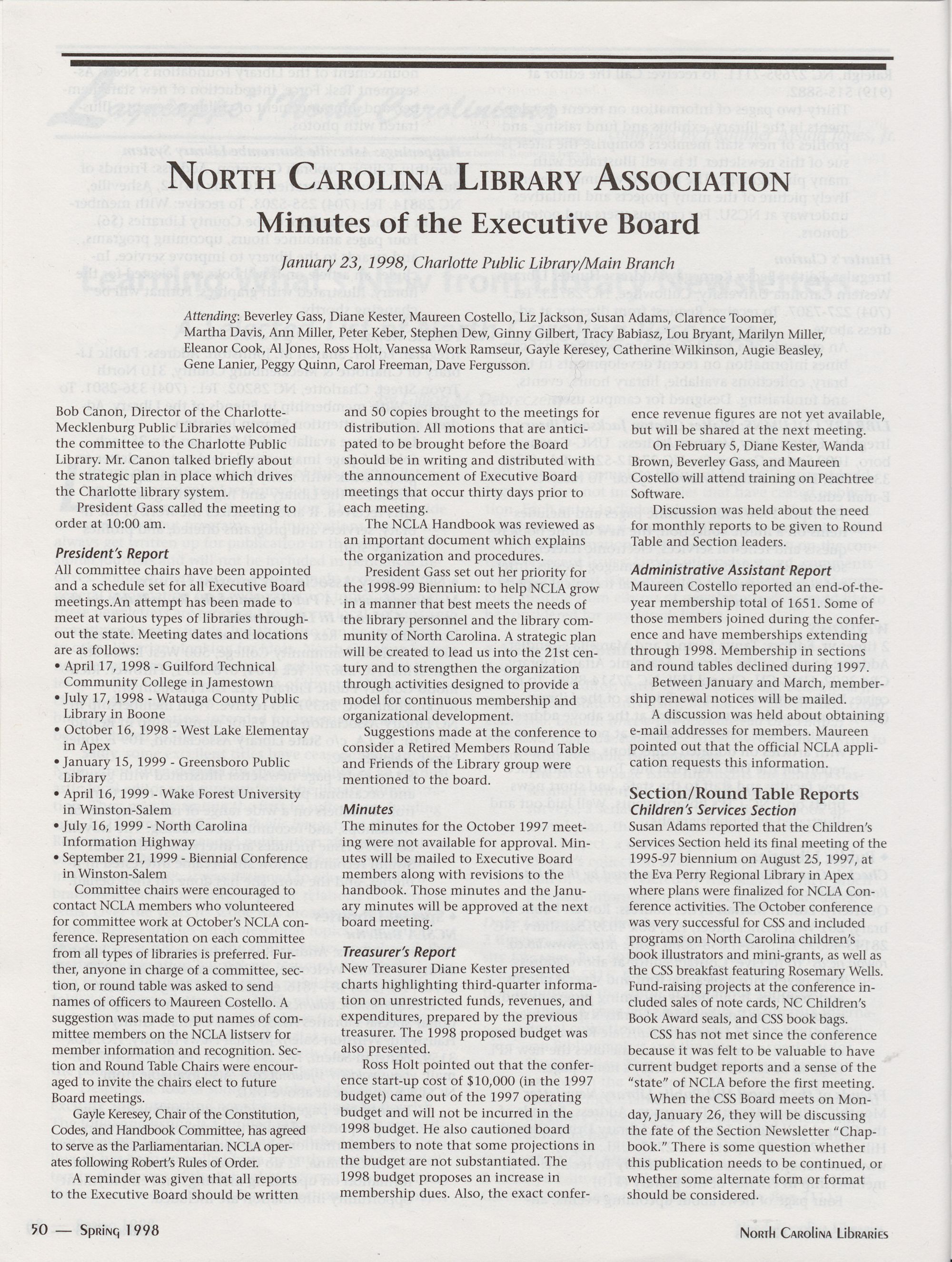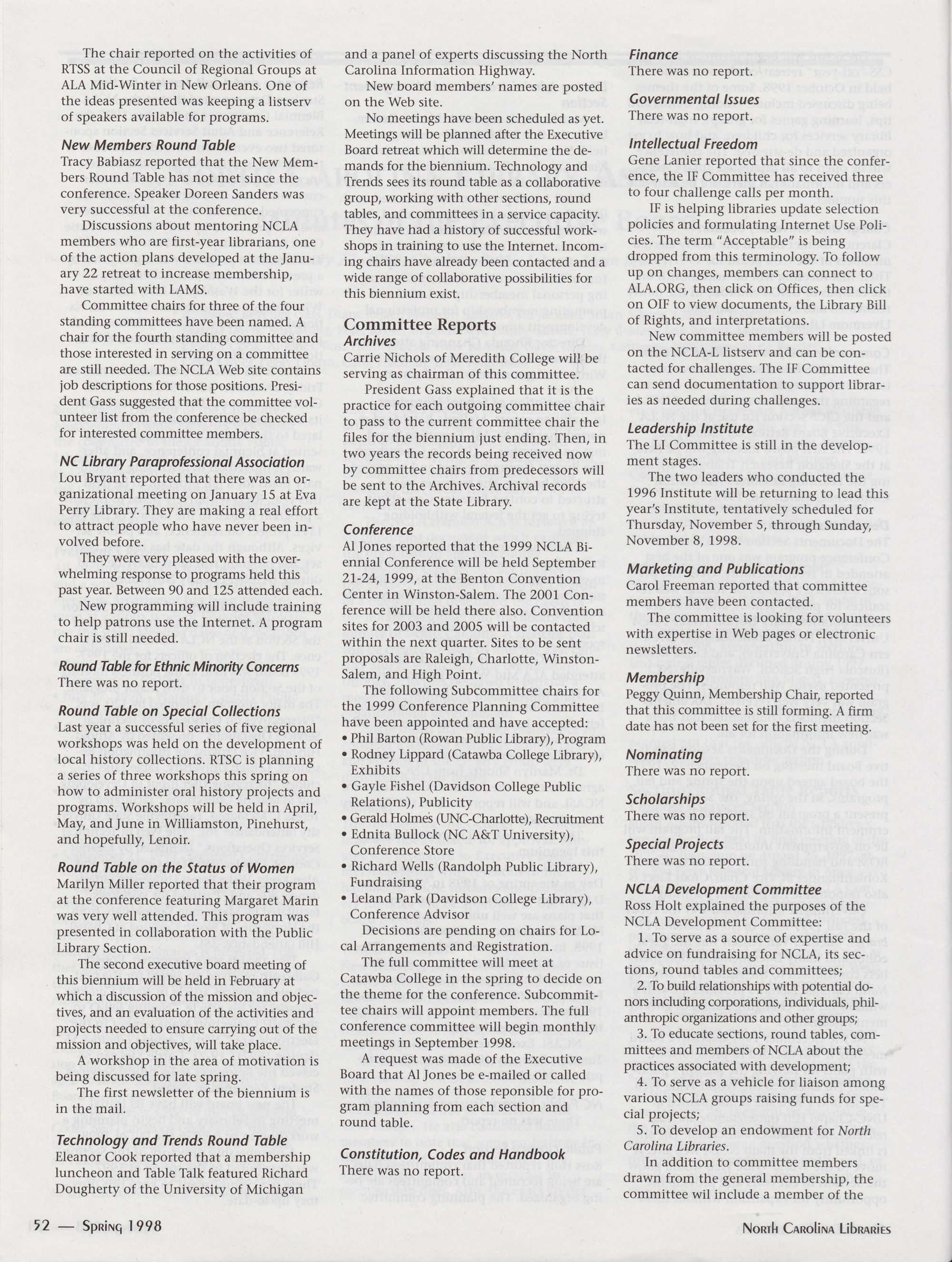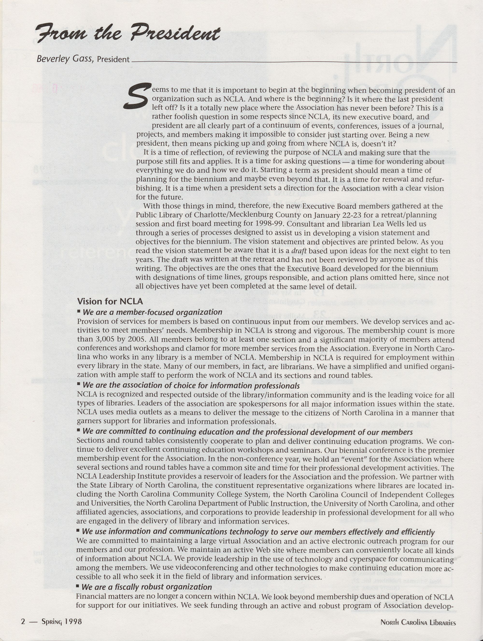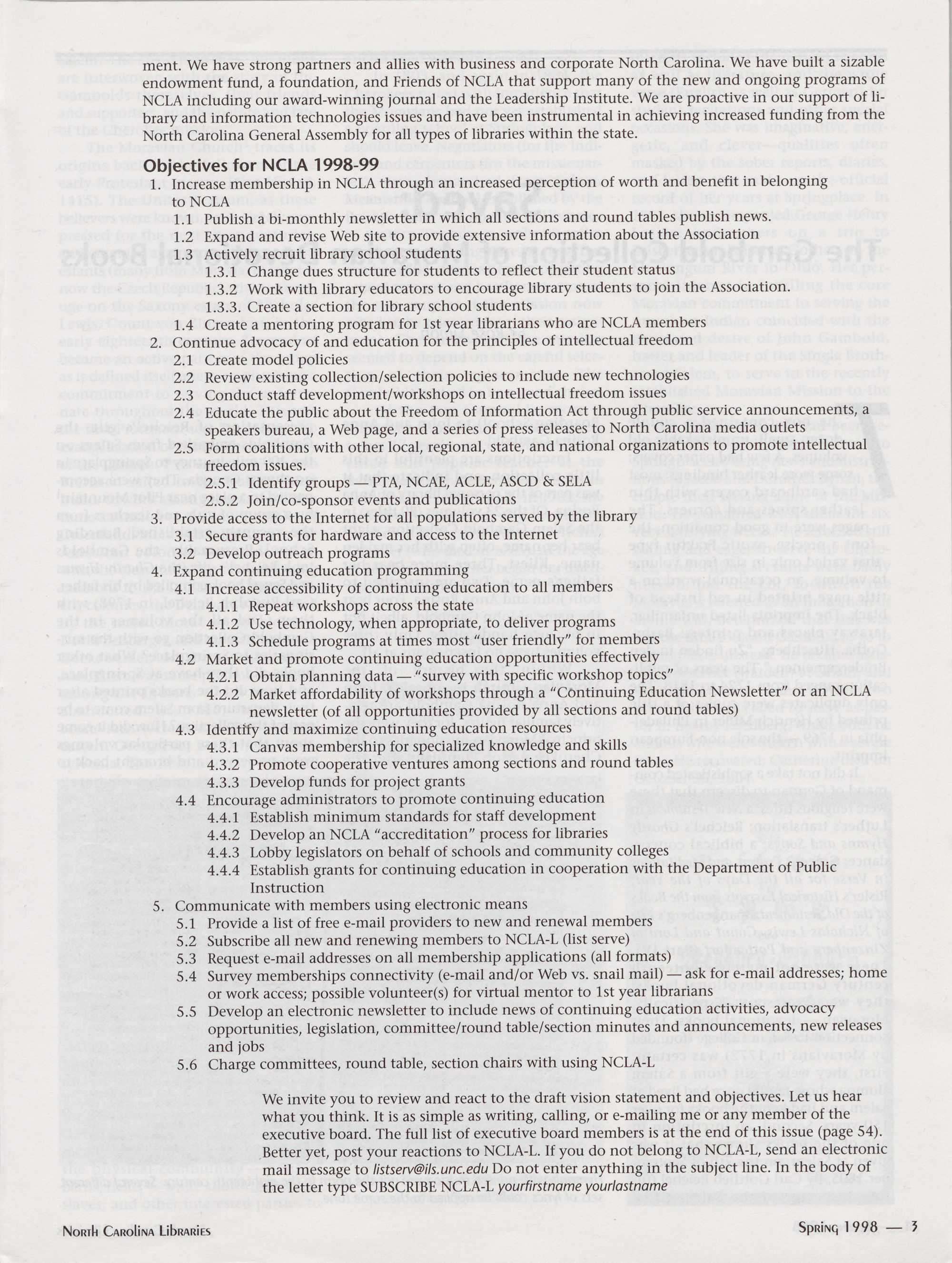 Carolina Library Association. Membership dues include a subscription to North Carolina