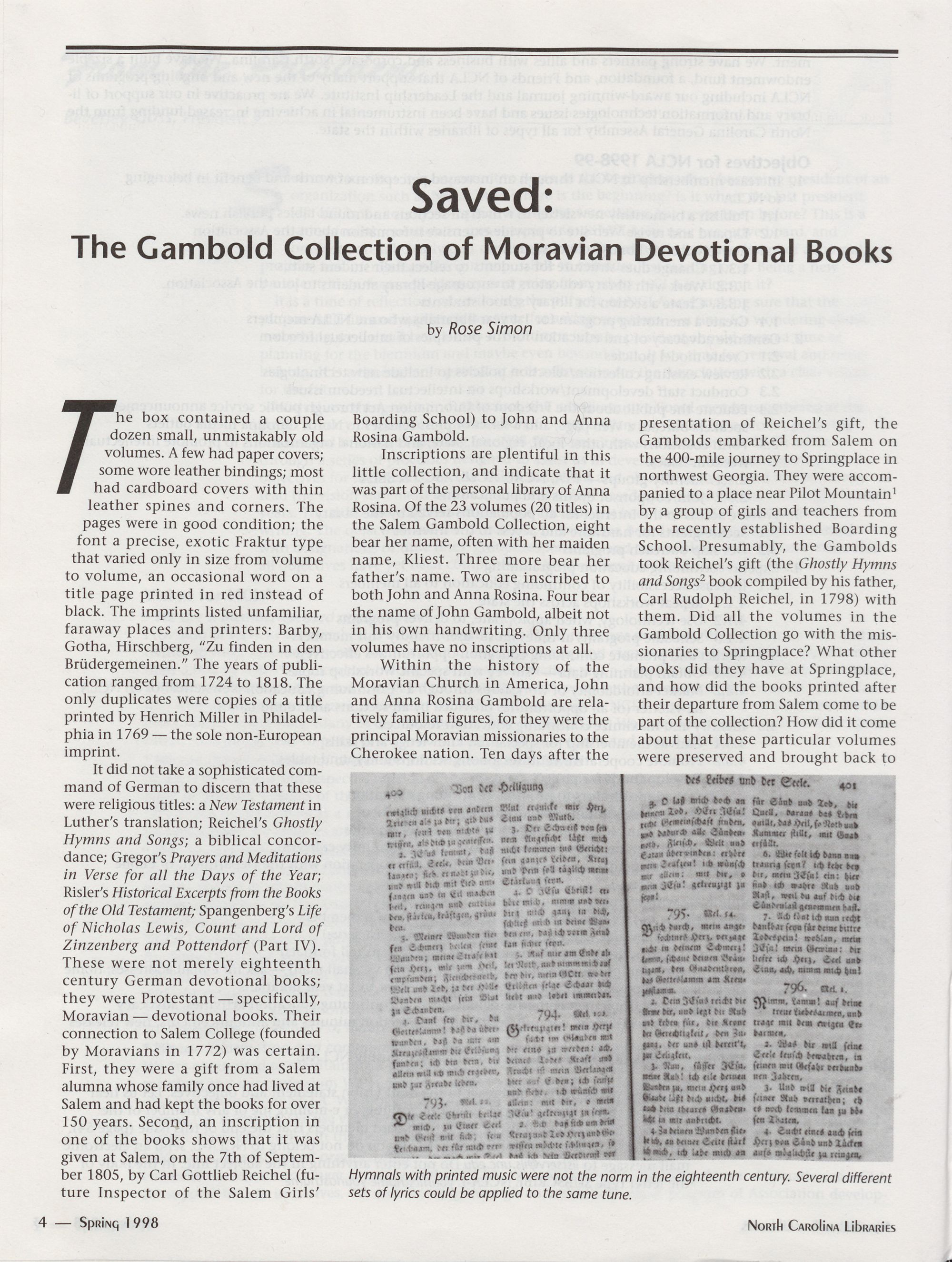 Saved: The Gambold Collection of Moravian Devotional Books, Rose Simon