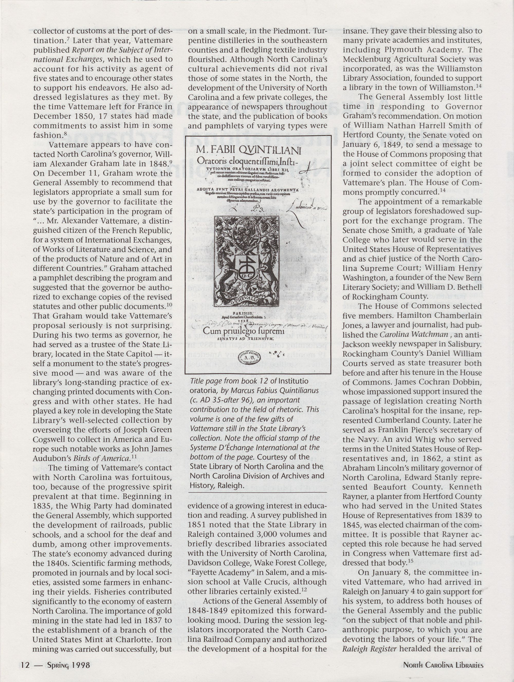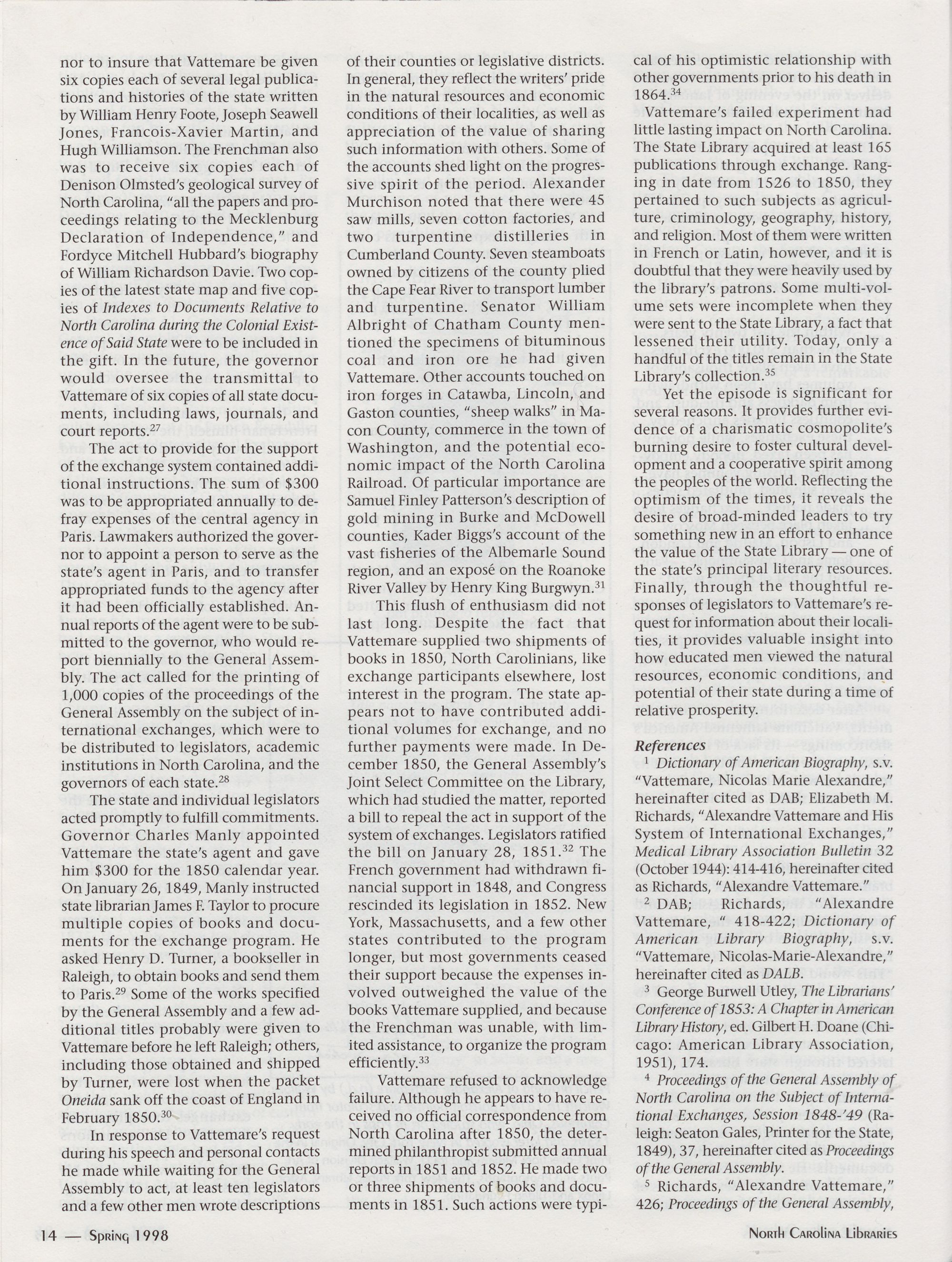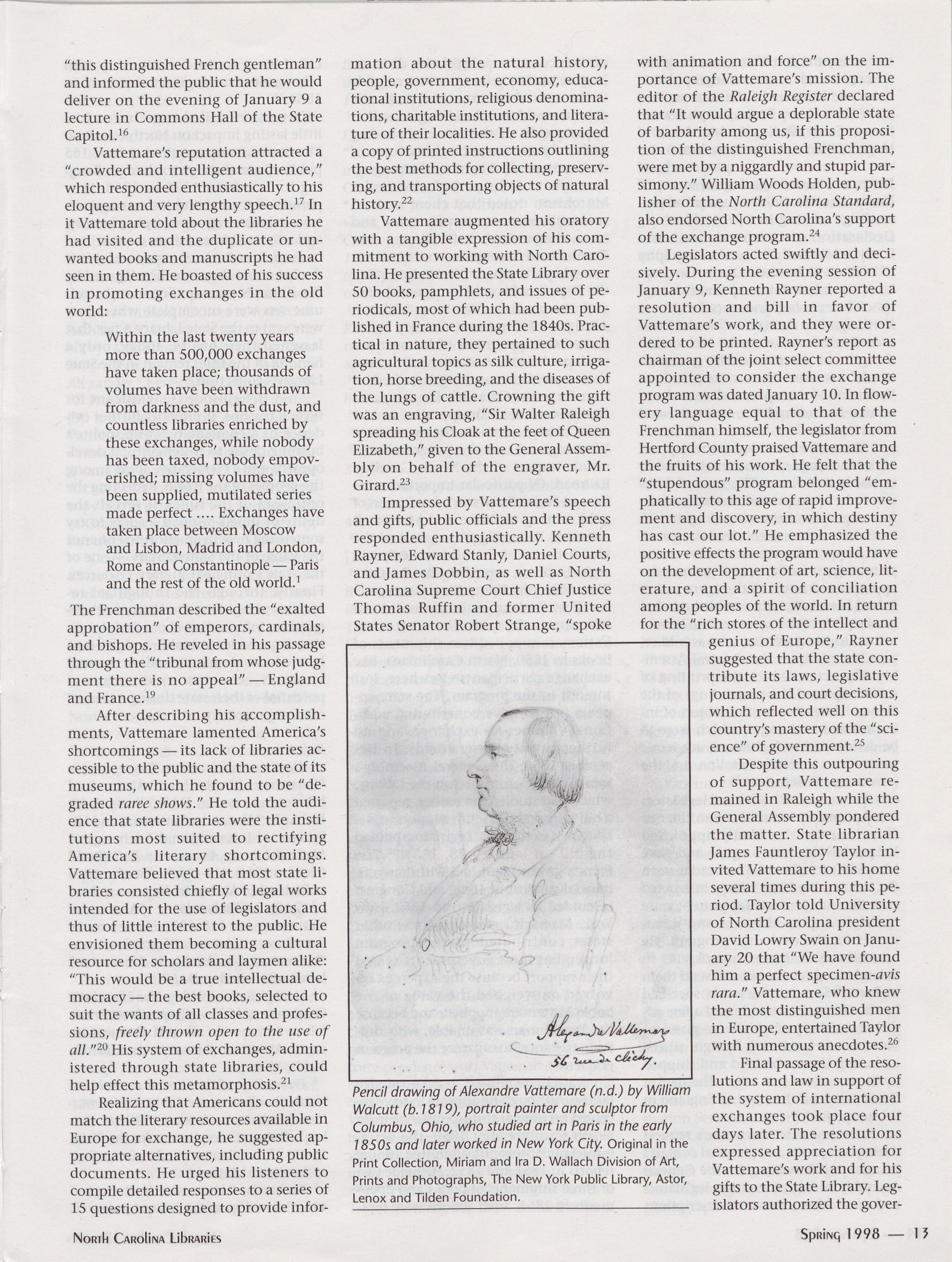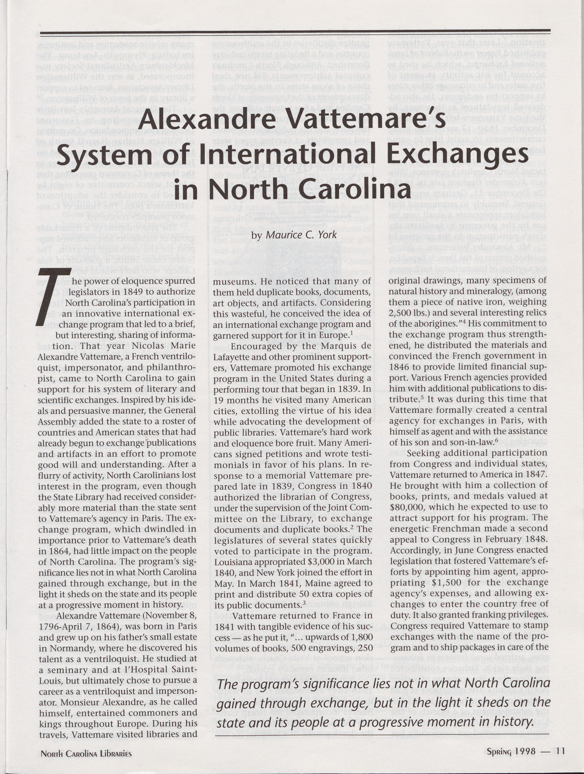 Alexandre VattemareTs System of International Exchanges in North Carolina,