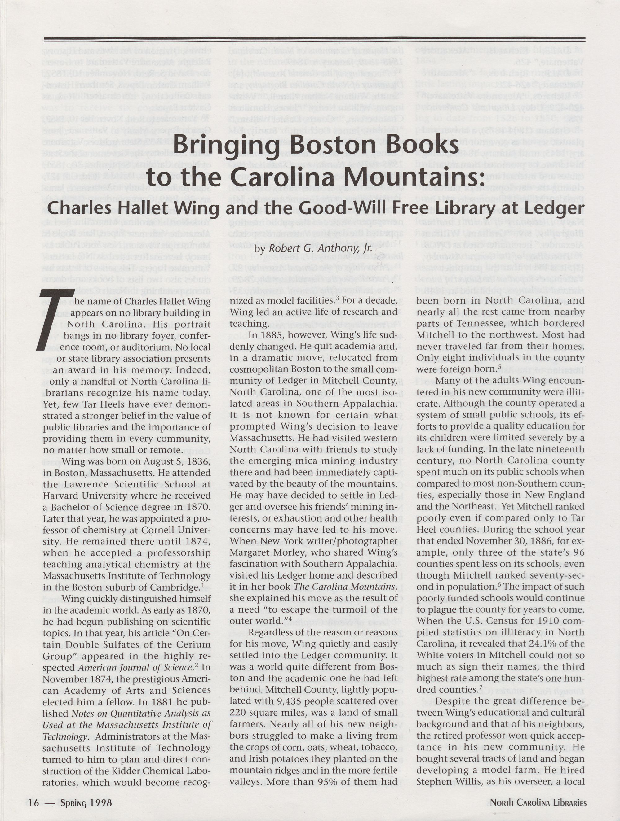 Bringing Boston Books to the Carolina Mountains: Charles Hallet Wing and