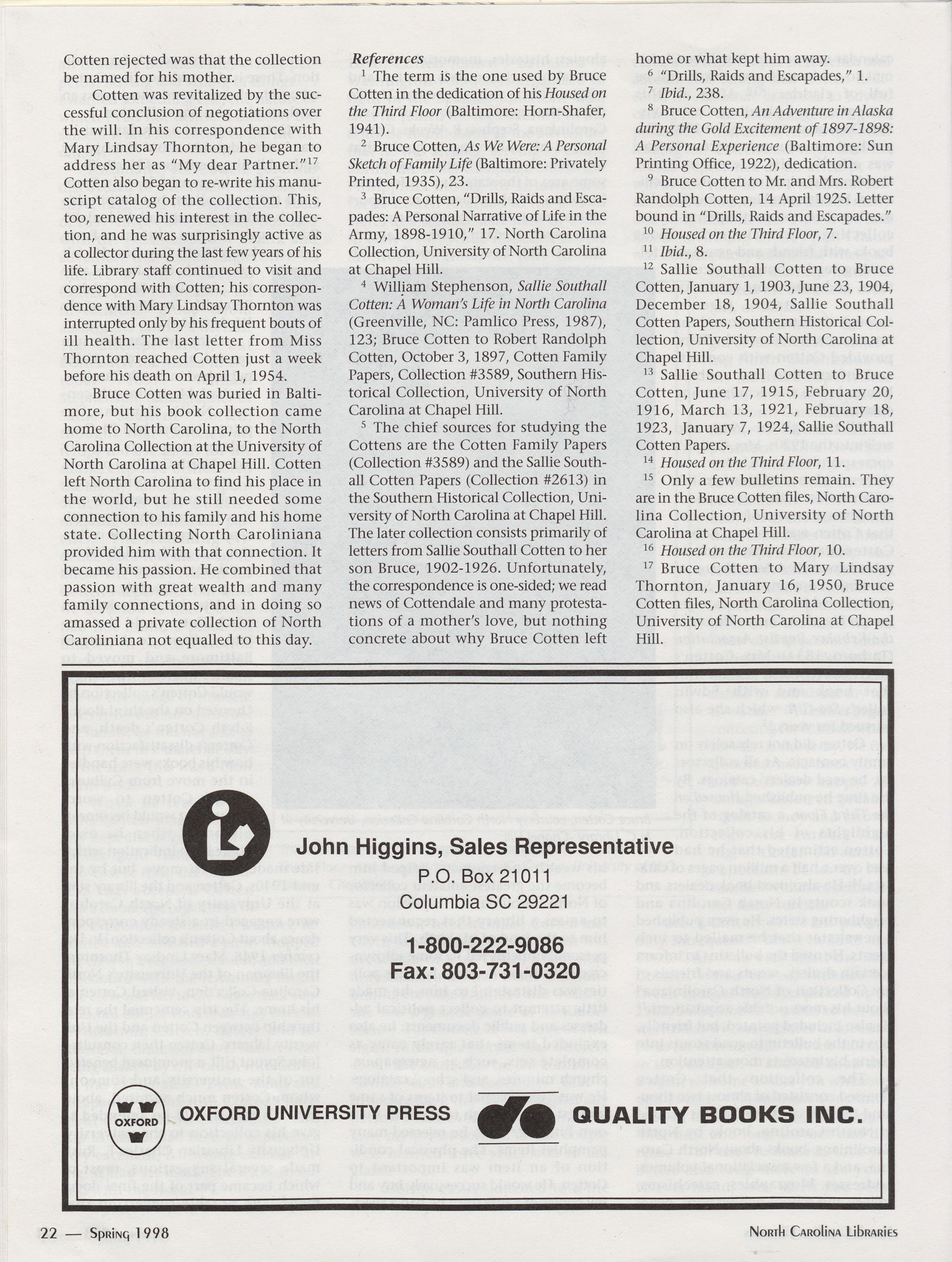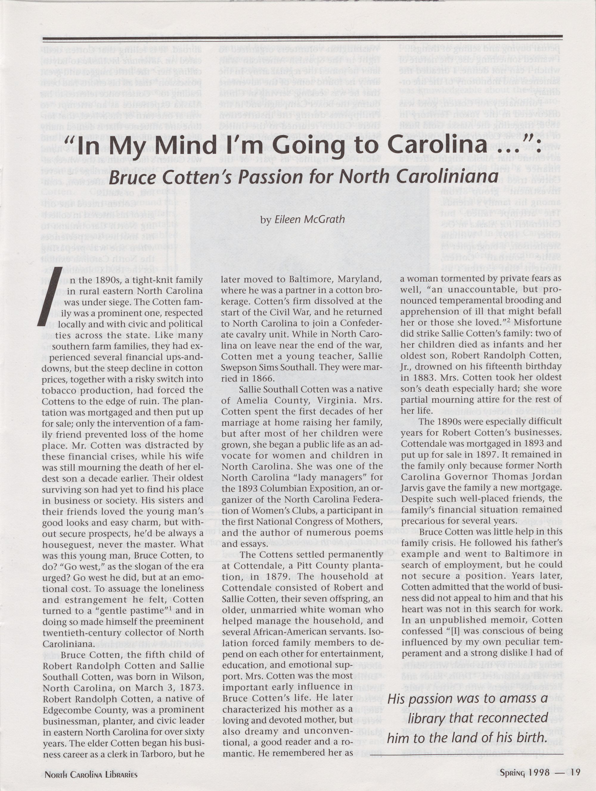 oIn My Mind ITm Going to Carolina...�: Bruce CottenTs Passion for North
