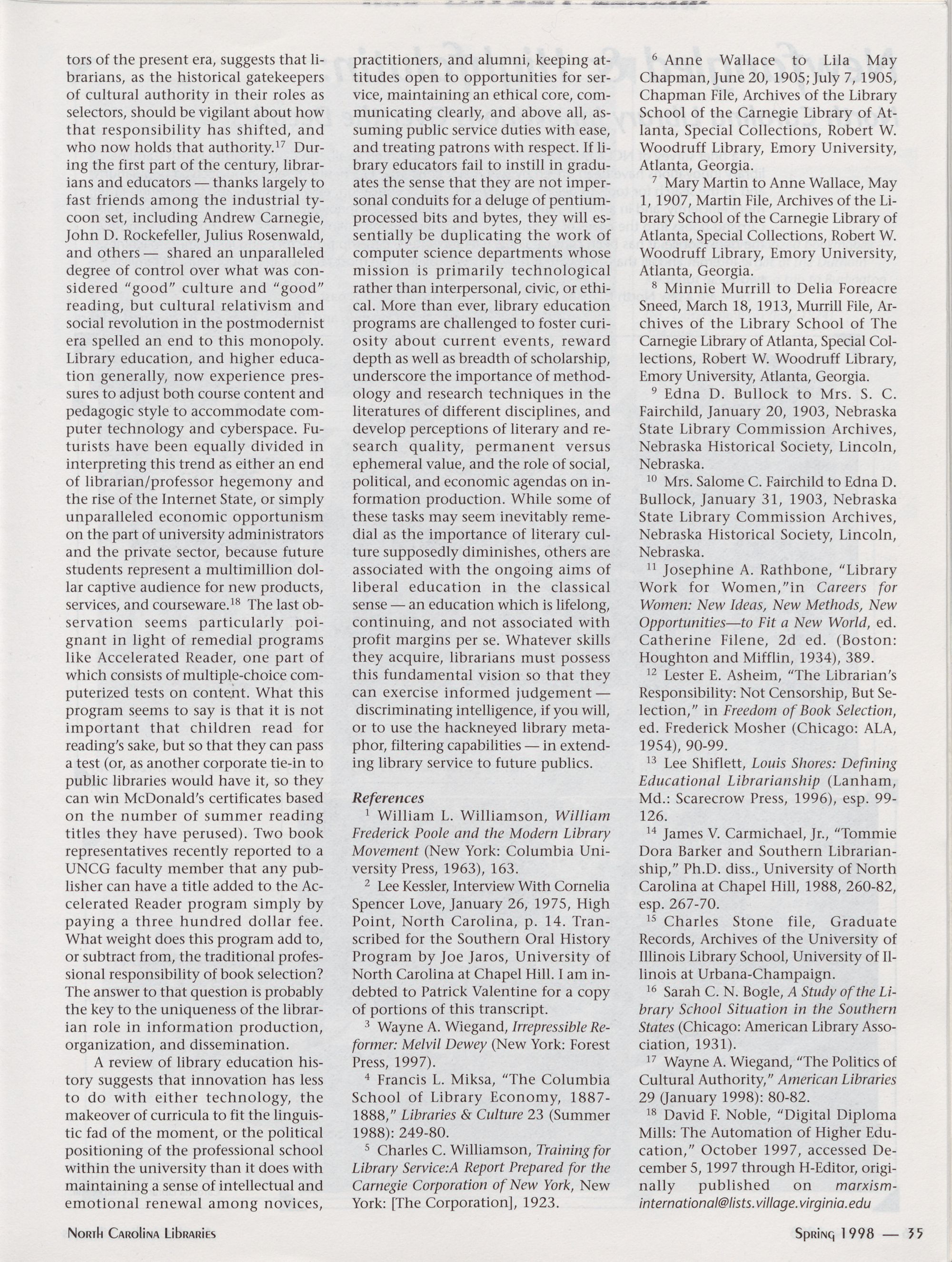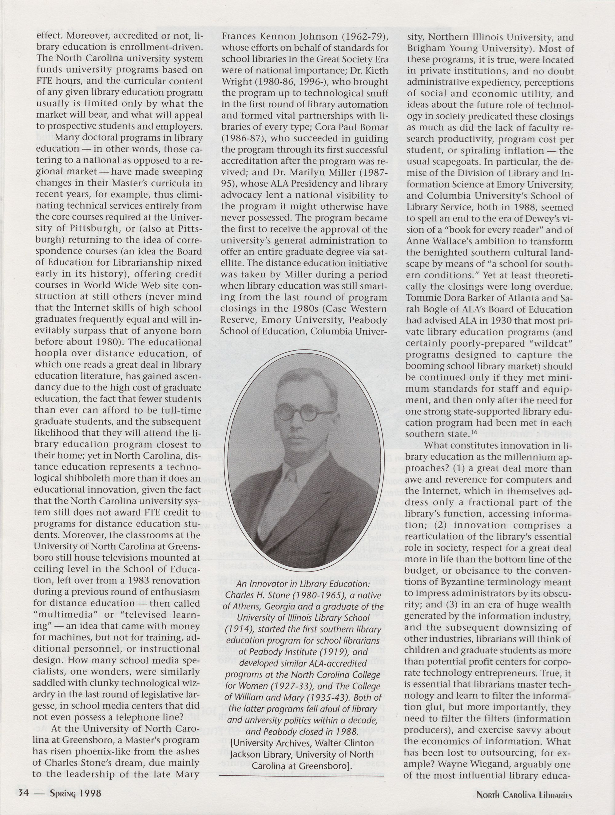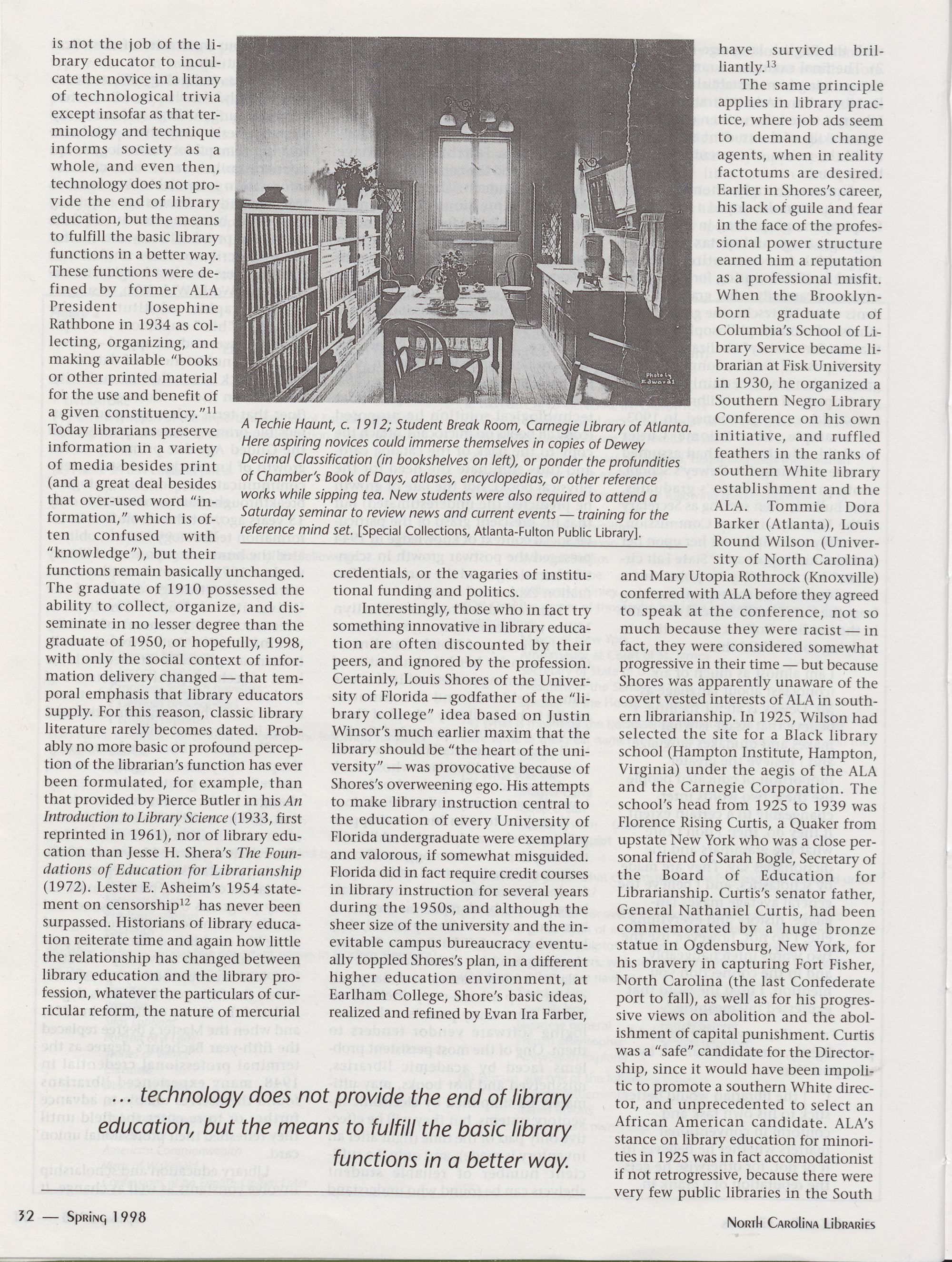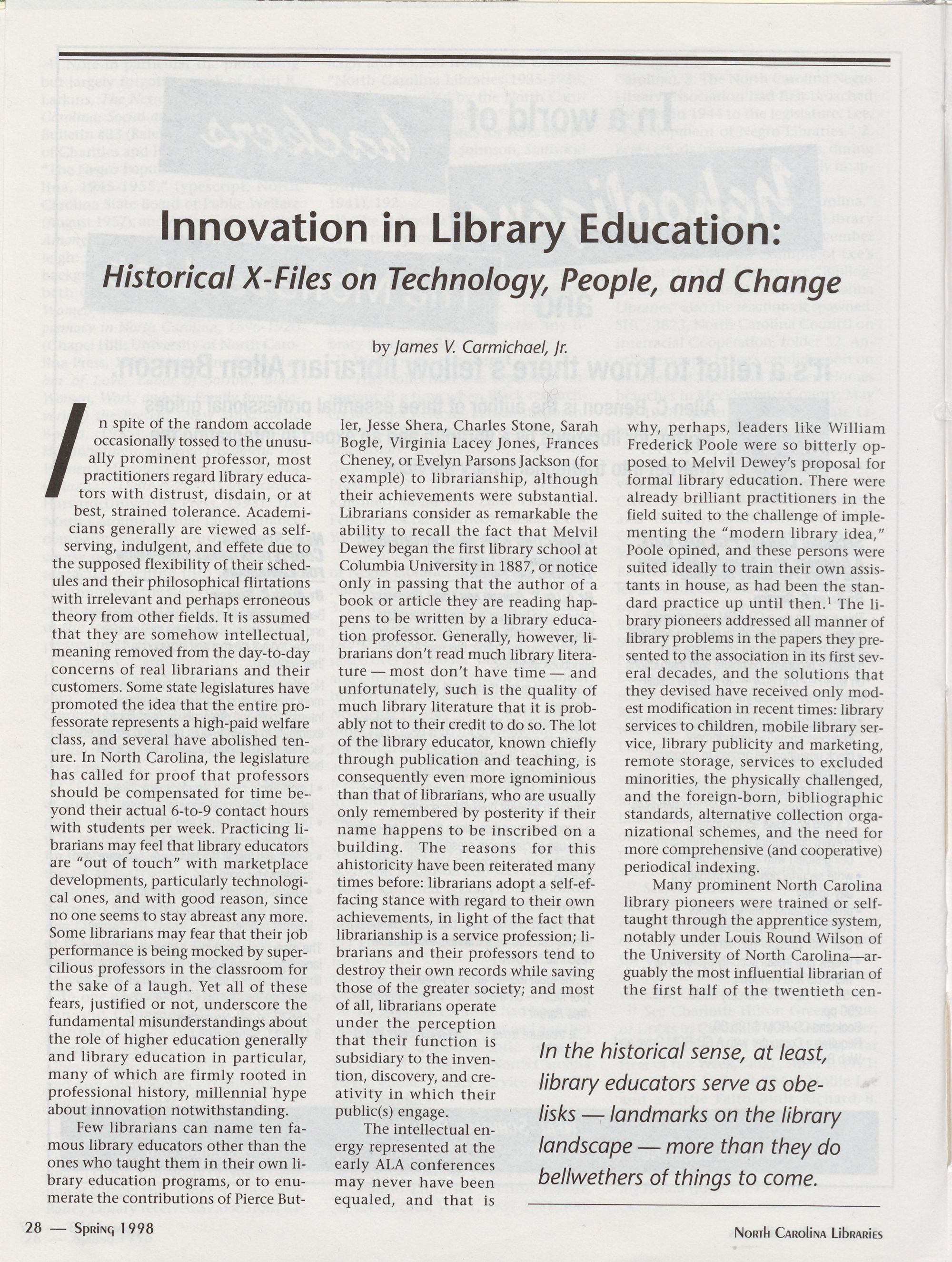 " North Carolina Library Innovators: Lessons Learned from the Past