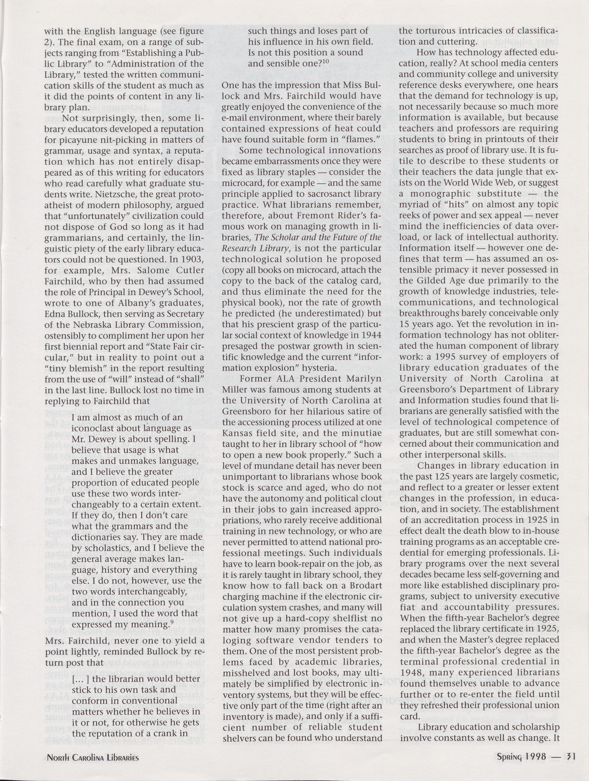 Innovation in Library Education: Historical X-Files on Technology, People,