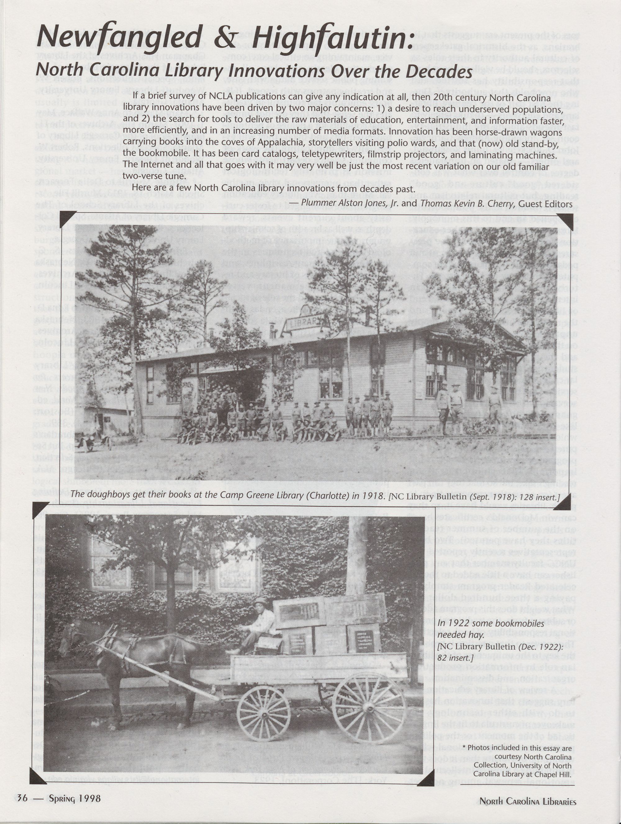 Newfangled & Highfalutin: North Carolina Library Innovations Over the