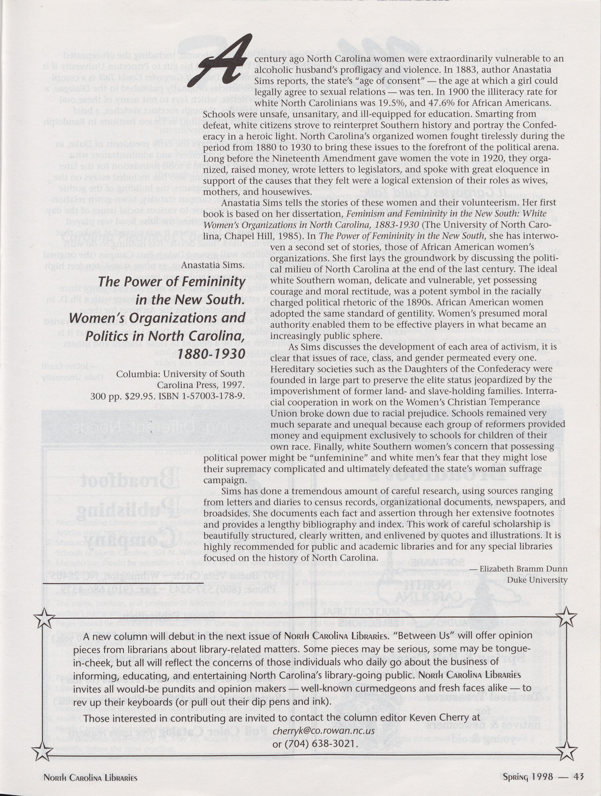 Unsolicited articles dealing with the above themes or any issue of interest to North Carolina