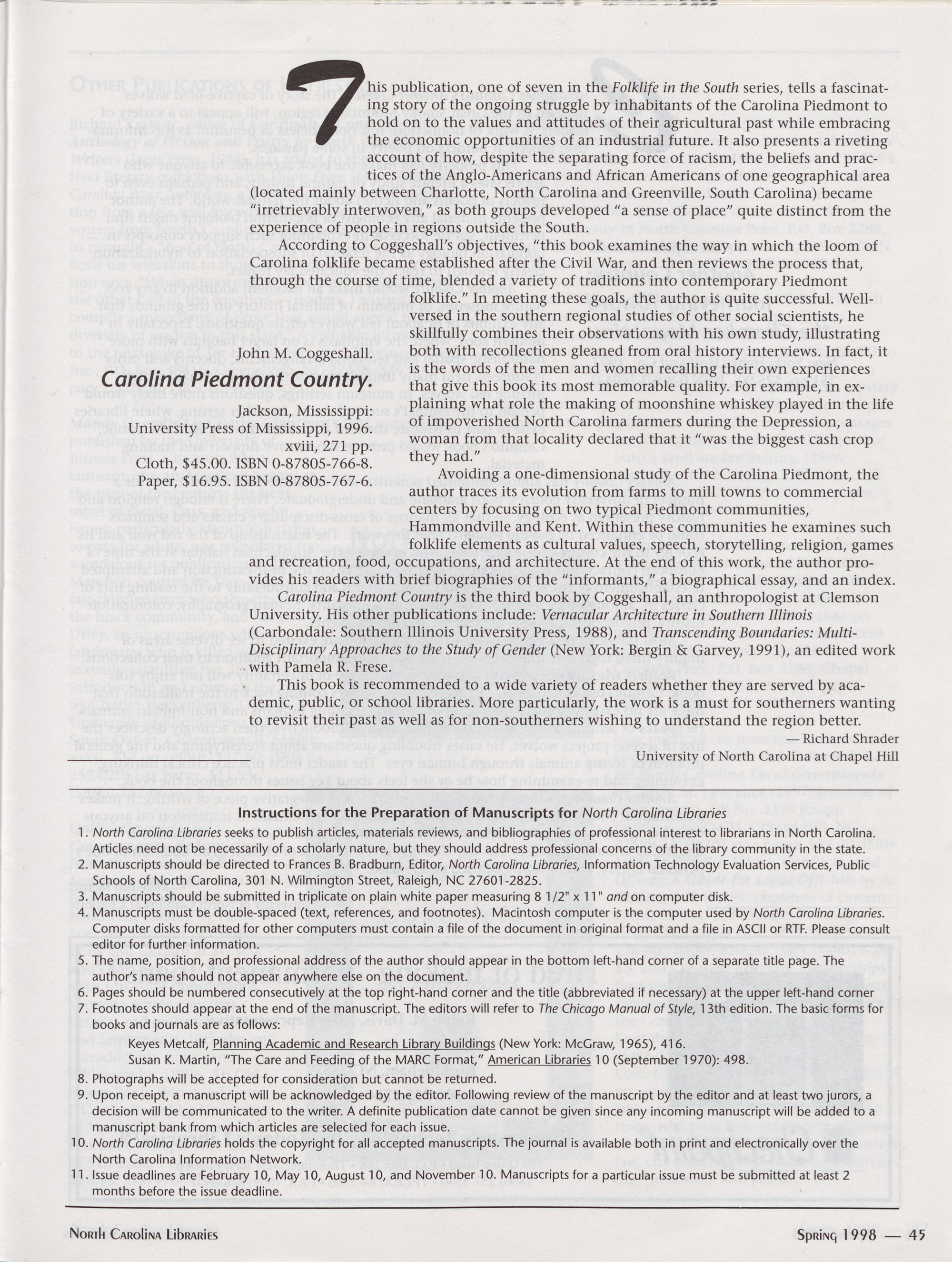 librarians are welcomed. Please contact the editor for manuscript guidelines and deadlines.