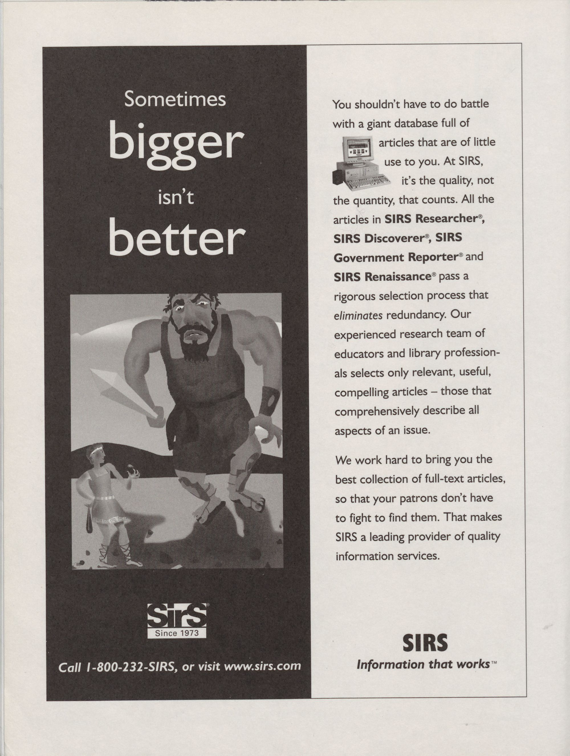 Call 1-800-232-SIRS, or visit www.sir's.com Information that works�"�
