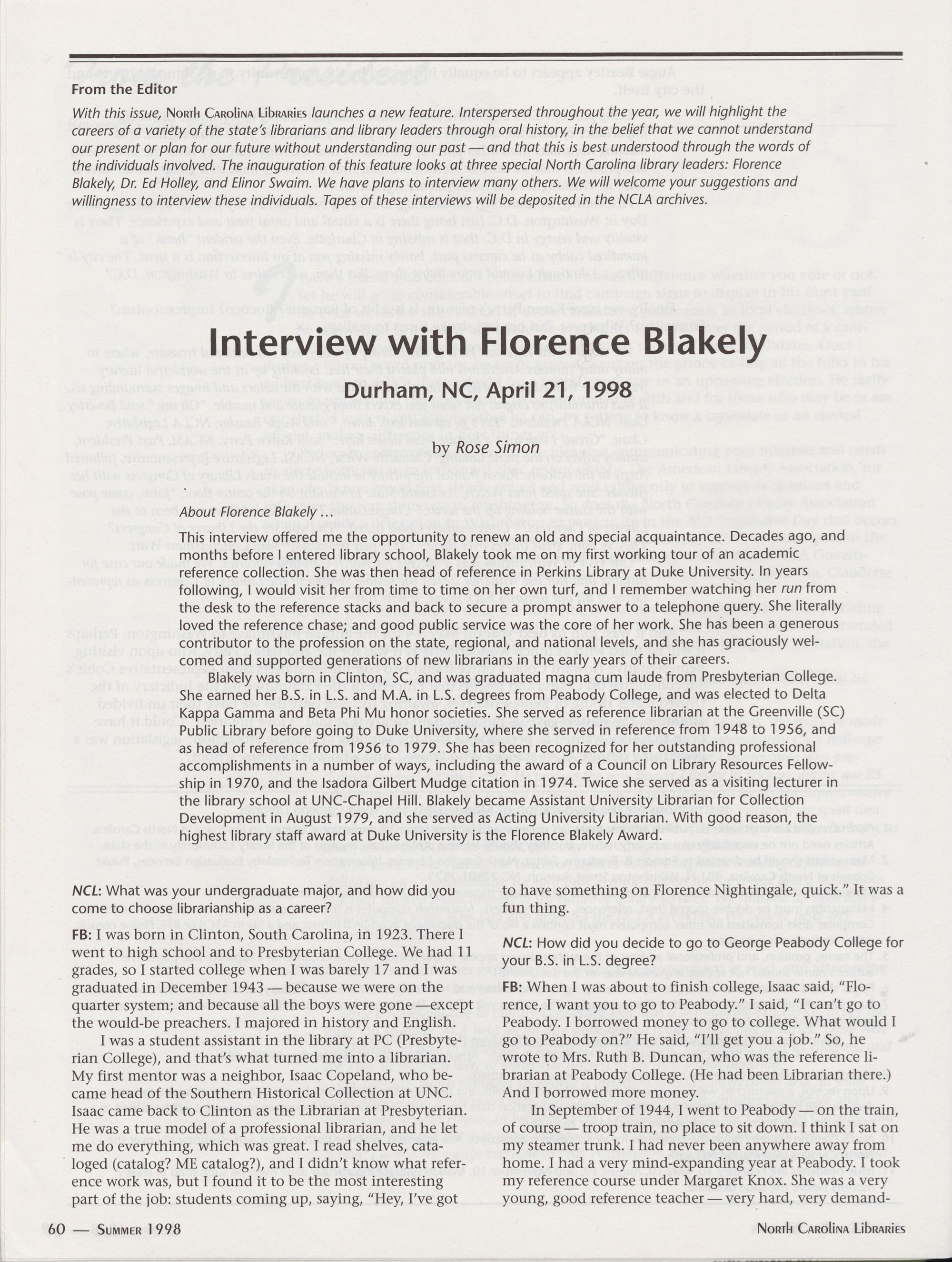 60 Interview with Florence Blakely, Rose Simon