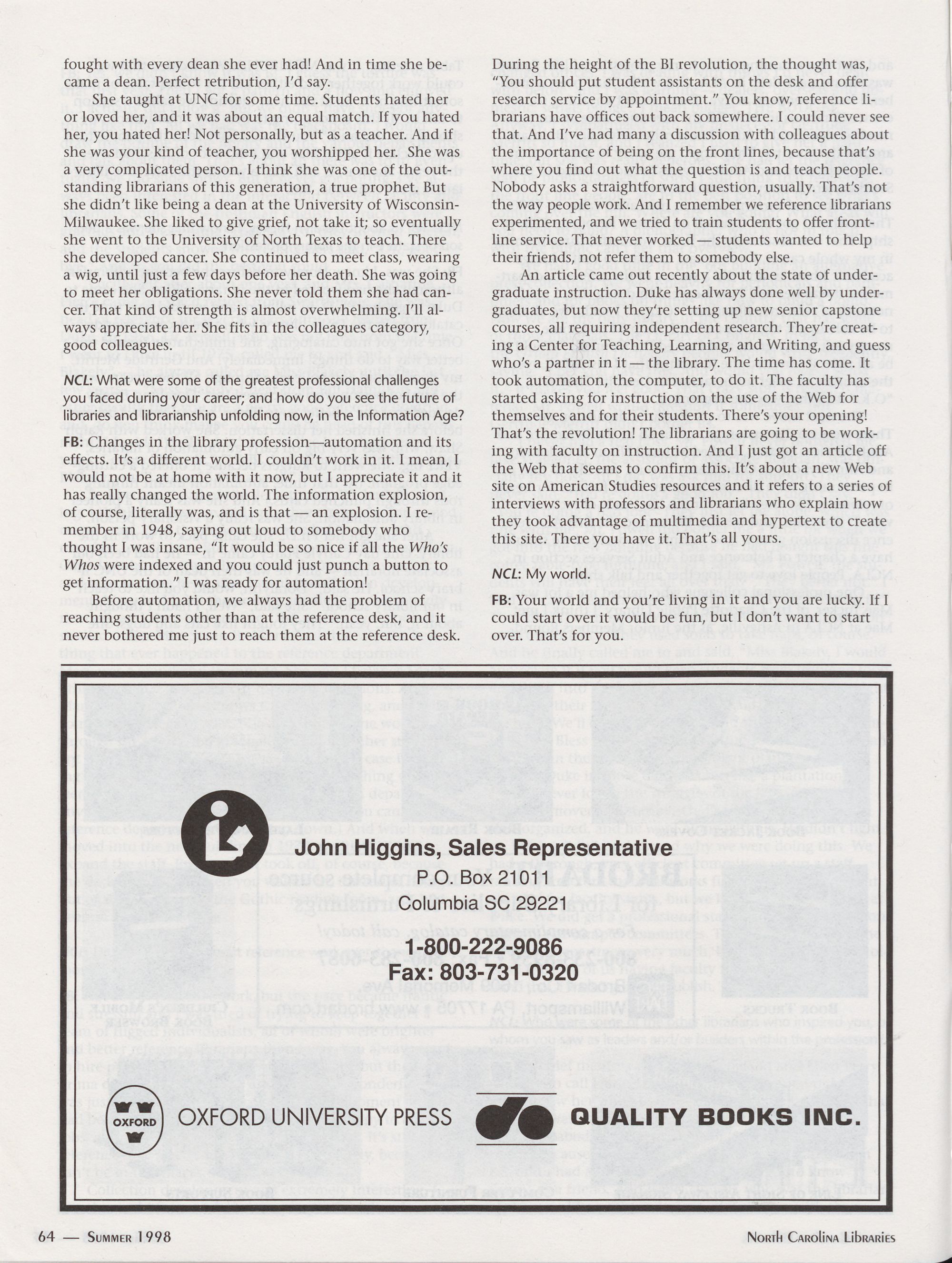 Quality Books, 64;