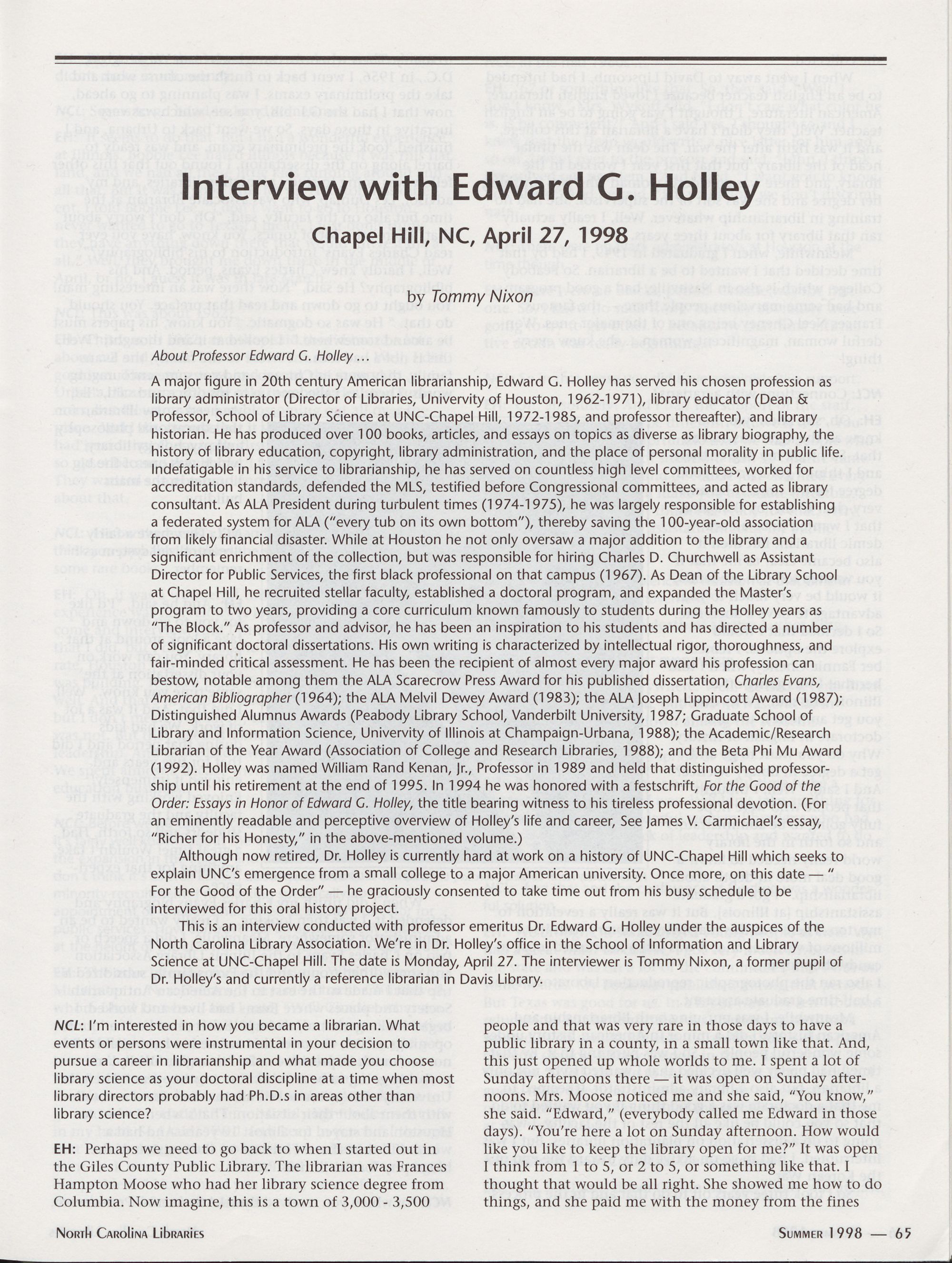 65 _ Interview with Edward G. Holley, Tommy Nixon