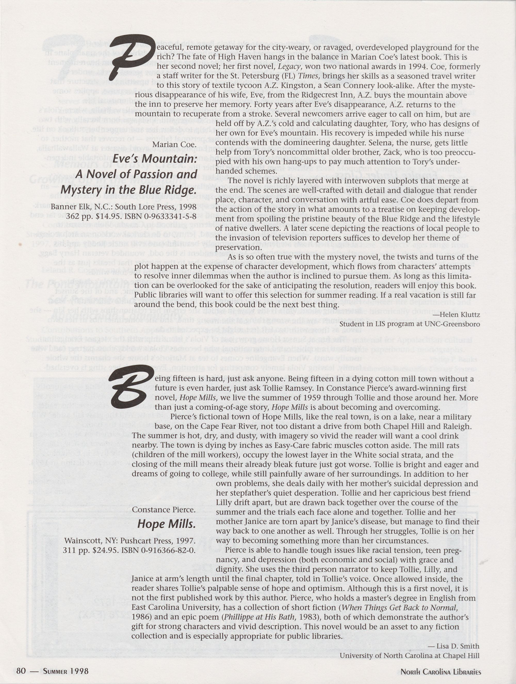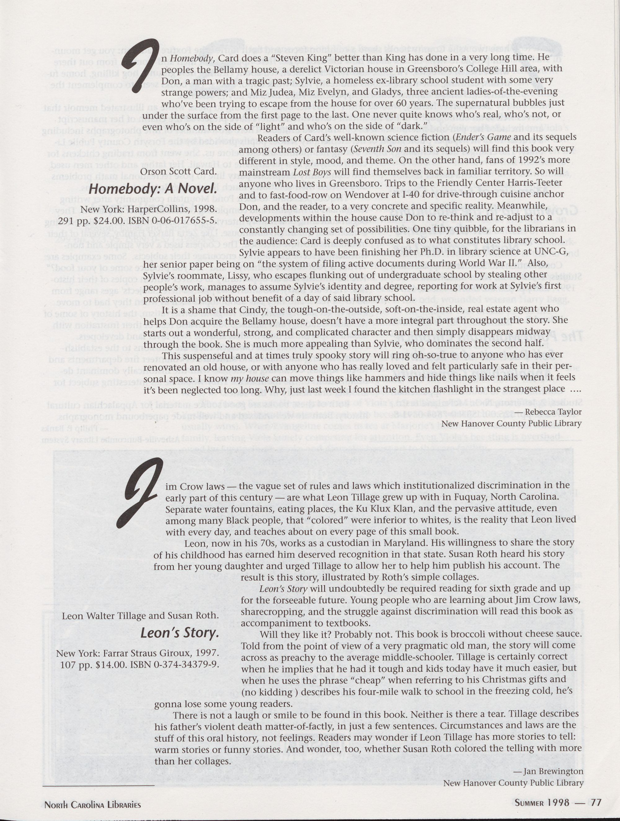 Summer 1999 North Carolina Writers