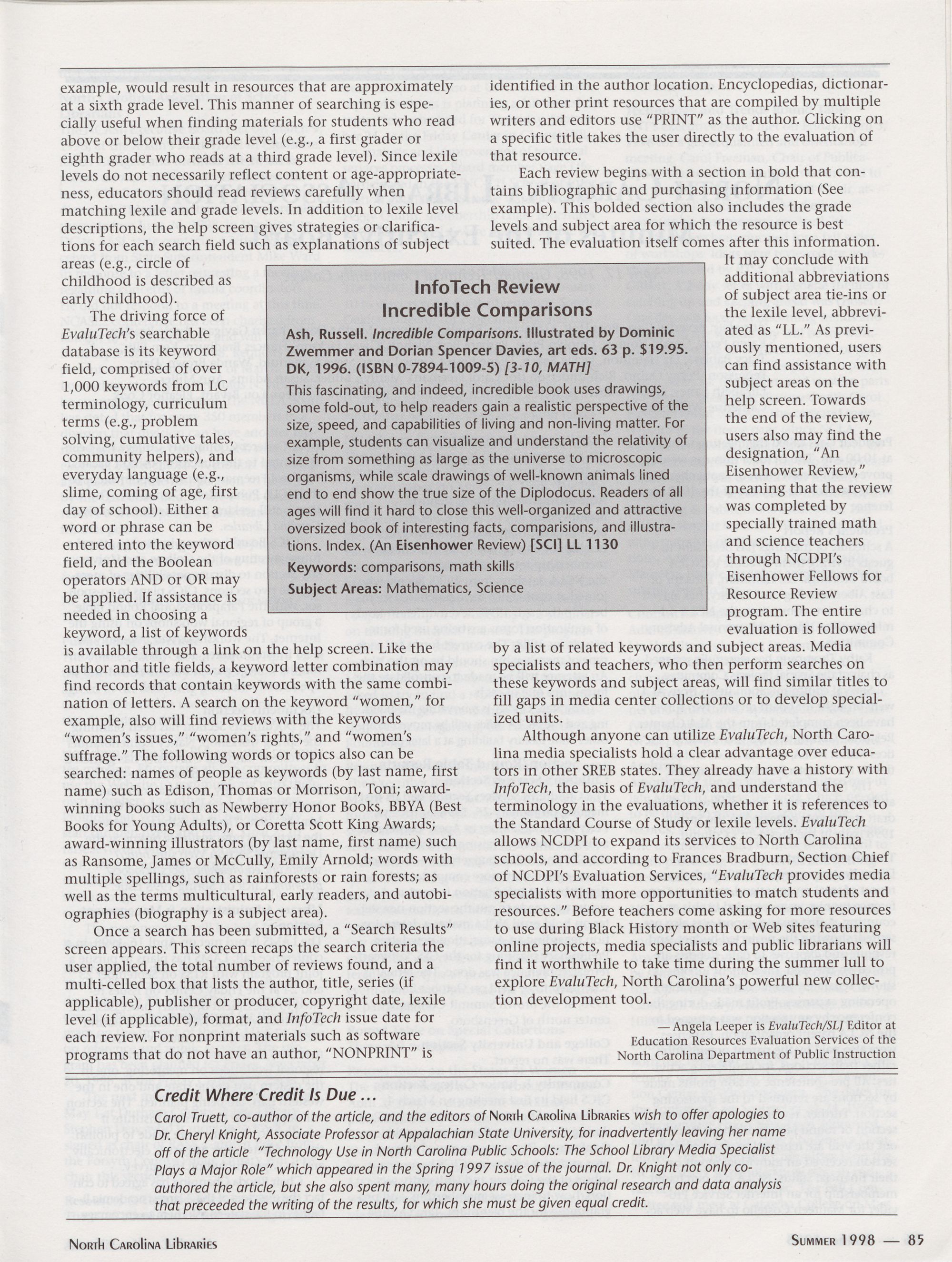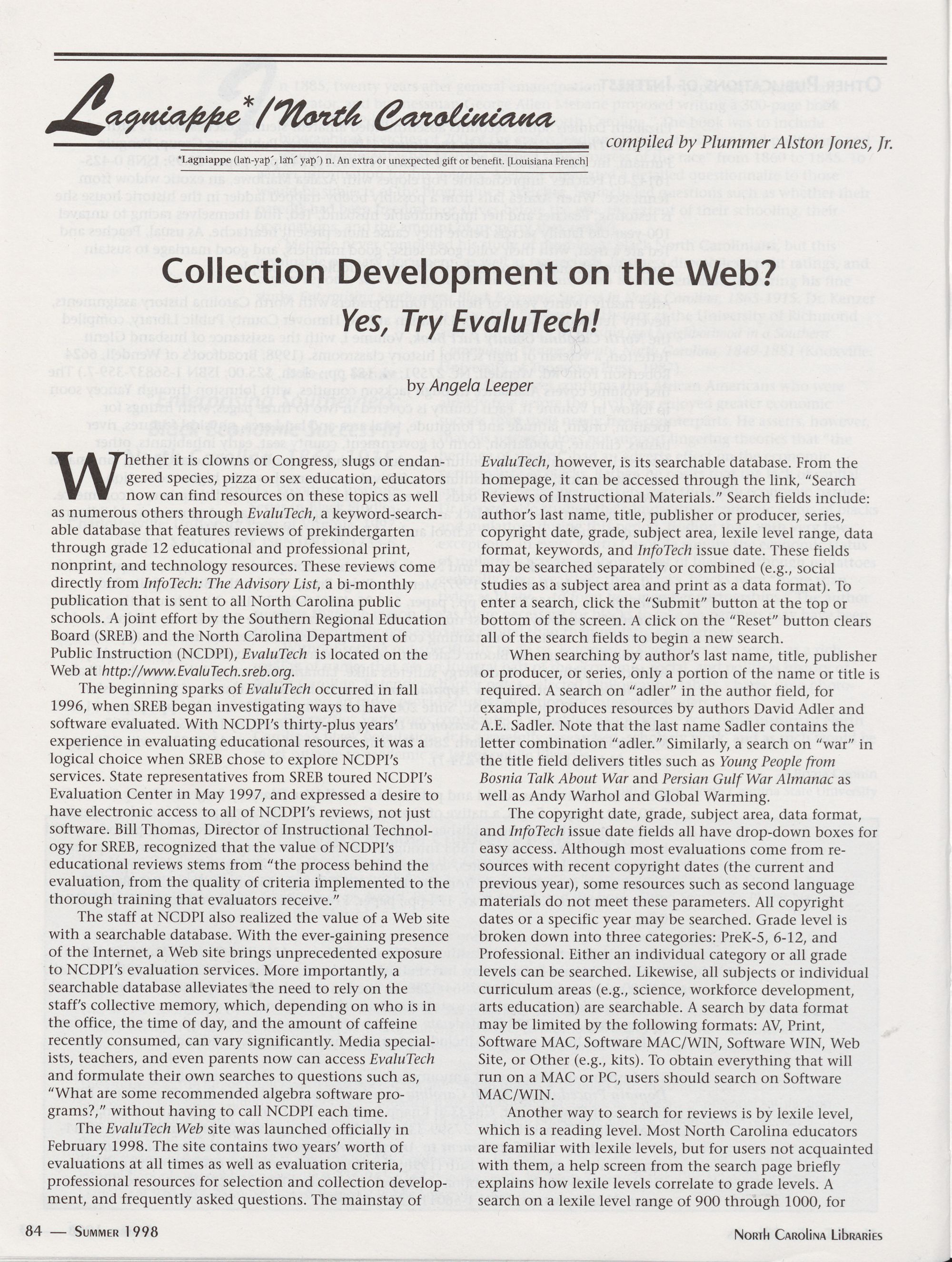 84 Lagniappe: Collection Development on the Web?: Yes, Try EvaluTech!,