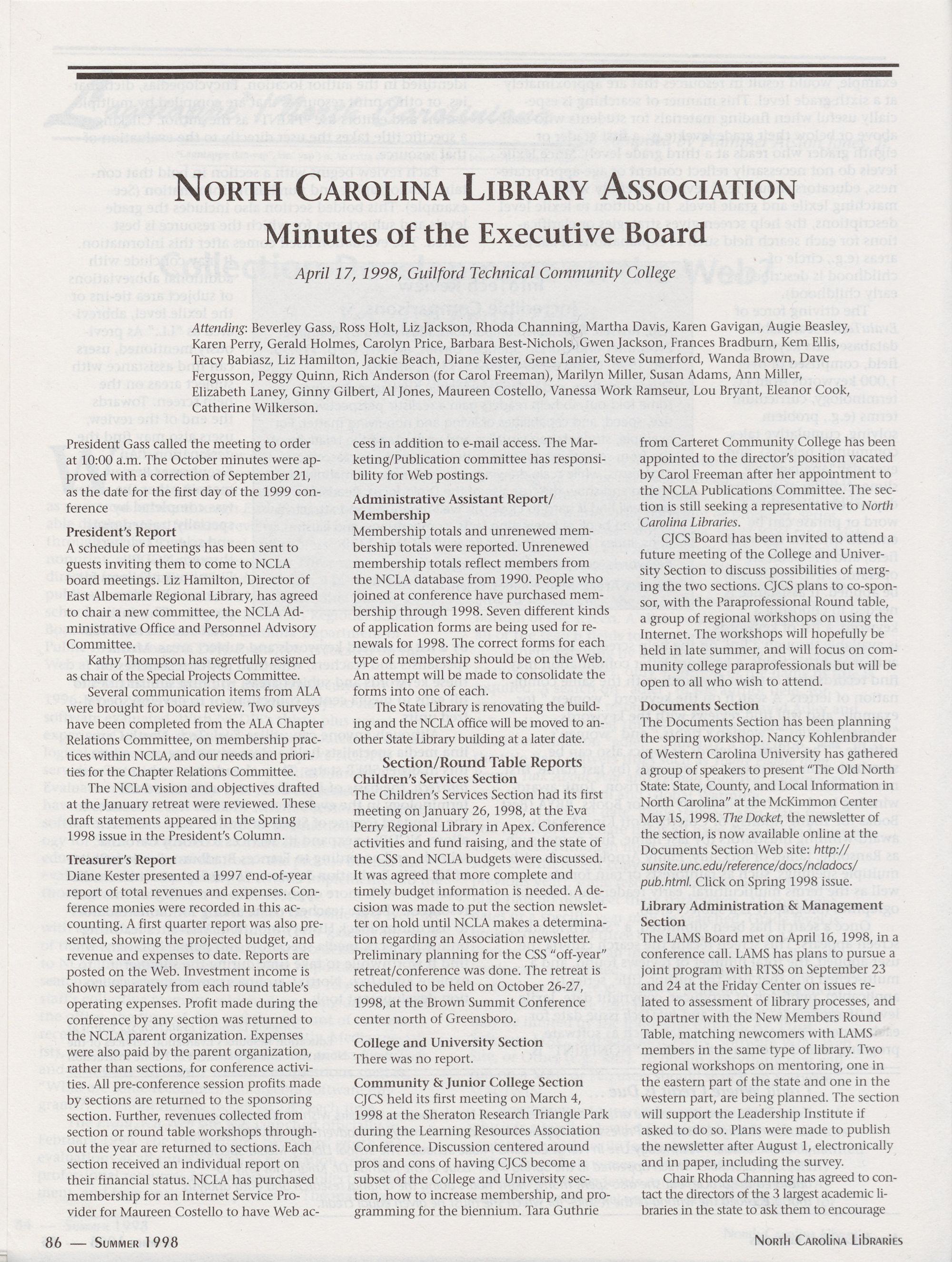 86 NCLA Minutes