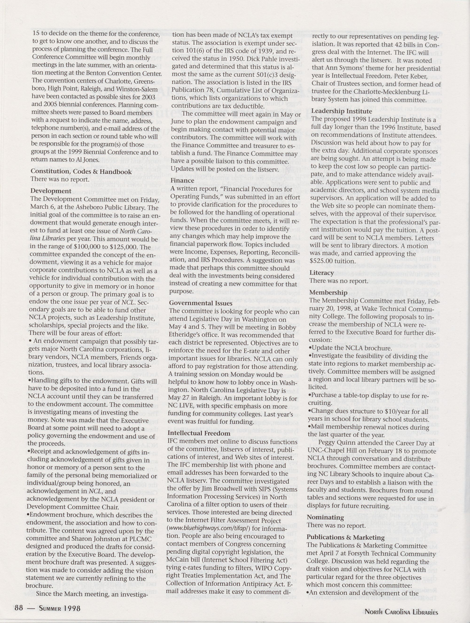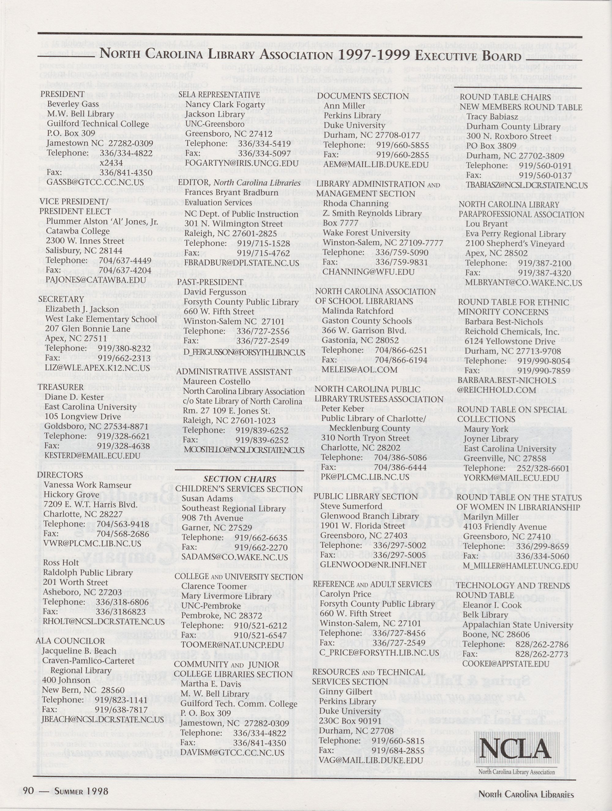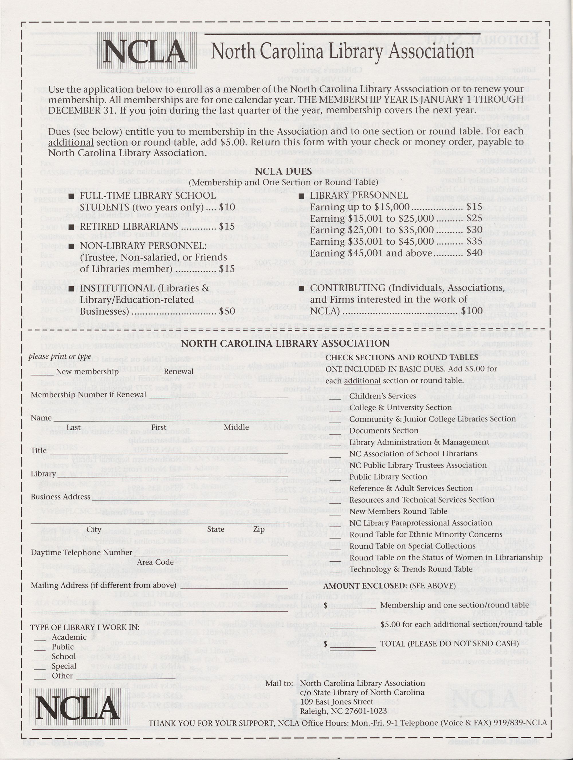 Carolina Library Association. Membership dues include a subscription to North Carolina