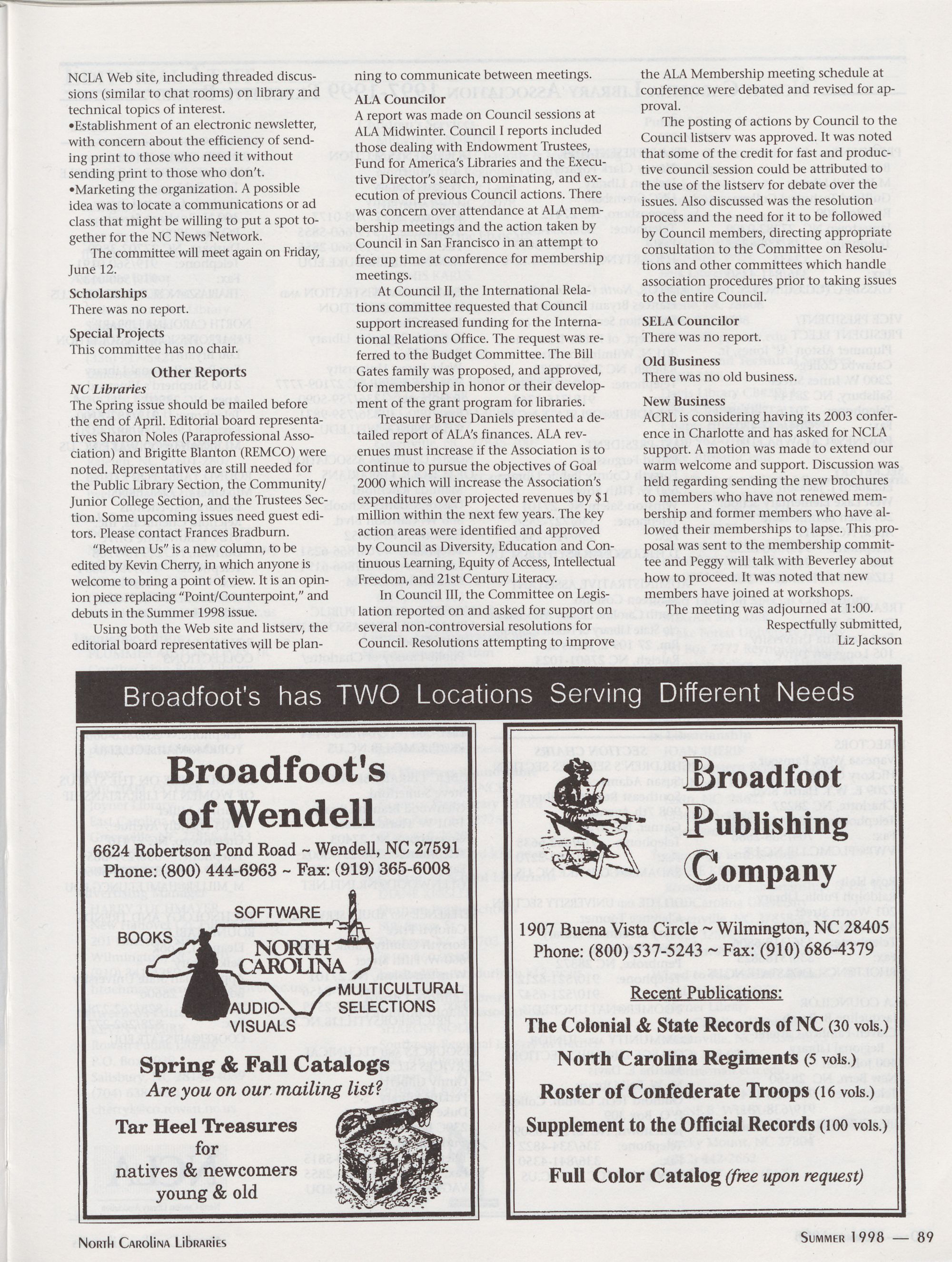 Advertisers: Broadfoot's, 89;