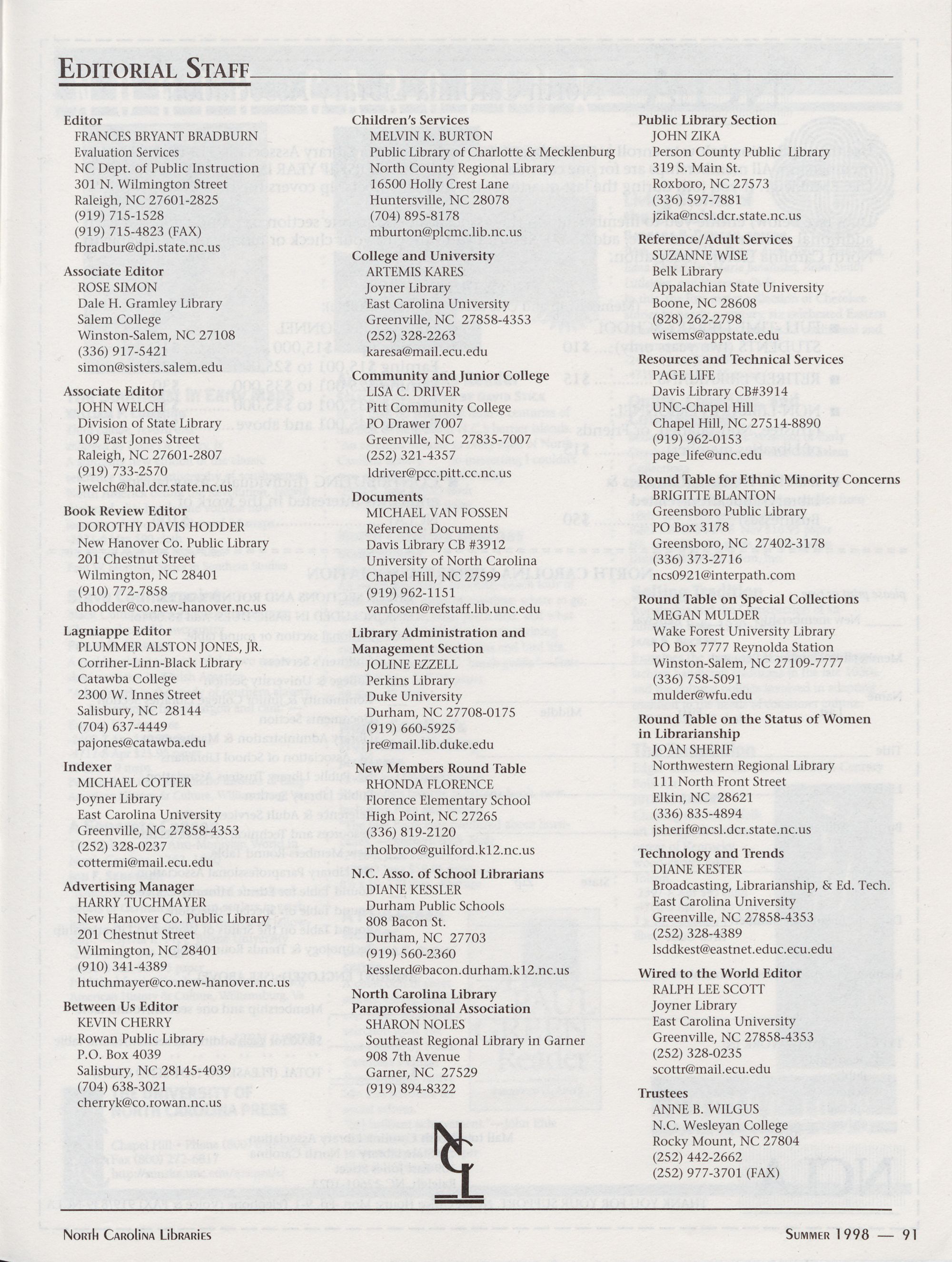 North Carolina Libraries, published four times a year, is the official publication of the North