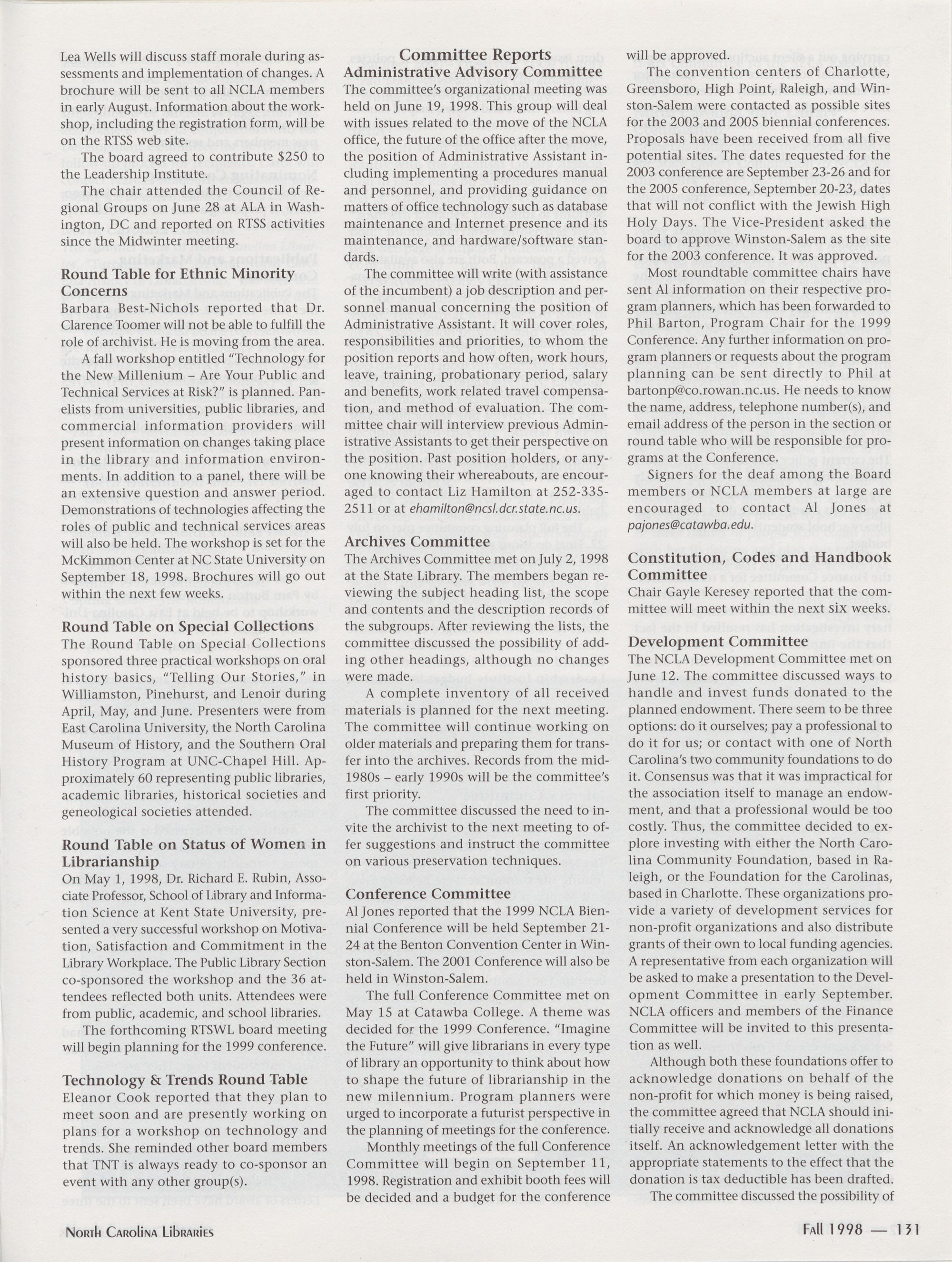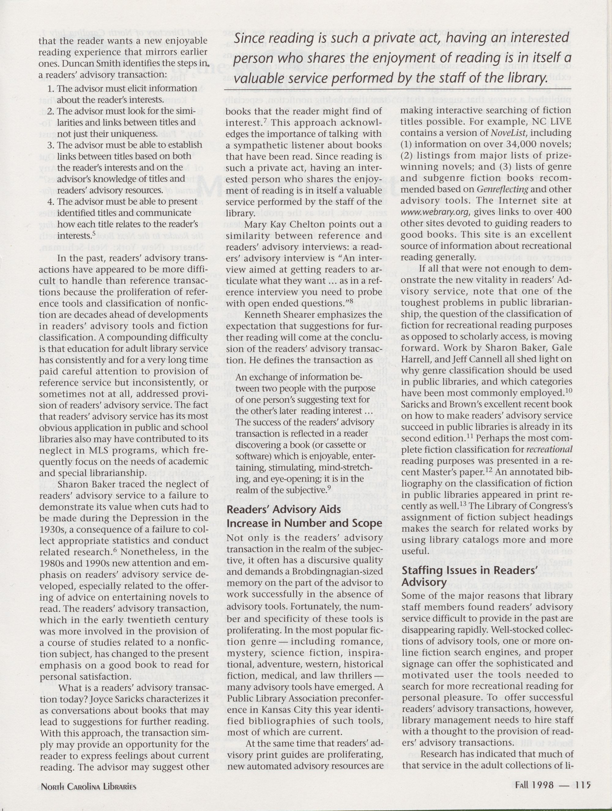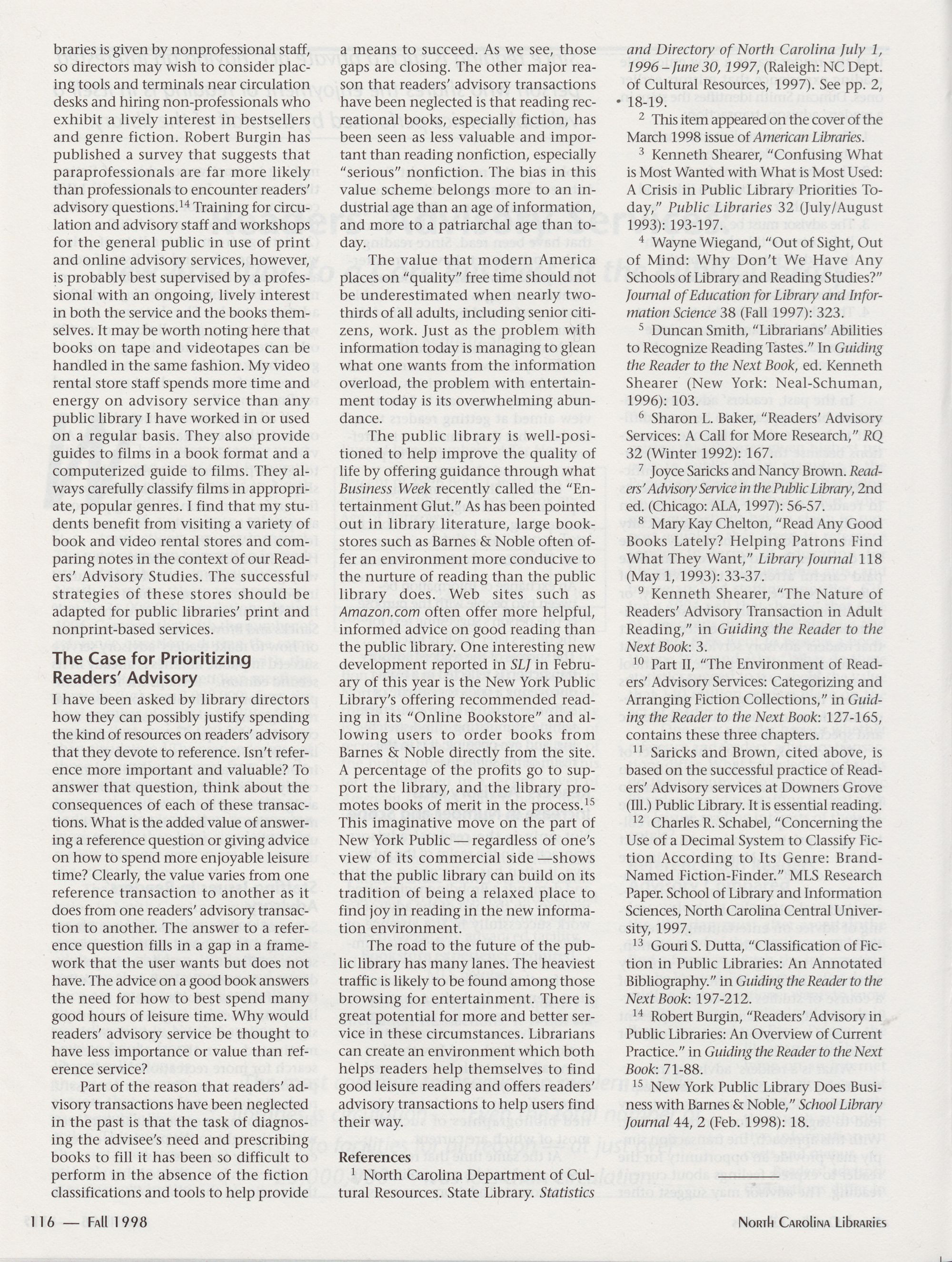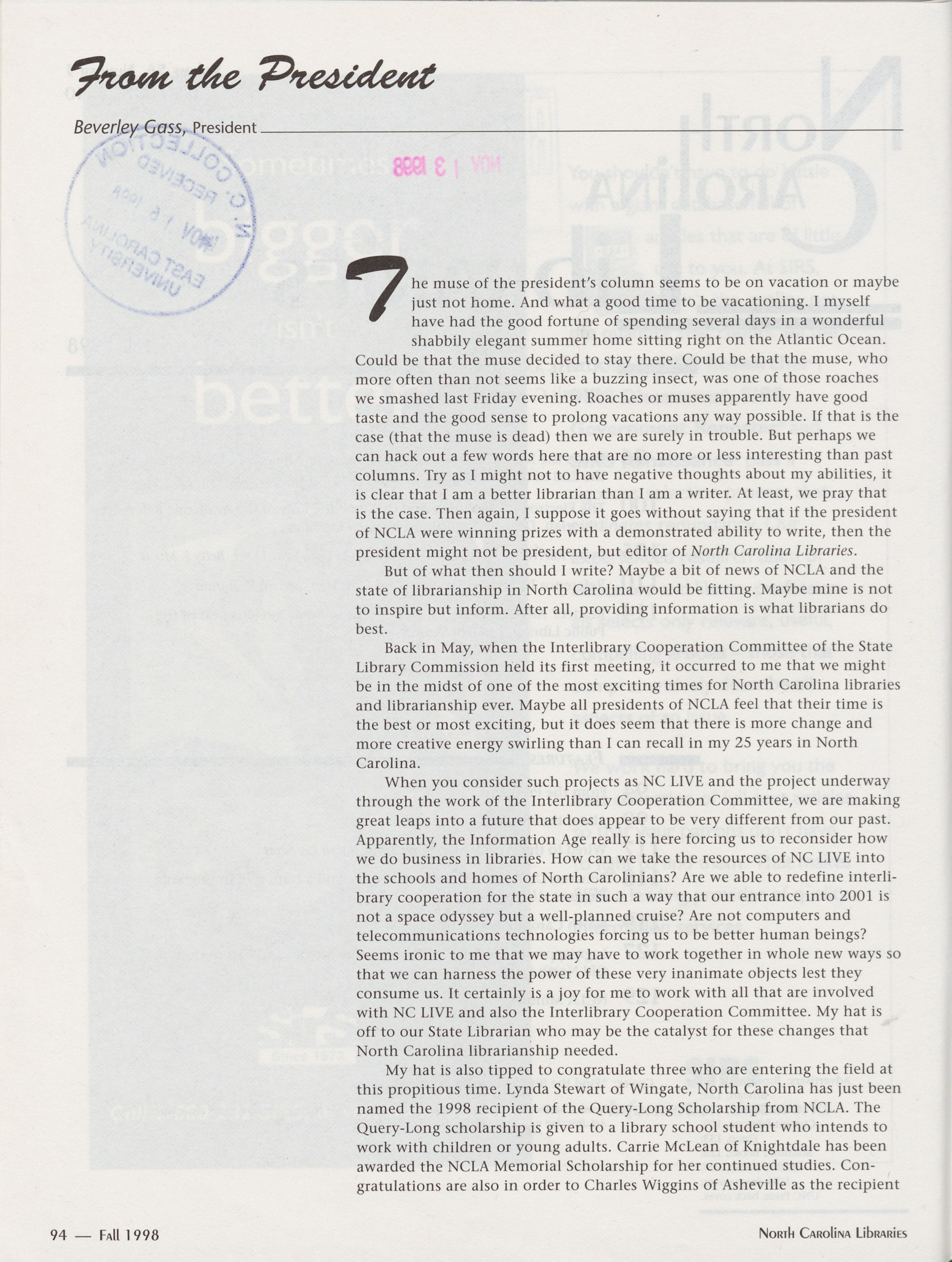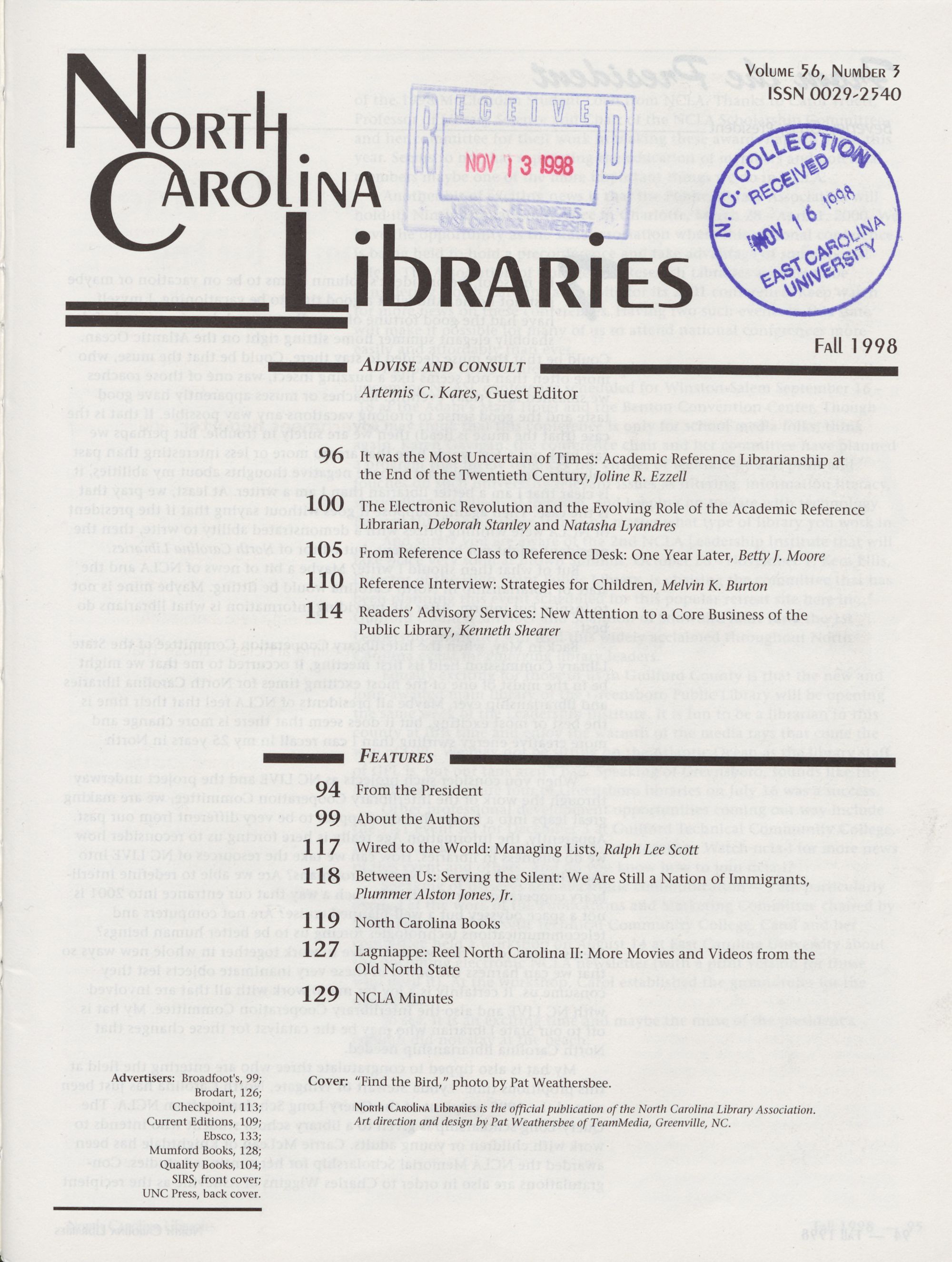 North Carolina Libraries, published four times a year, is the official publication of the North