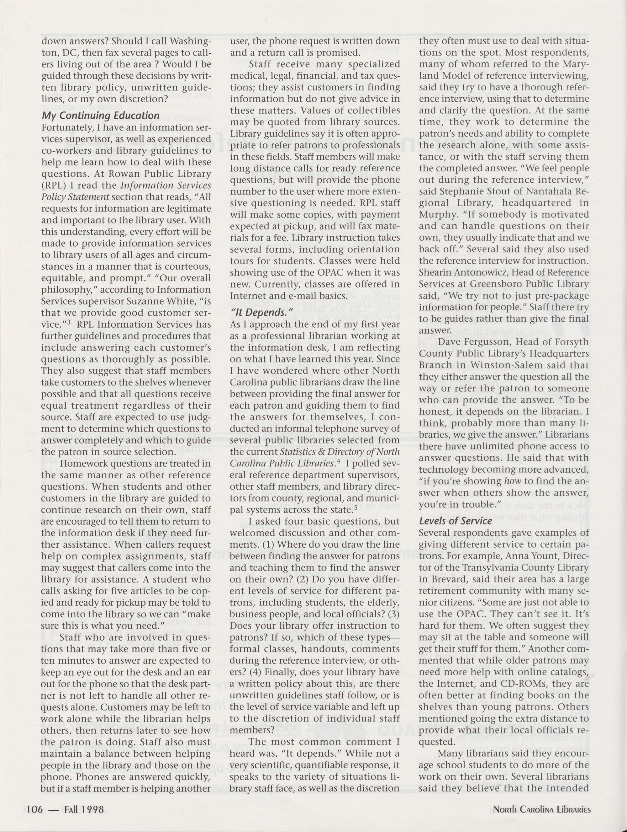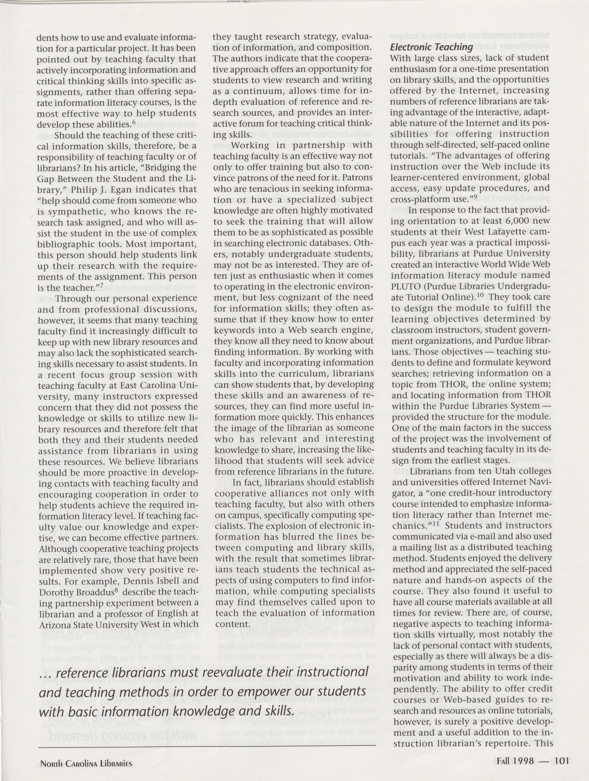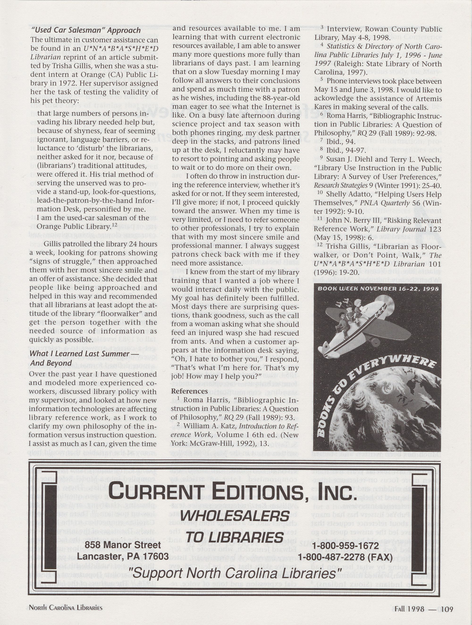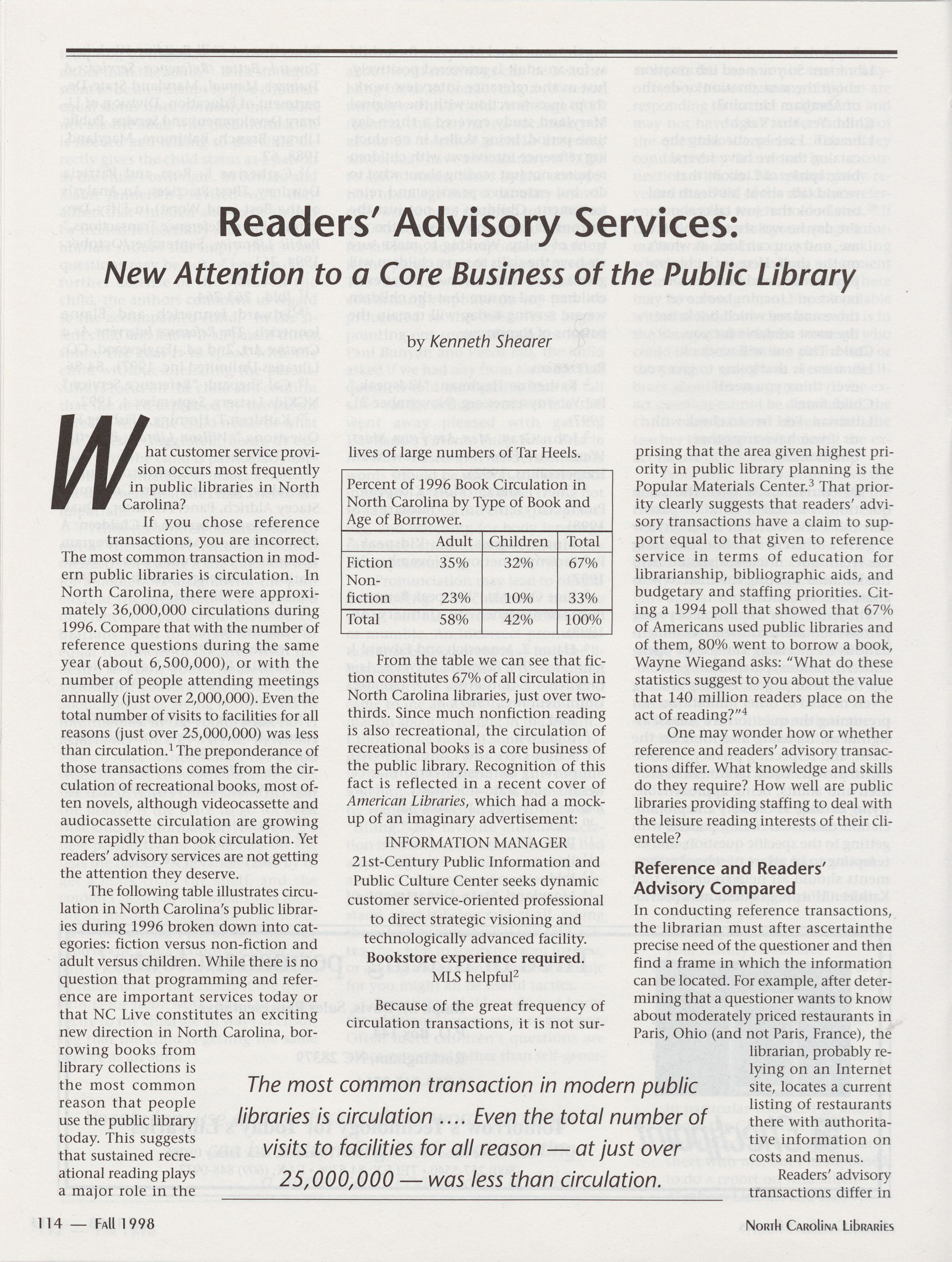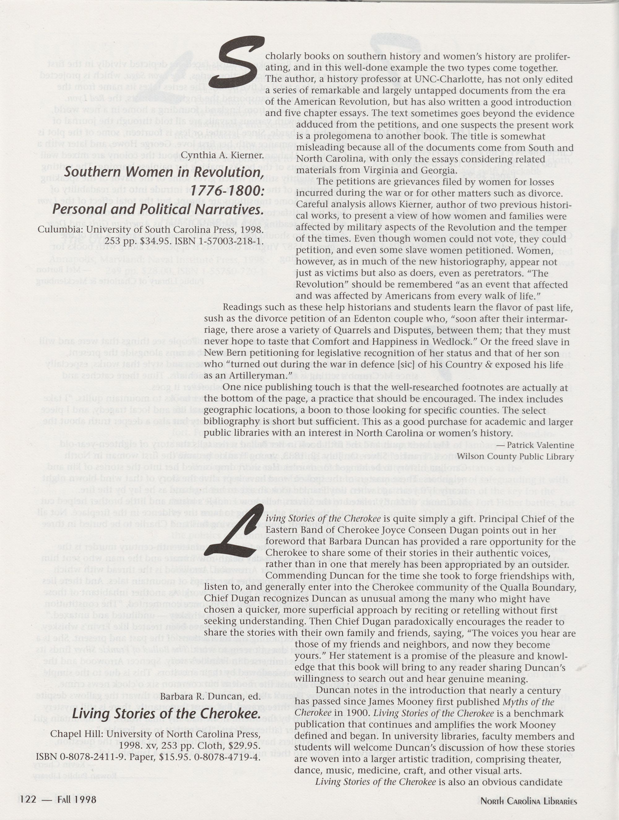 North Carolina Libraries, published four times a year, is the official publication of the North