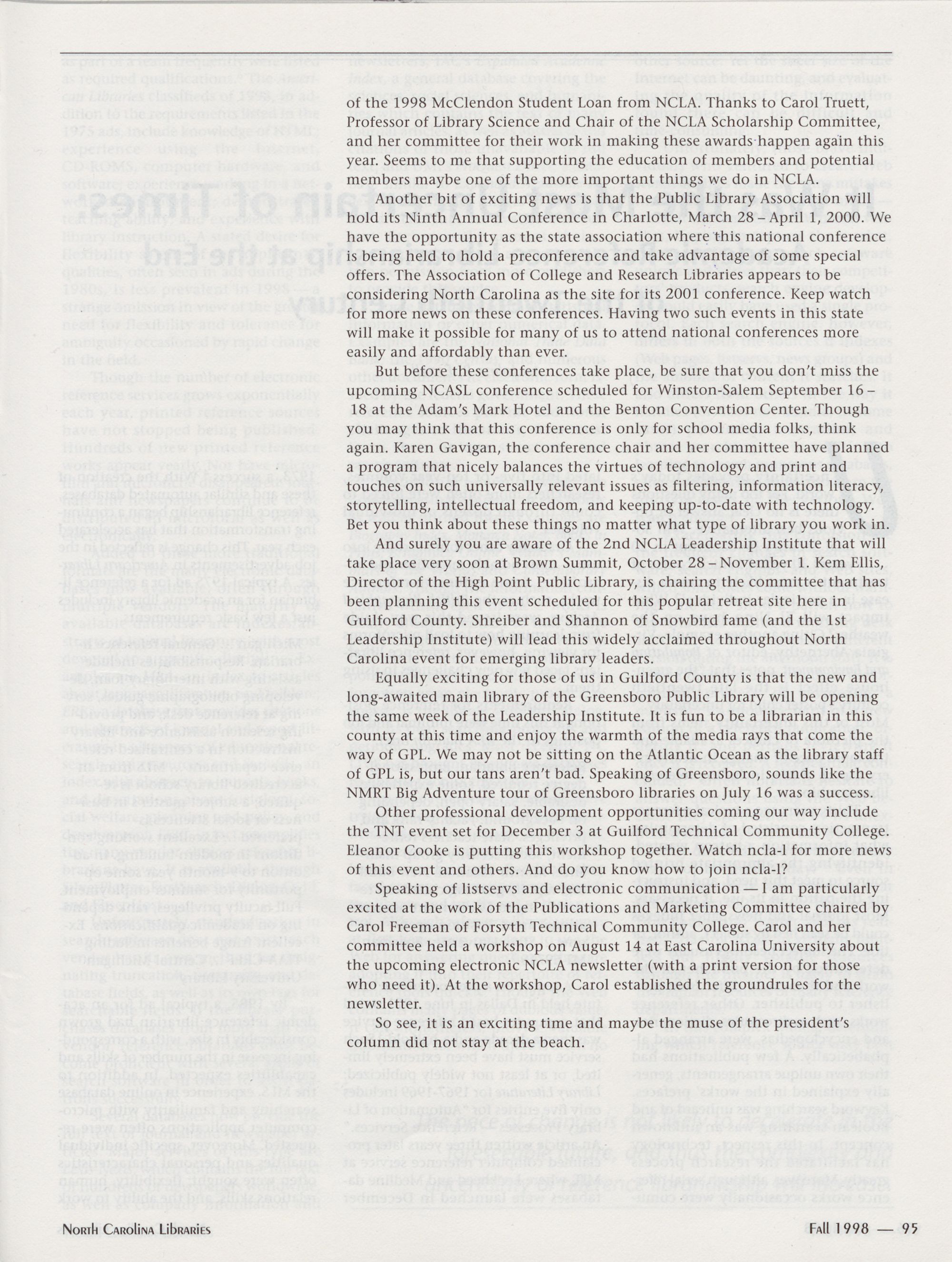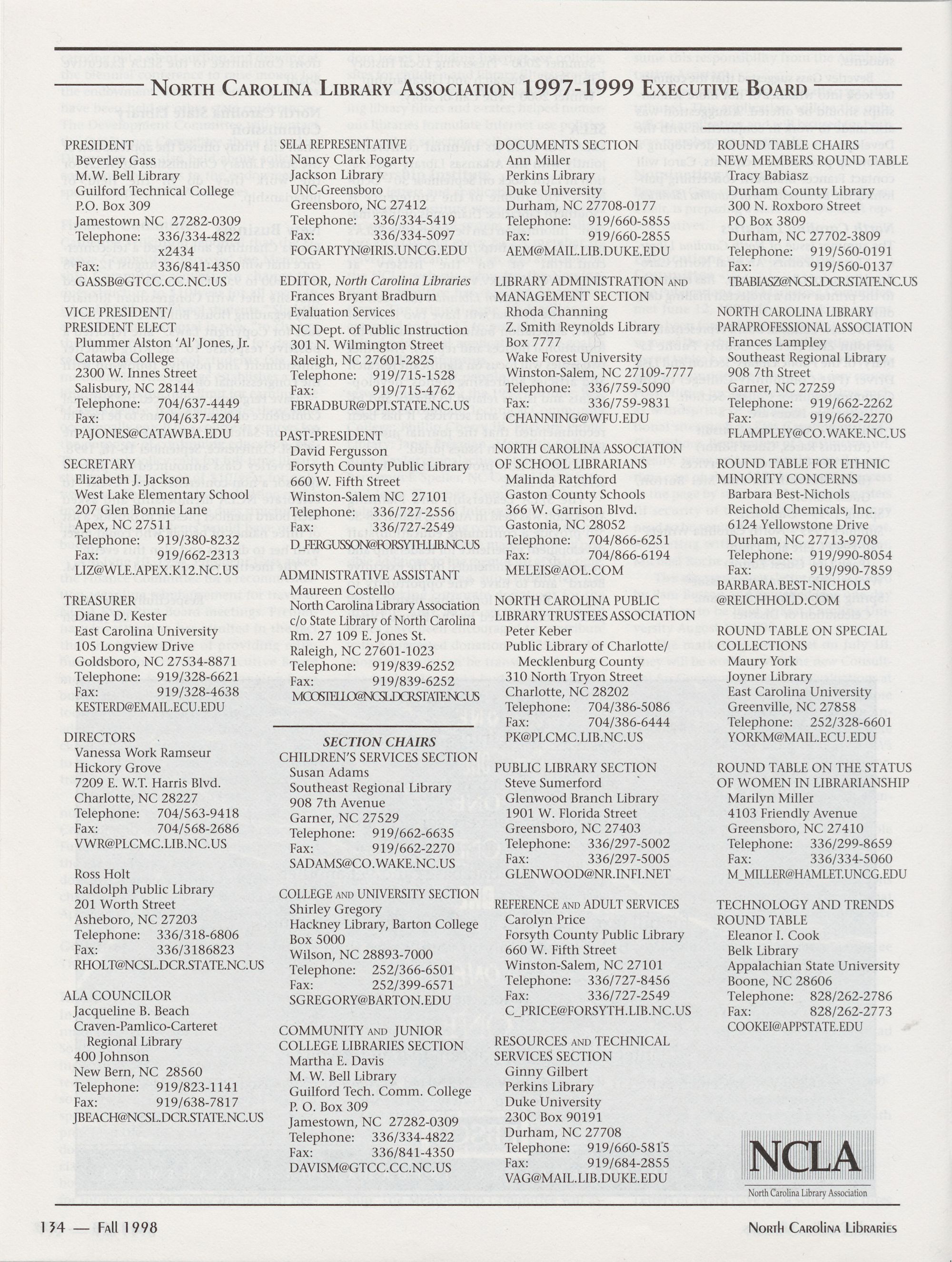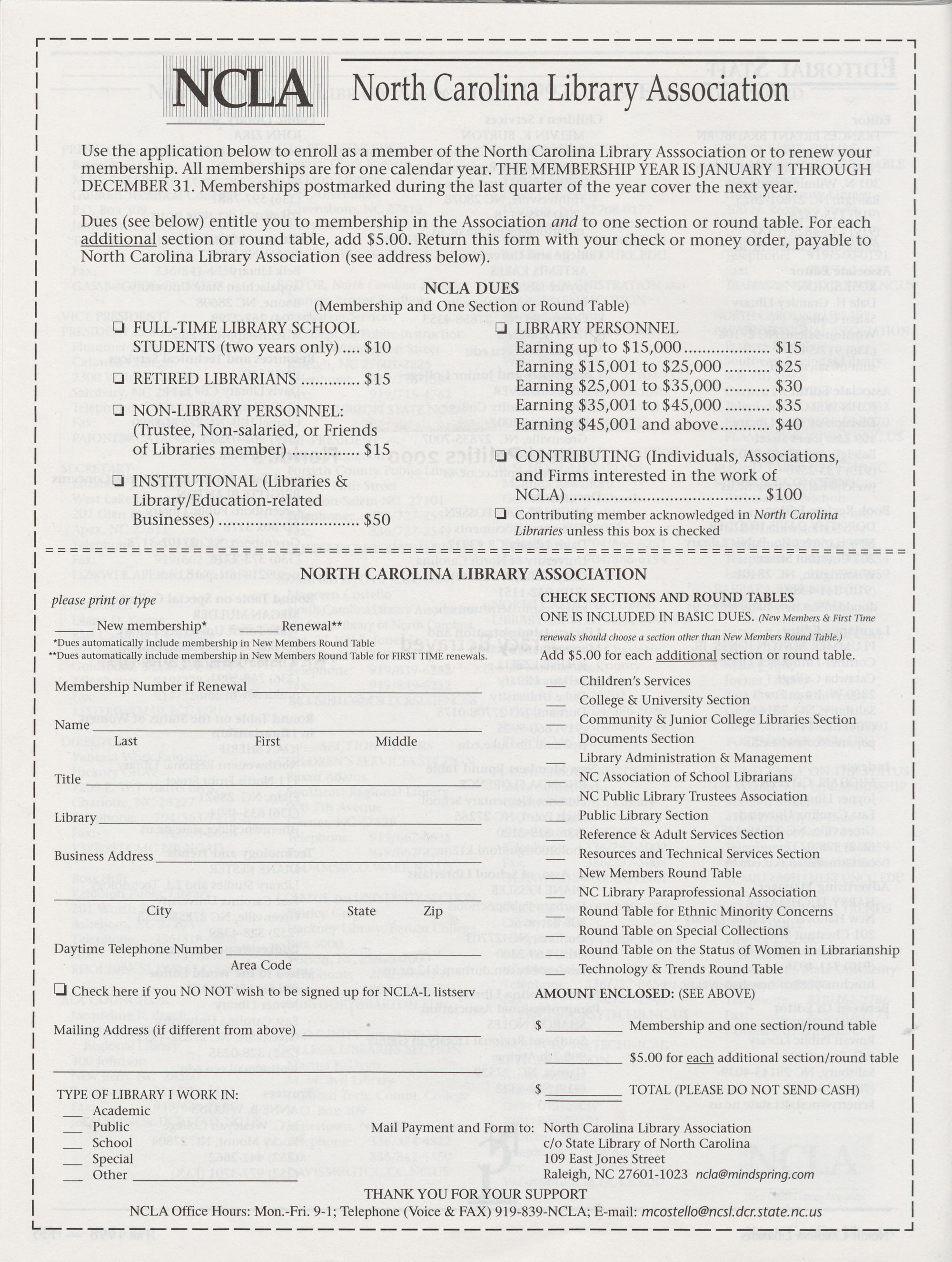 Carolina Library Association. Membership dues include a subscription to North Carolina