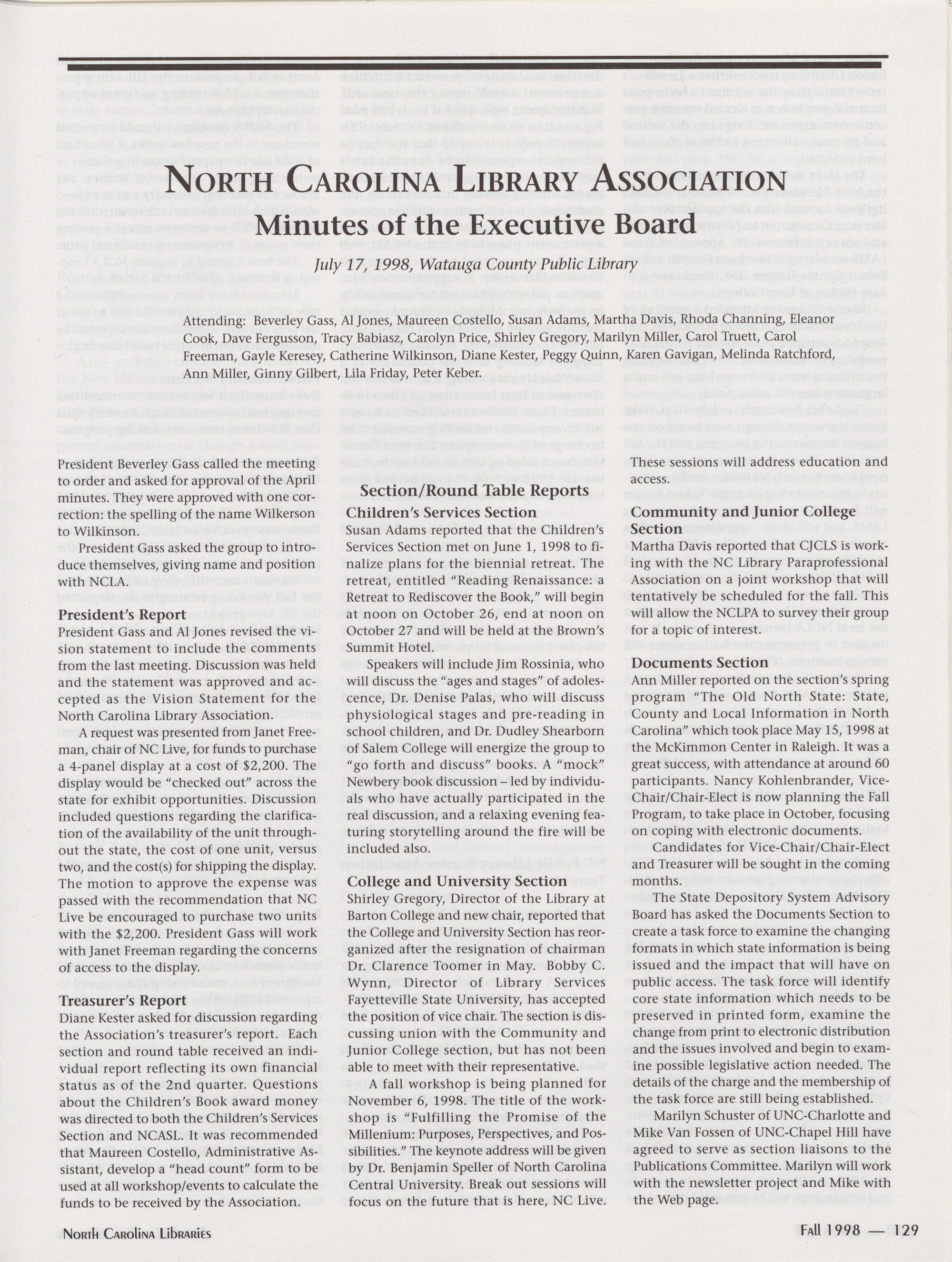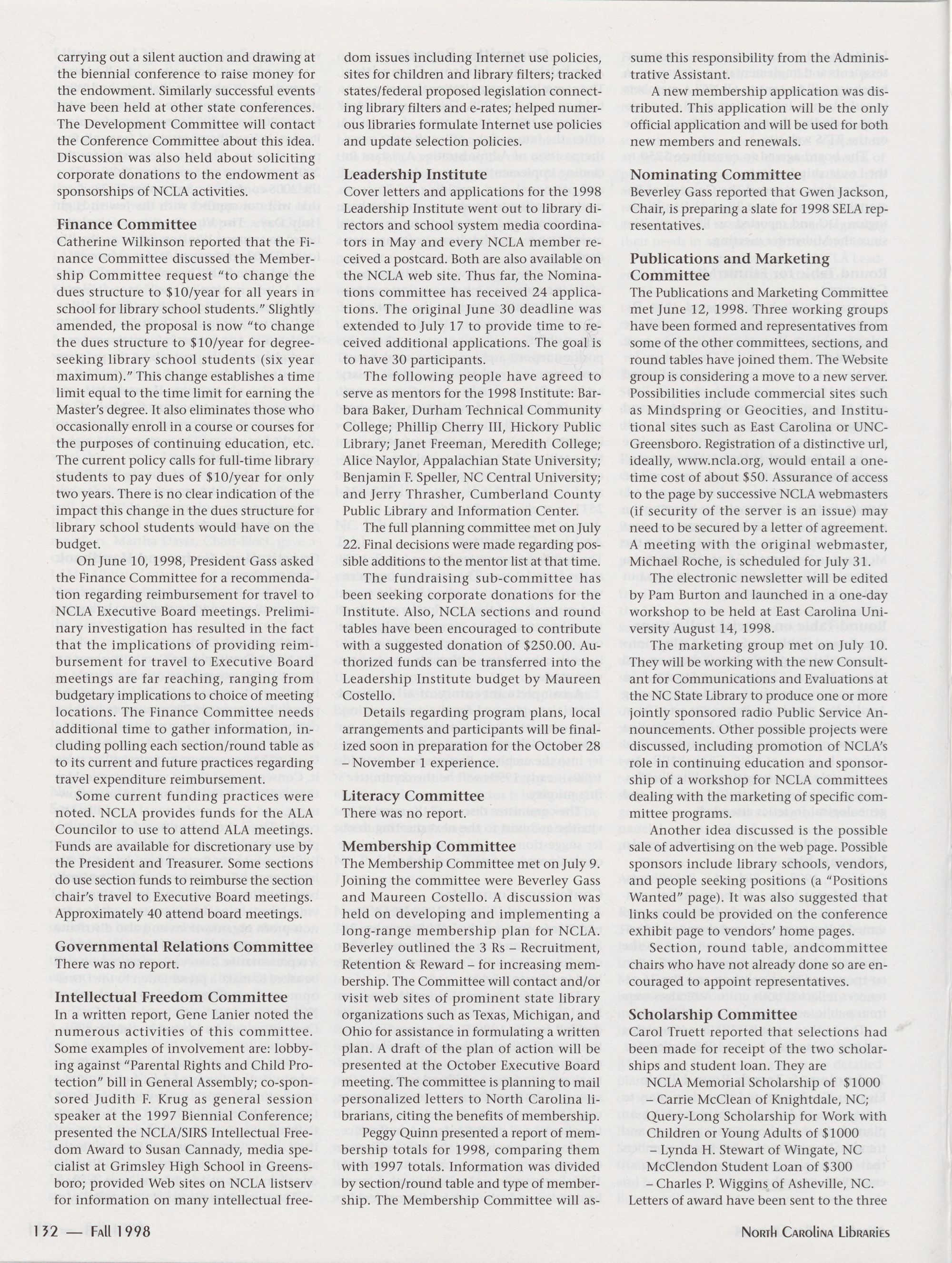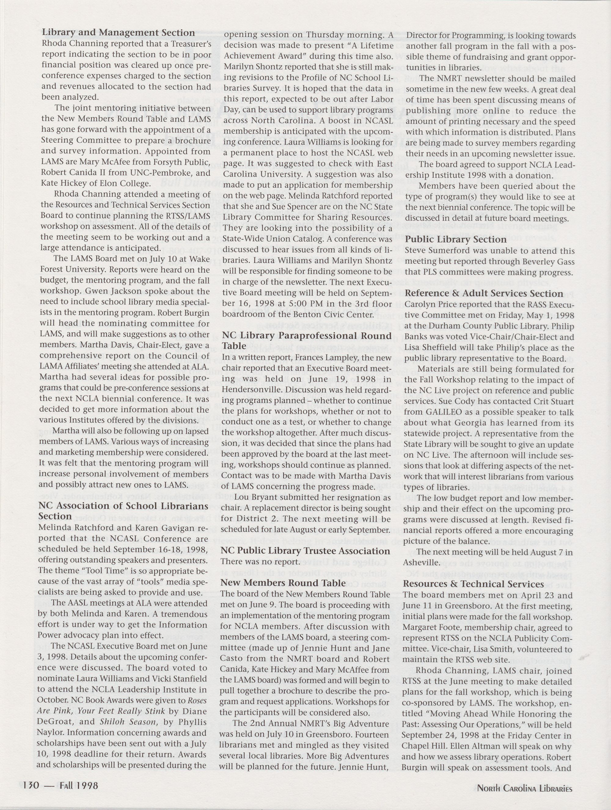 Carolina Library Association. Membership dues include a subscription to North Carolina