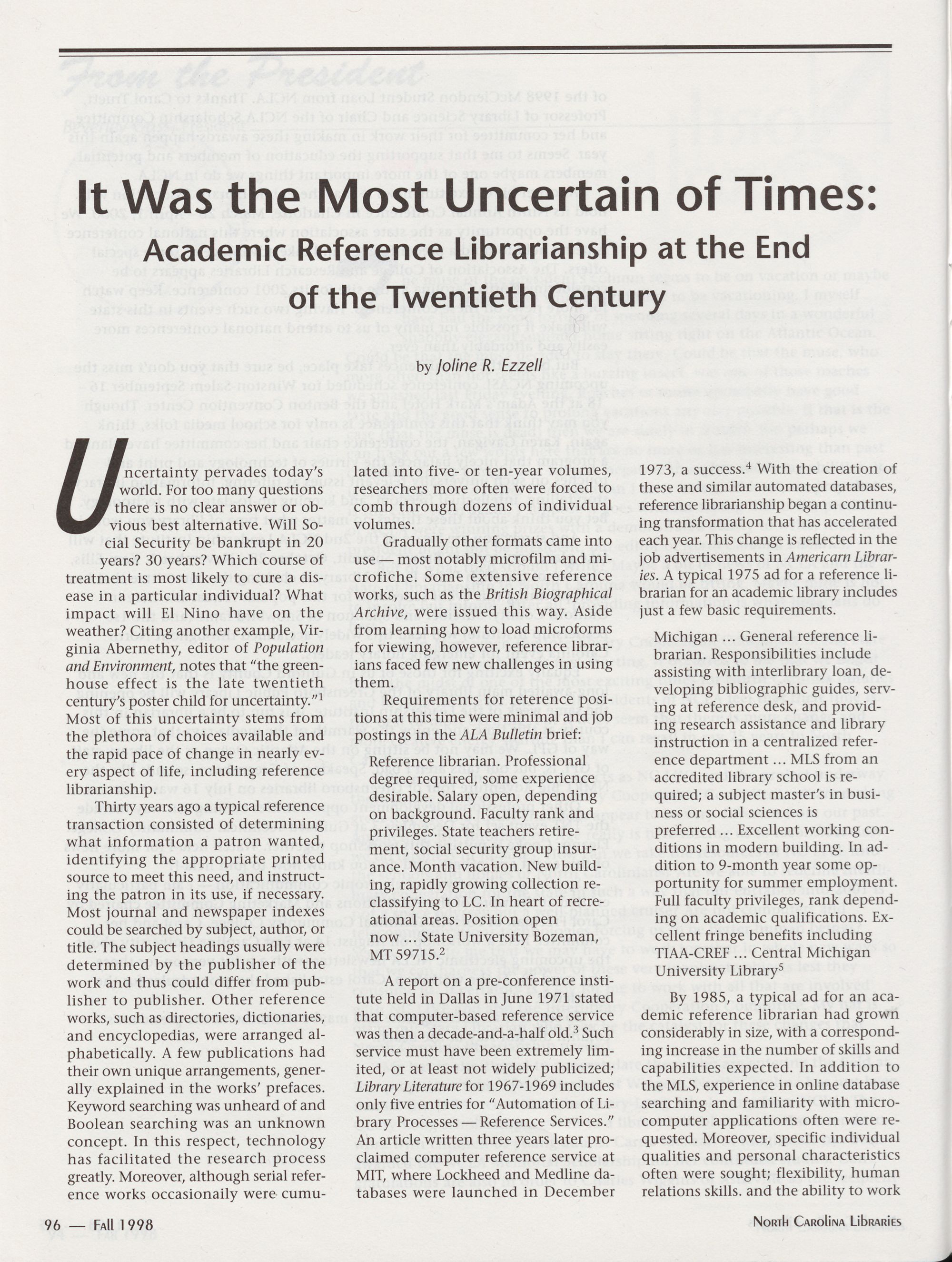 It was the Most Uncertain of Times: Academic Reference Librarianship at