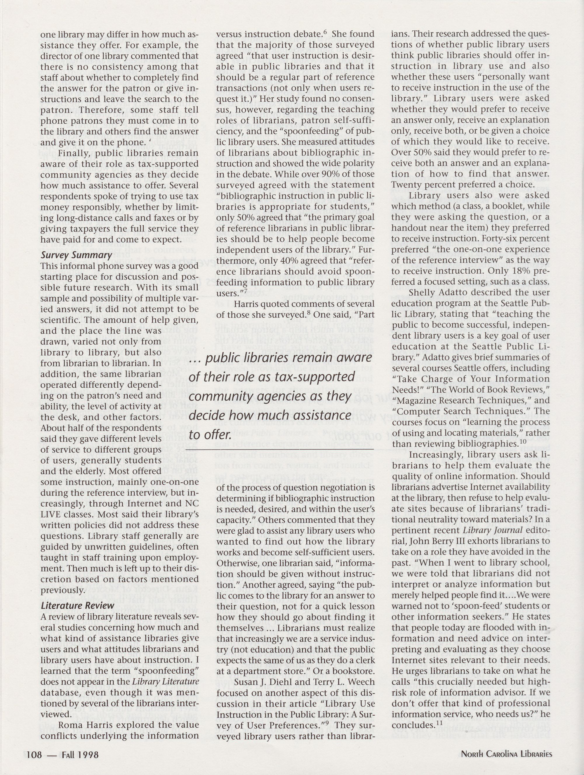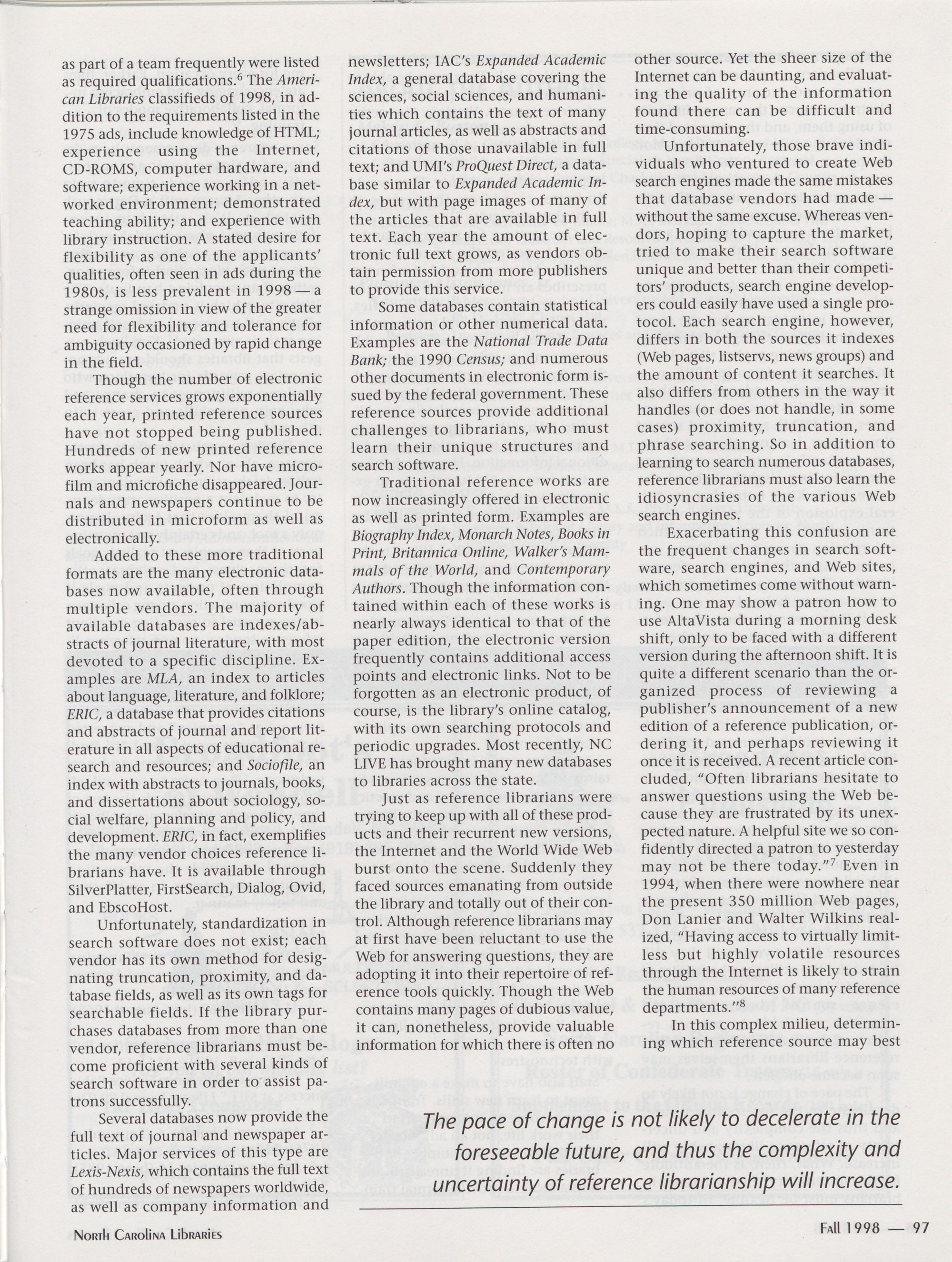 North Carolina Libraries is indexed by Library Literature and publishes its own annual index.