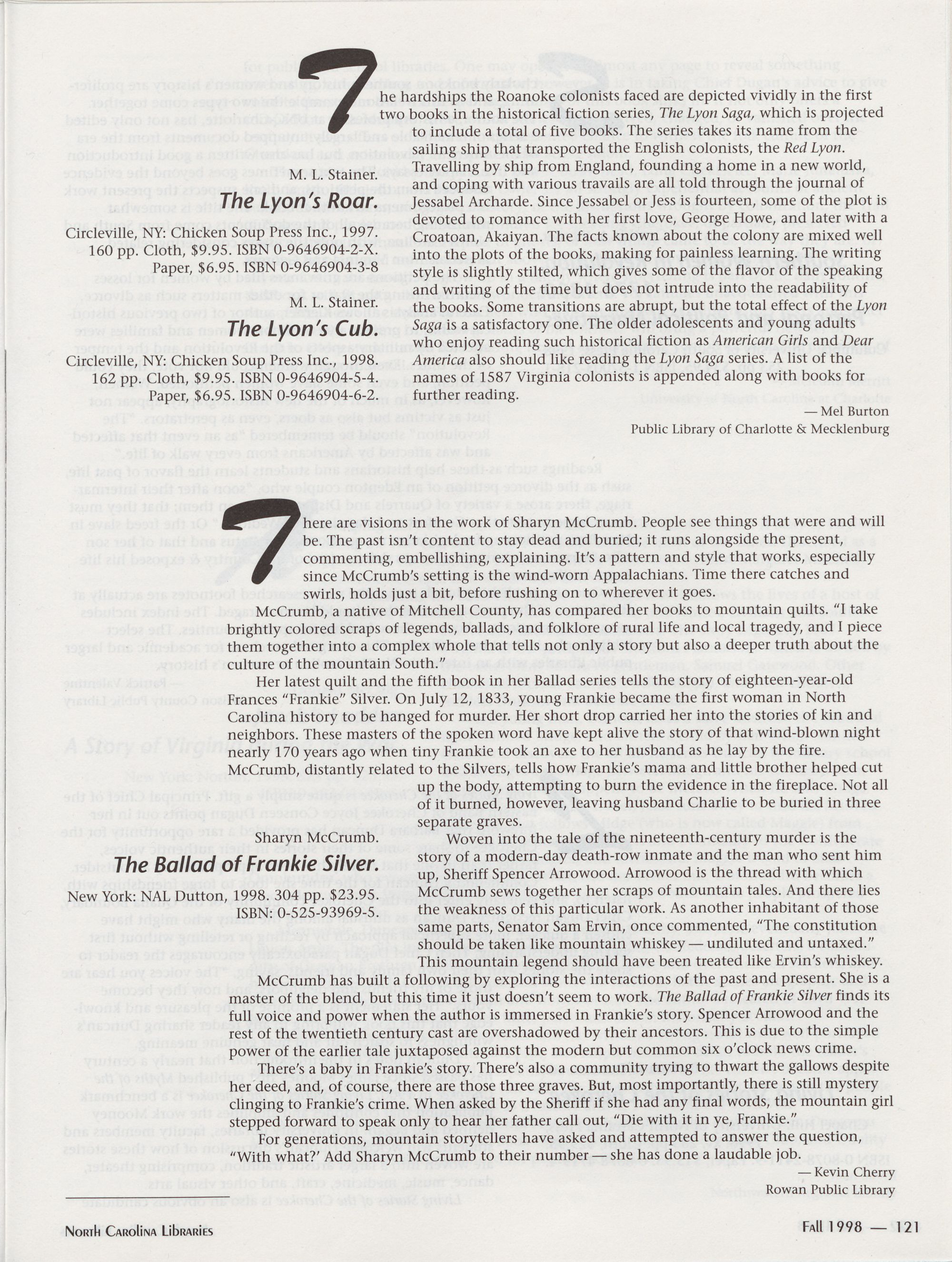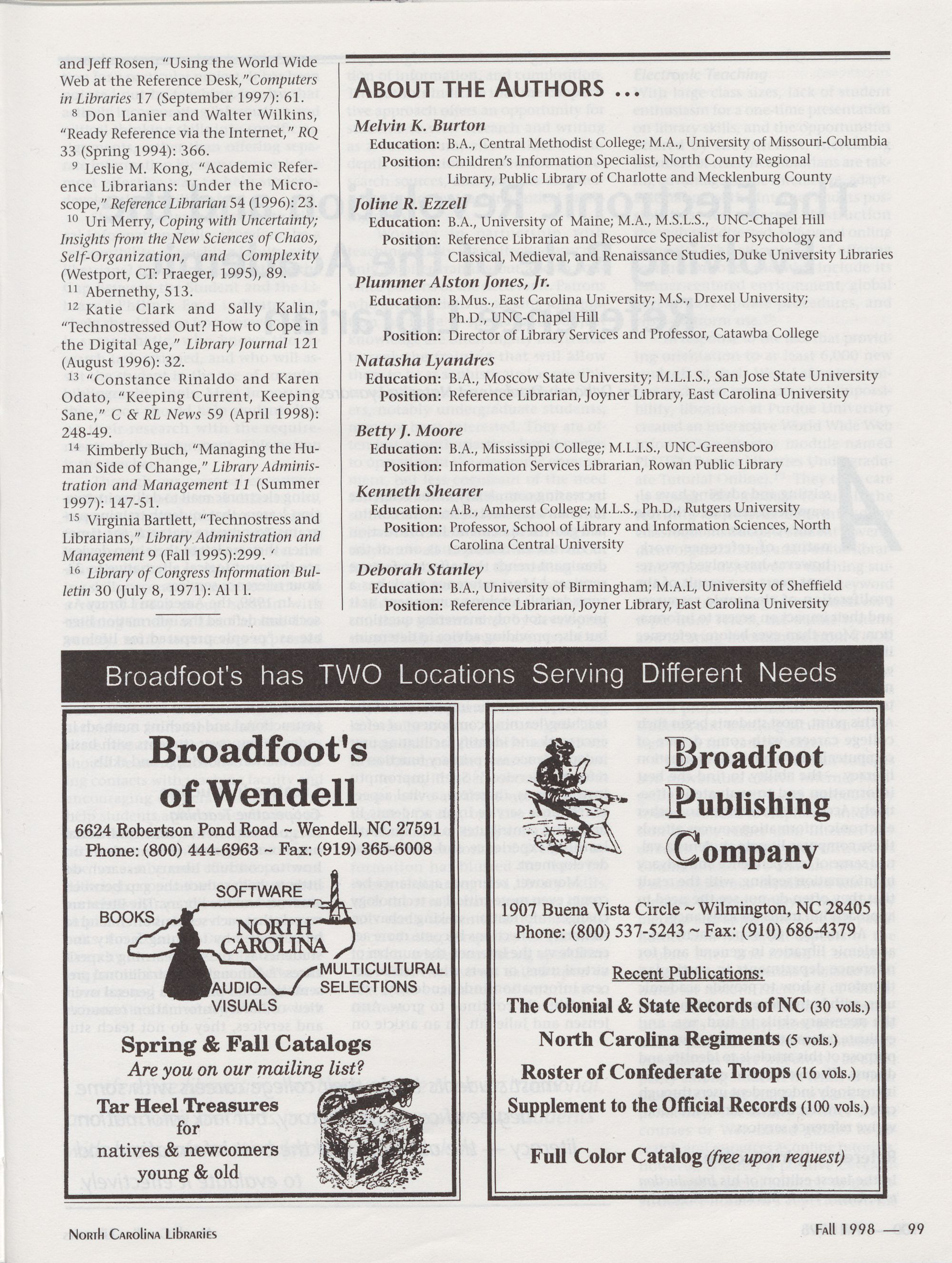 Summer 1999 North Carolina Writers