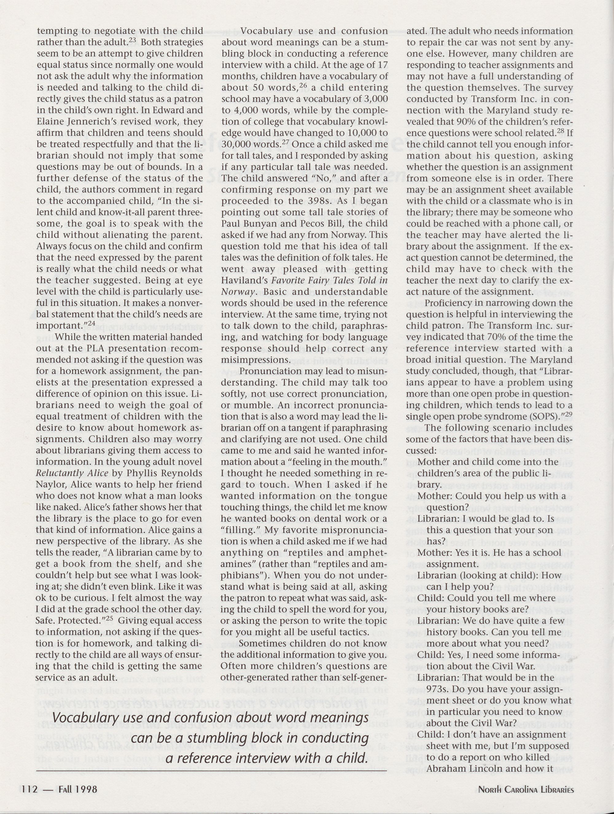 Reference Interview: Strategies for Children, Melvin K. Burton