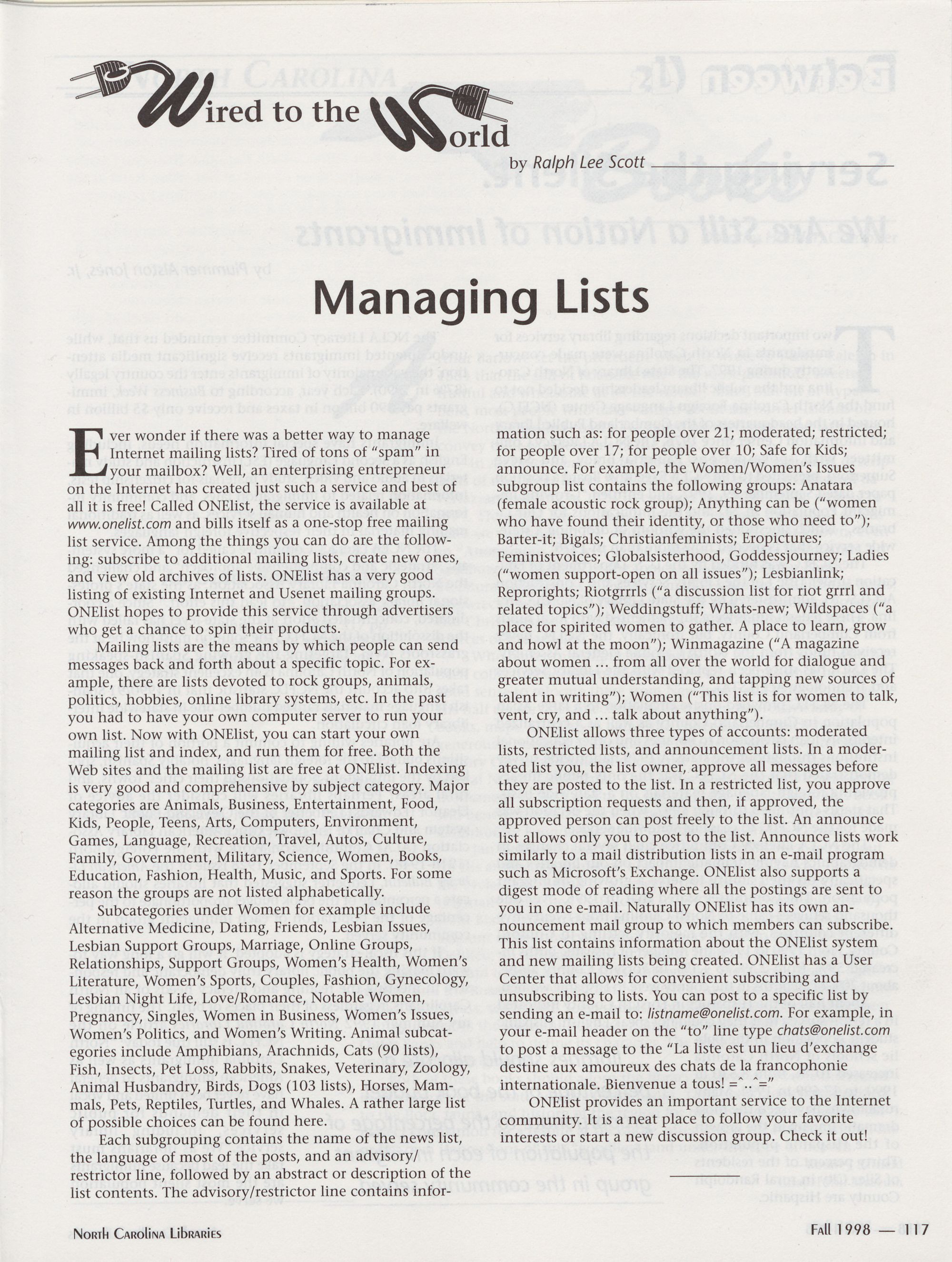 Wired to the World: Managing Lists, Ralph Lee Scott