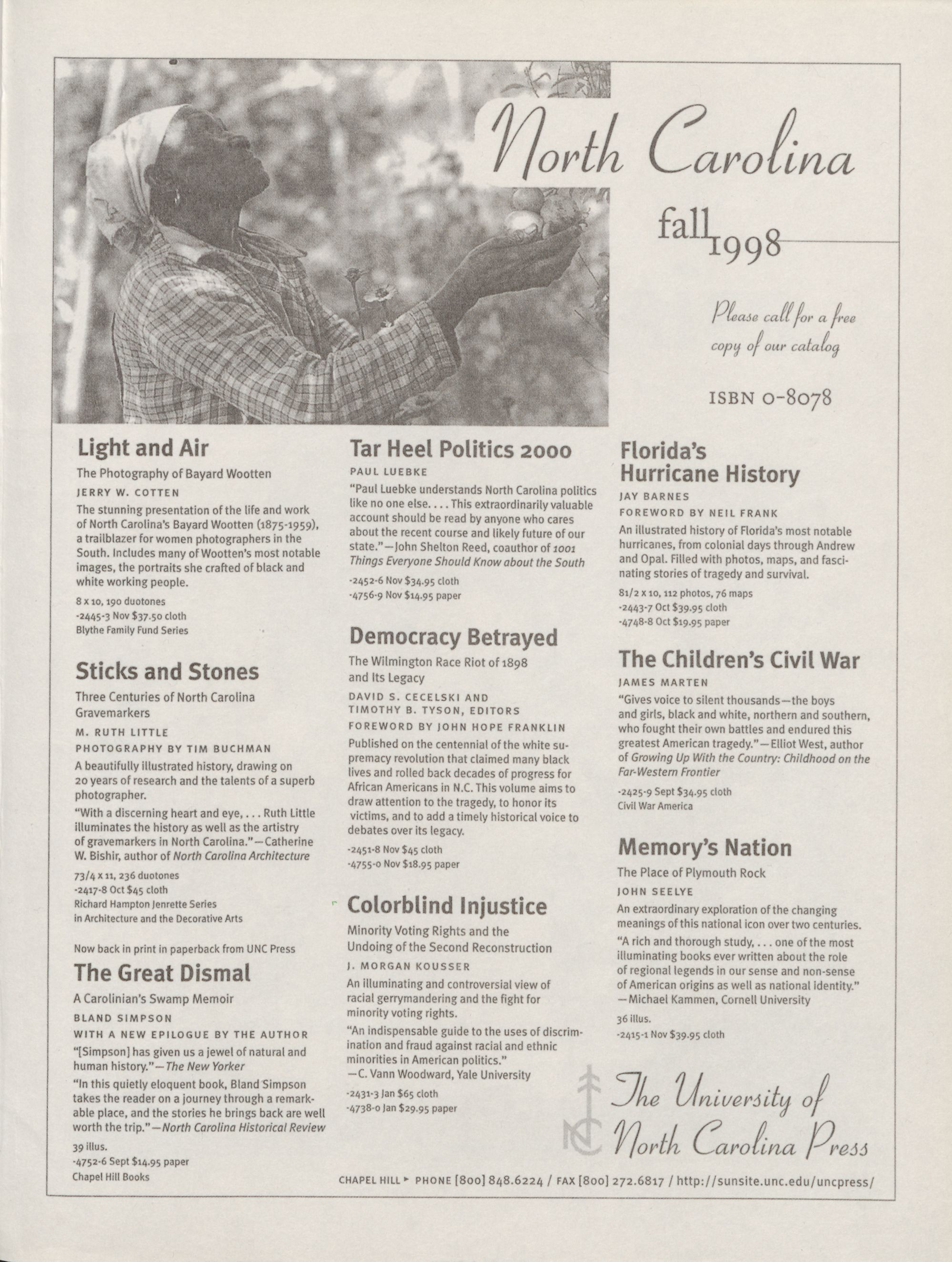 CHAPEL HILL * PHONE [800] 848.6224 / FAX [800] 272.6817 / http://sunsite.unc.edu/uncpress/