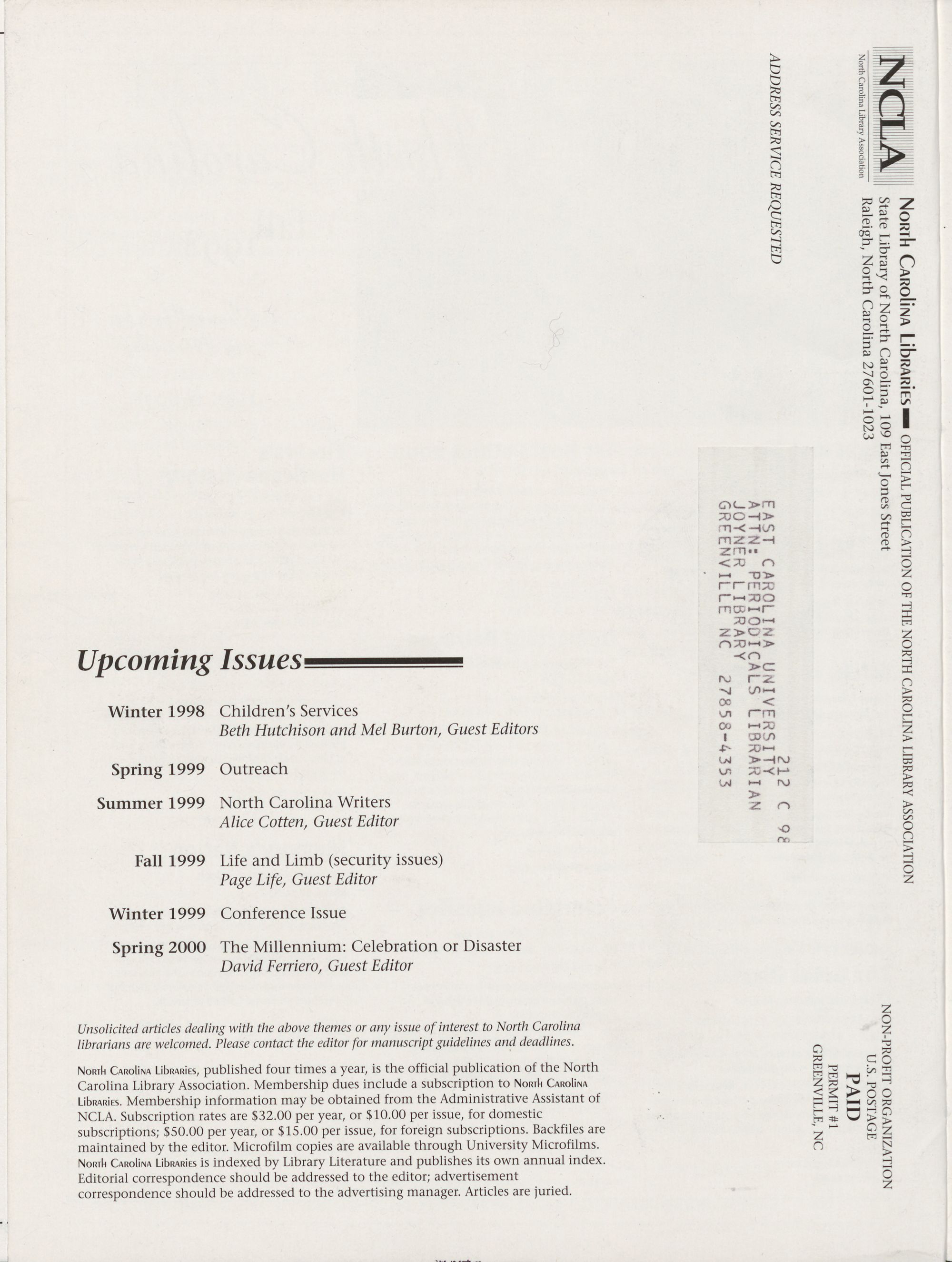 North Carolina Libraries is the official publication of the North Carolina Library Association.
