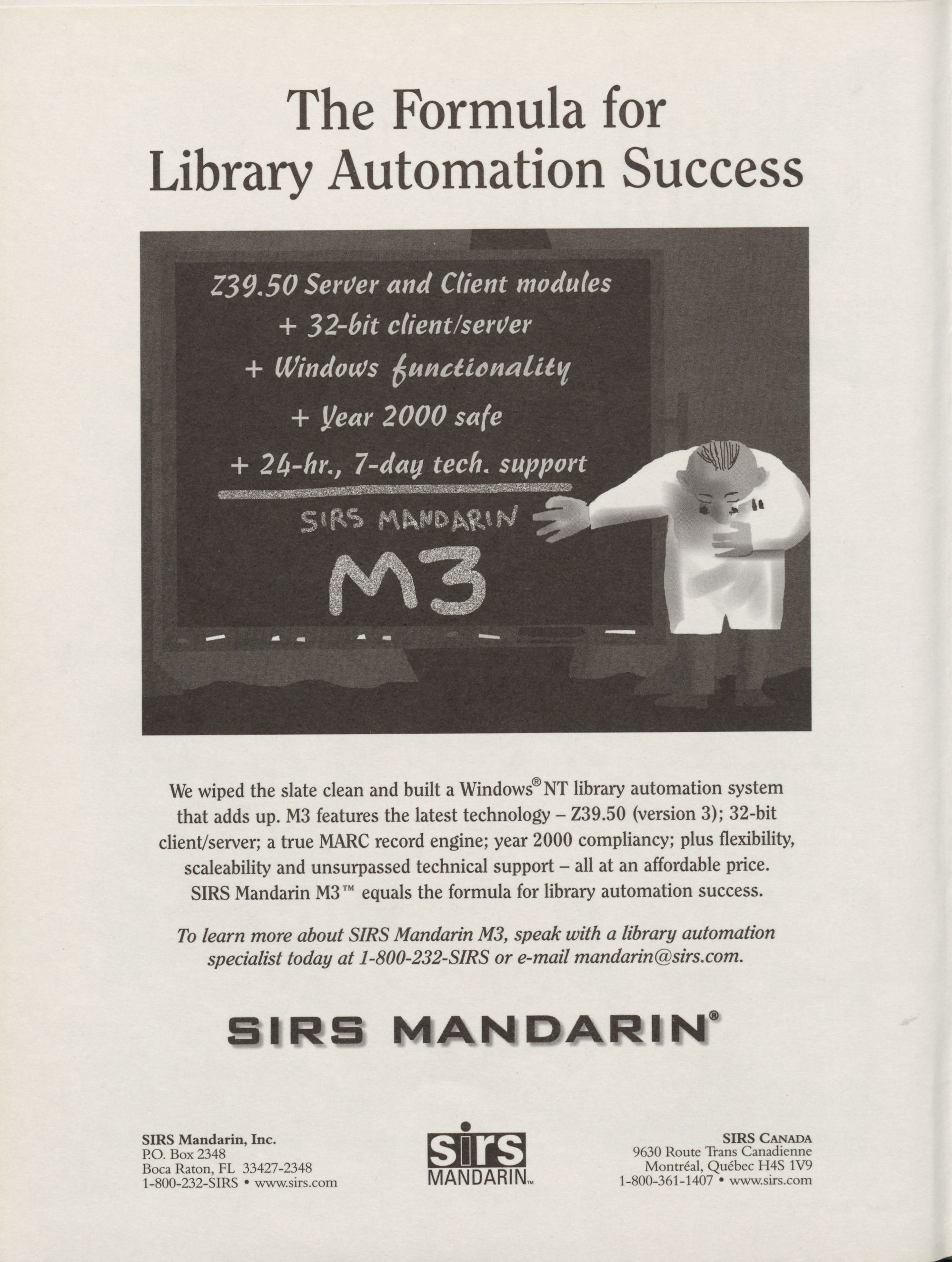 SIRS Mandarin M3�"� equals the formula for library automation success.